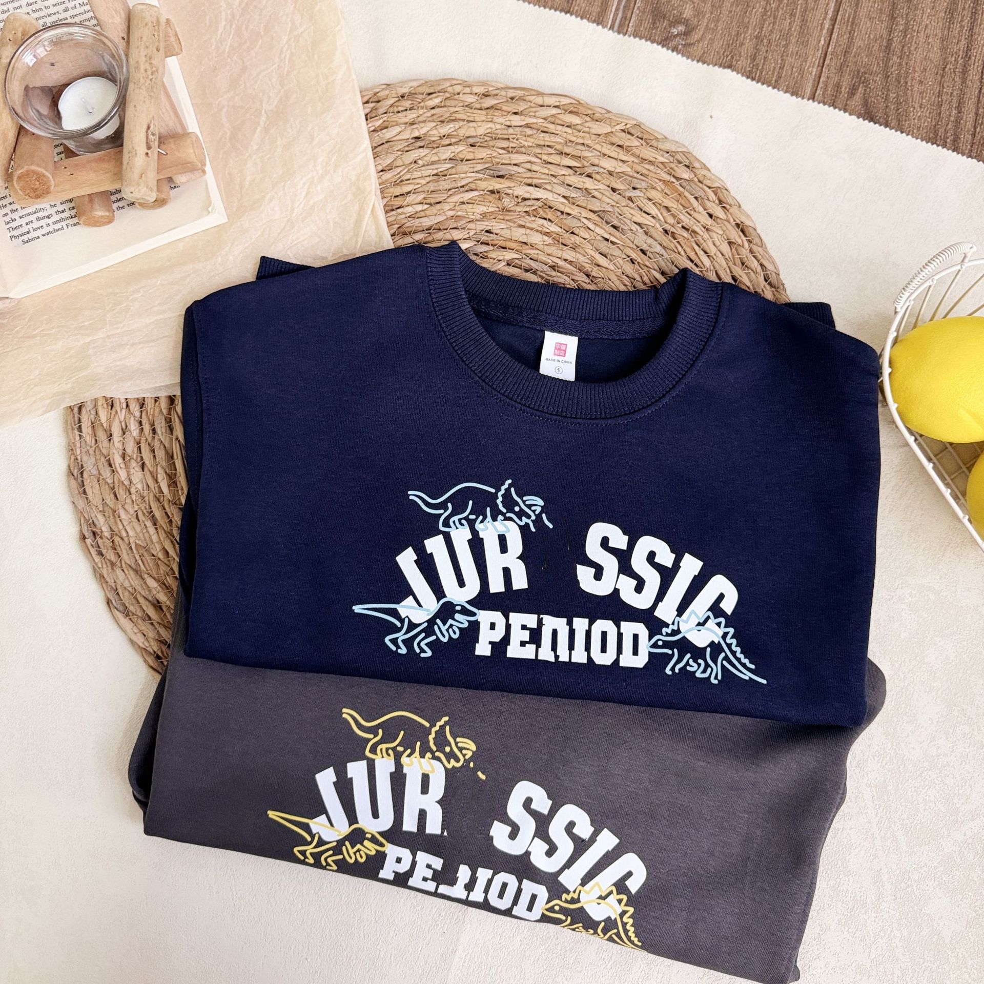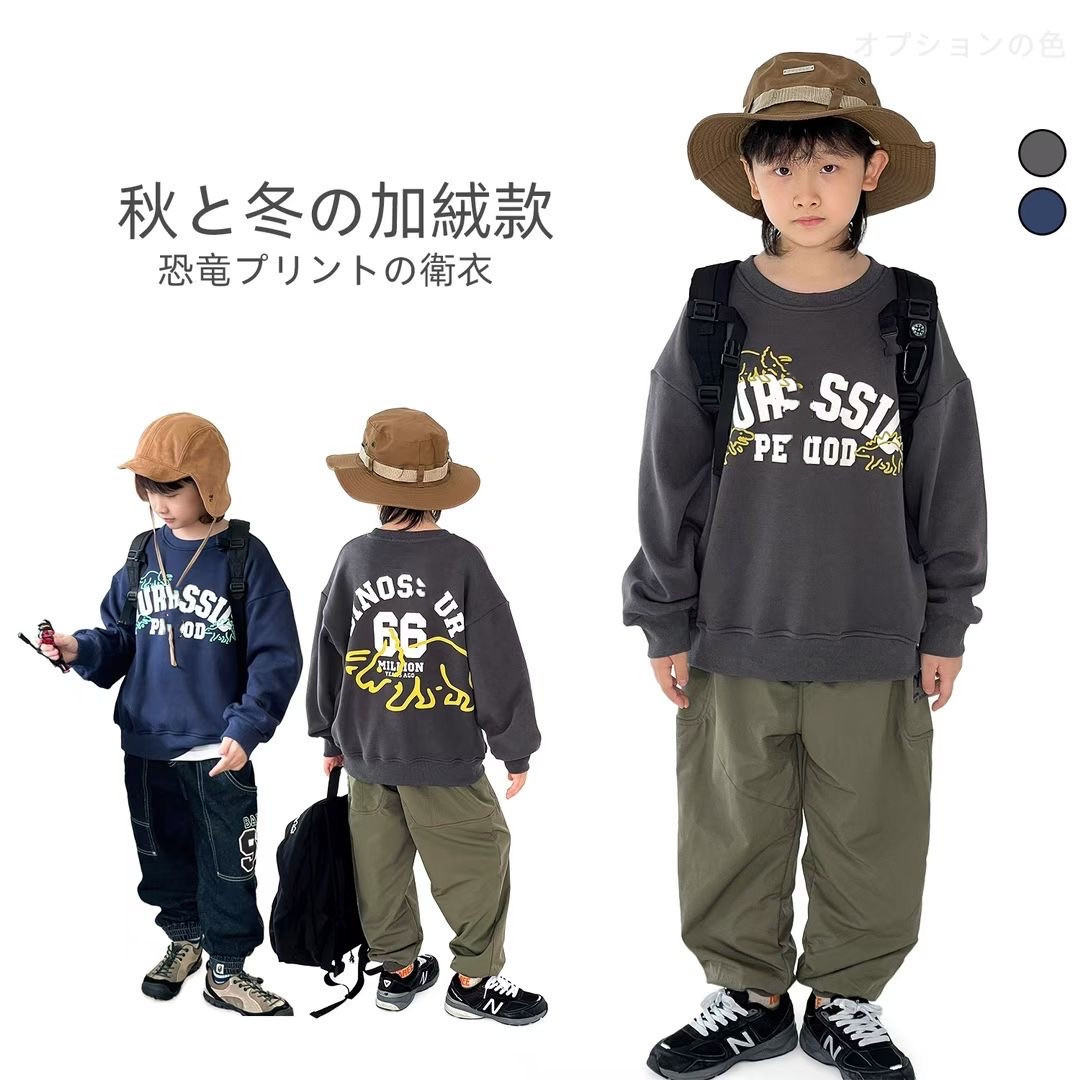 큰 어린이 스웨터 어린이 기모 스웨터 가을과 겨울 새로운 부모-어린이 공룡 풀오버 따뜻한 탑 풀오버 국경스토어 가기