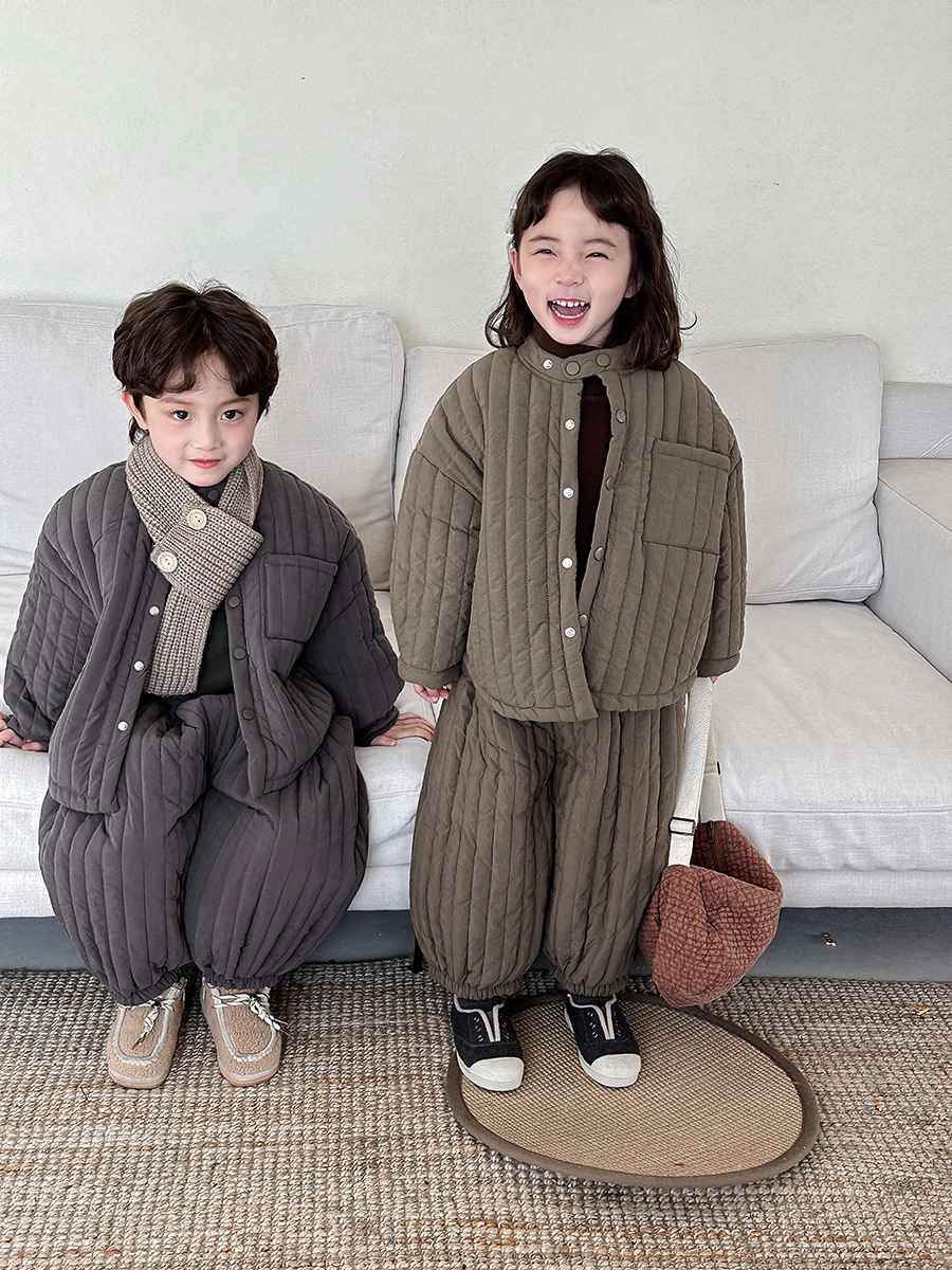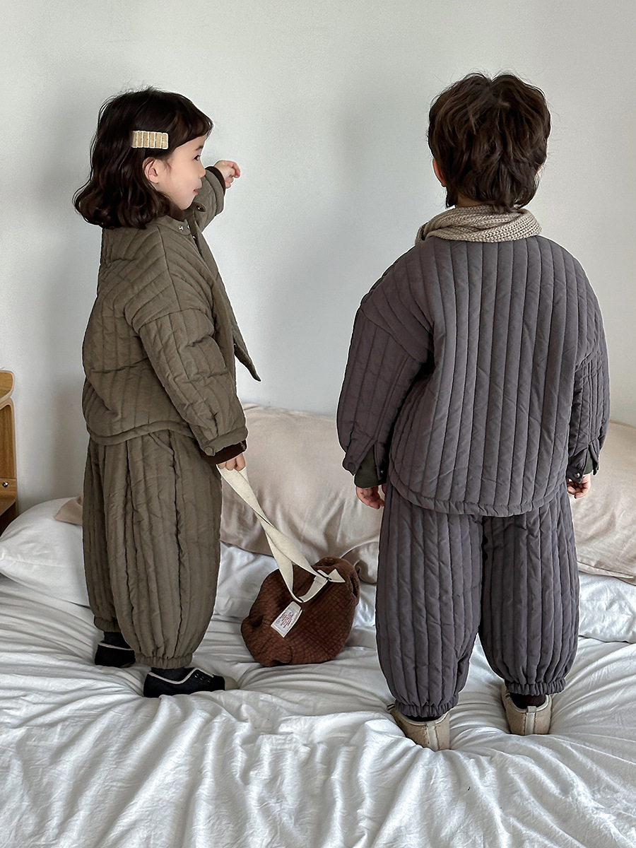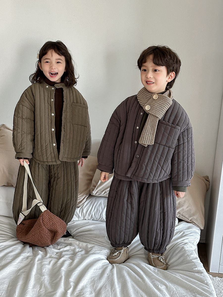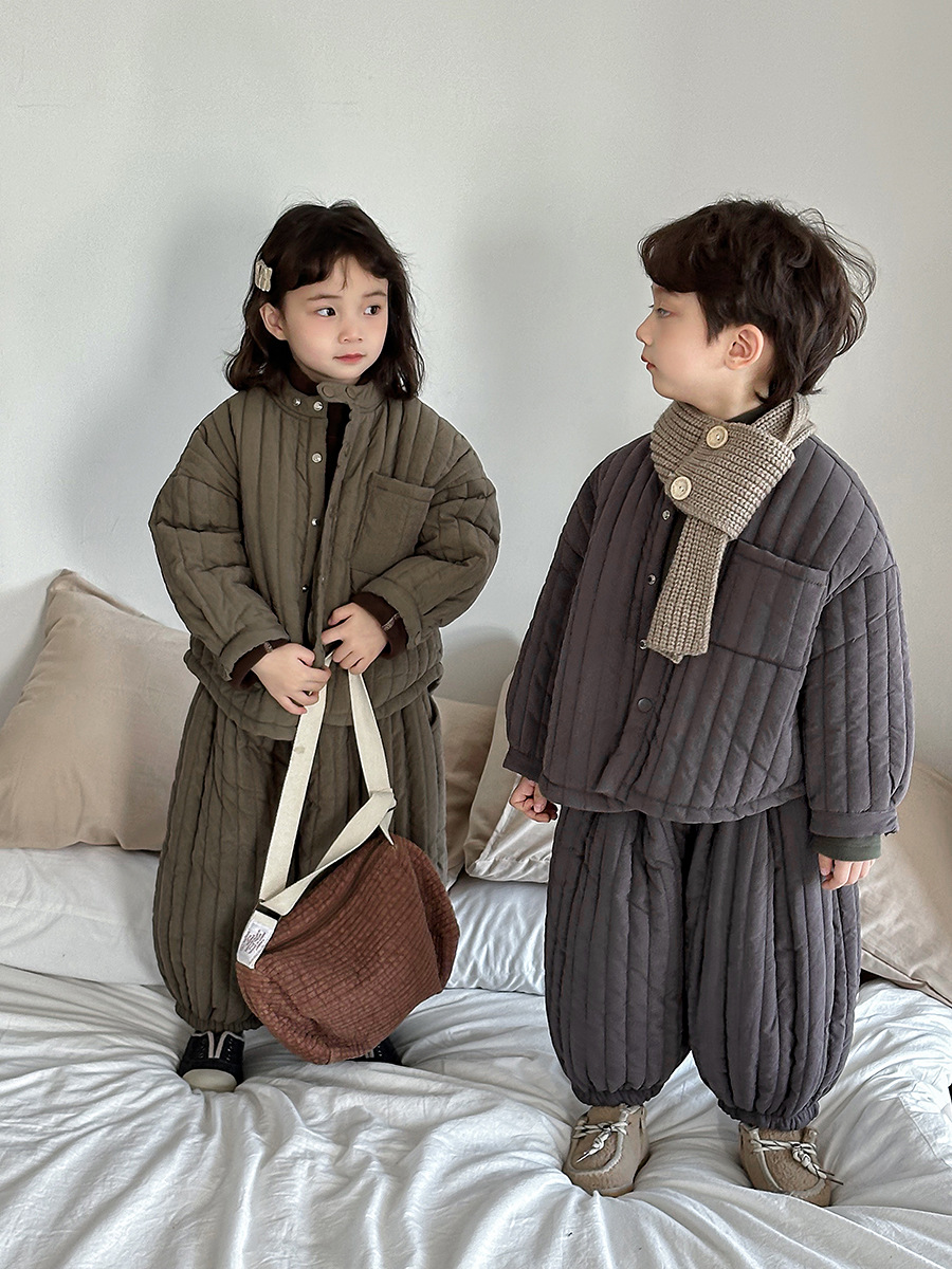 지아예 어린이 제품 2025 겨울용 두꺼운 셔츠 면 재킷 남녀 아기용 따뜻한 면바지 투피스 세트