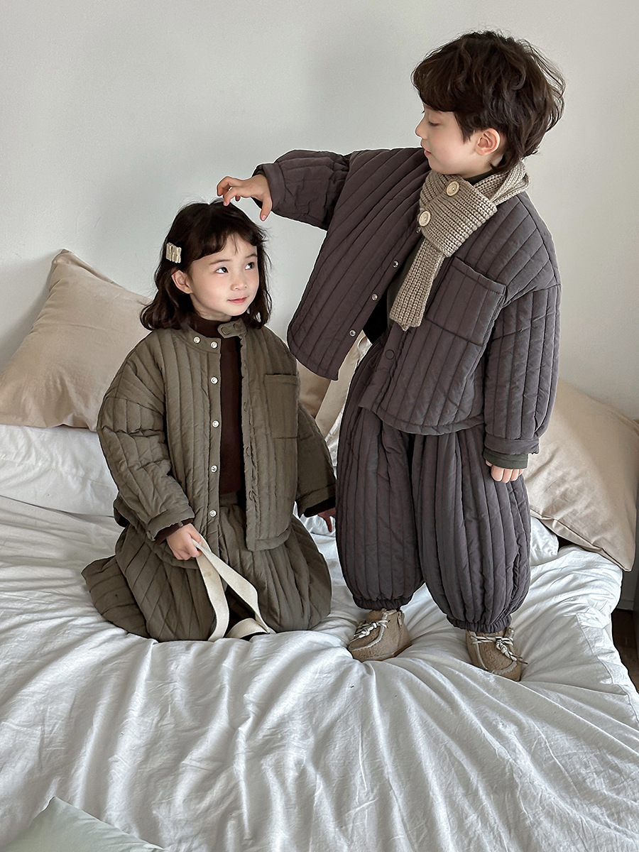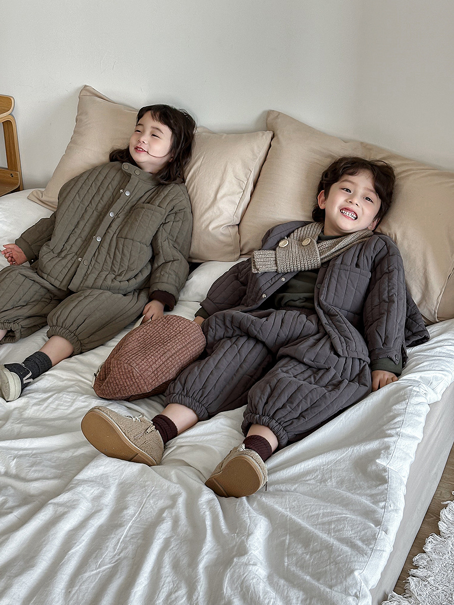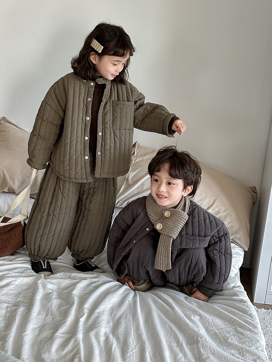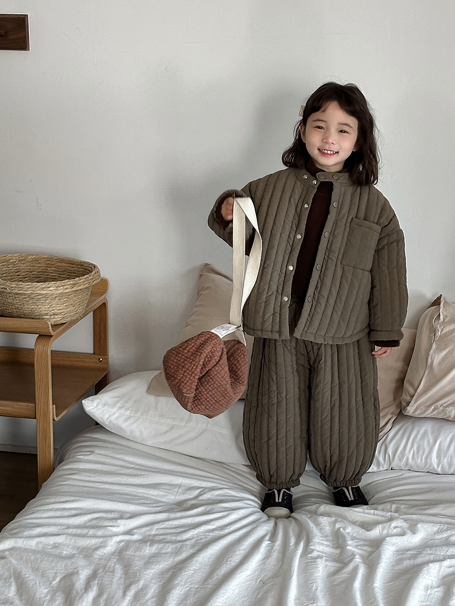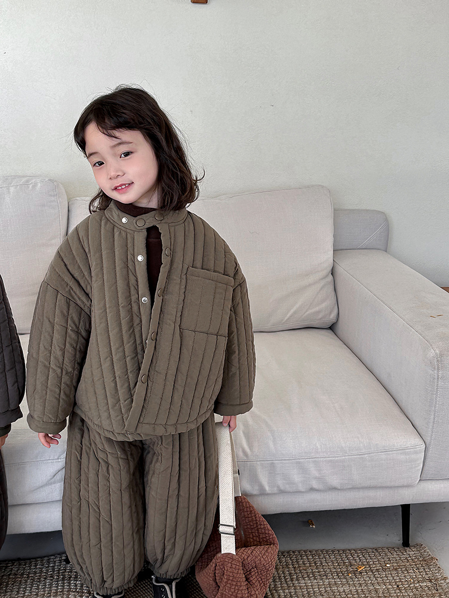 지아예 어린이 제품 2025 겨울용 두꺼운 셔츠 면 재킷 남녀 아기용 따뜻한 면바지 투피스 세트