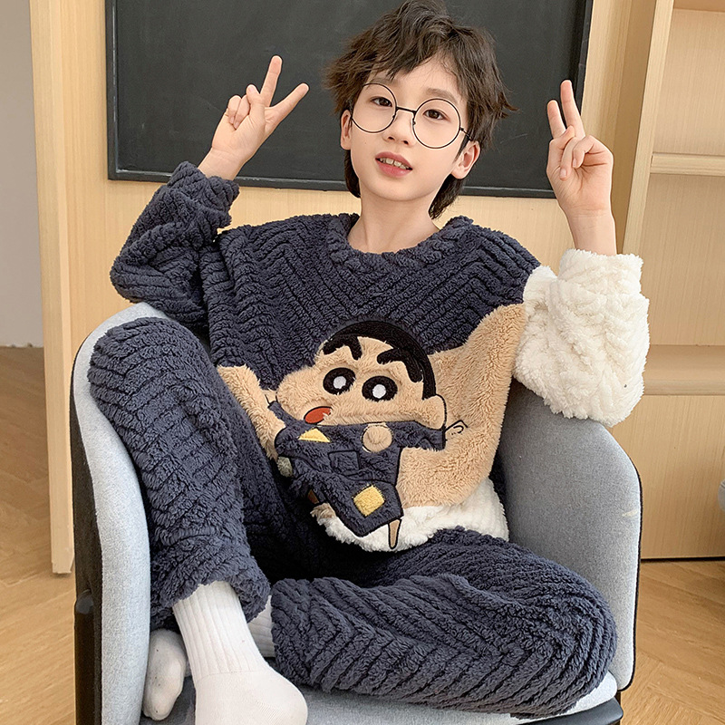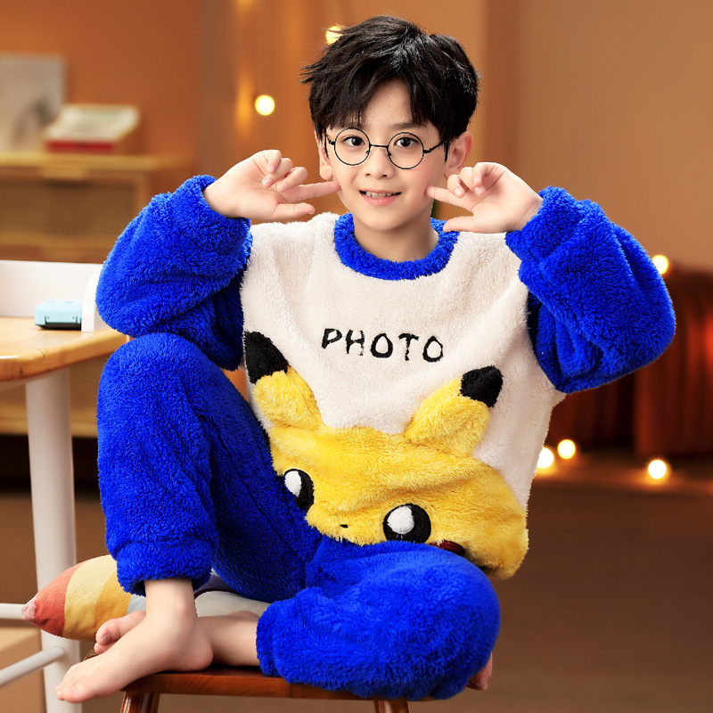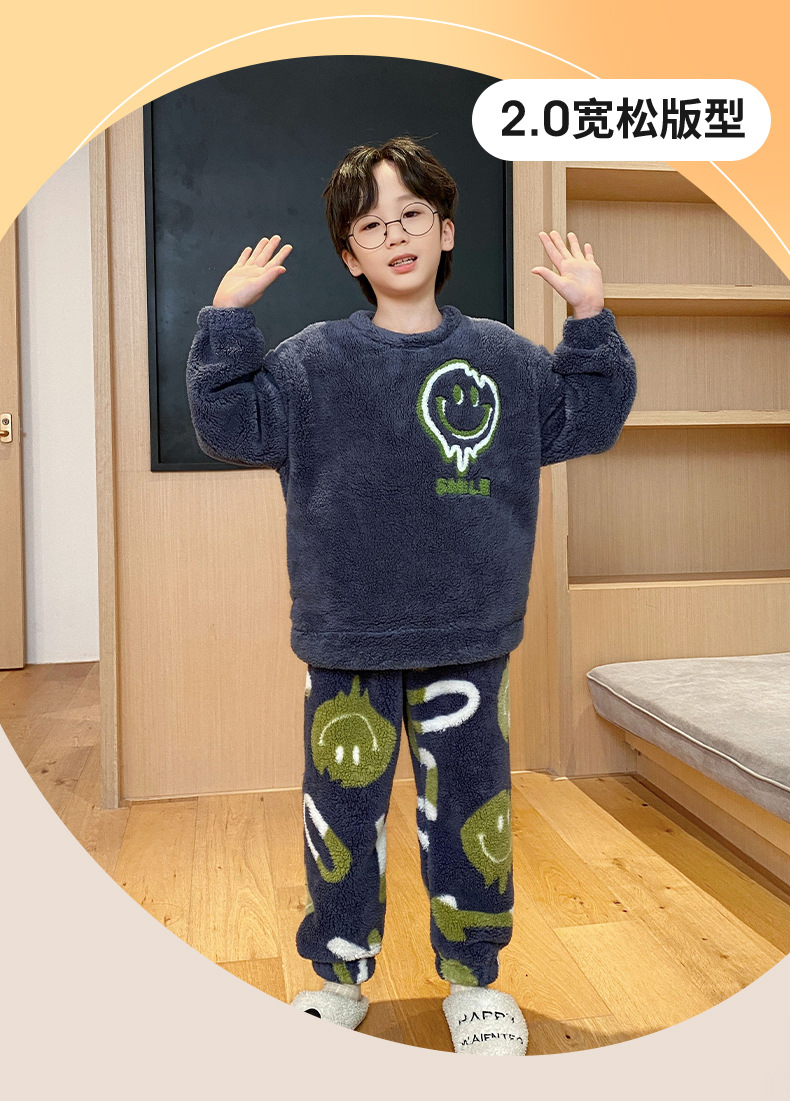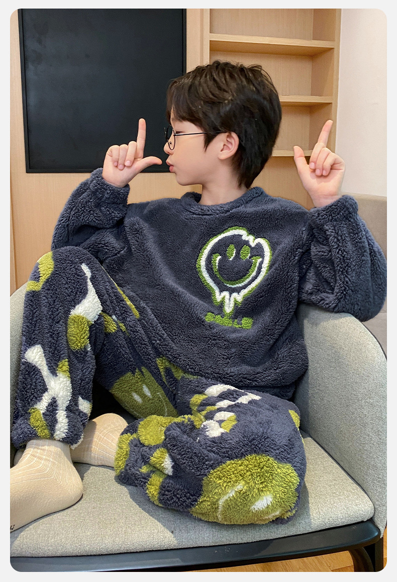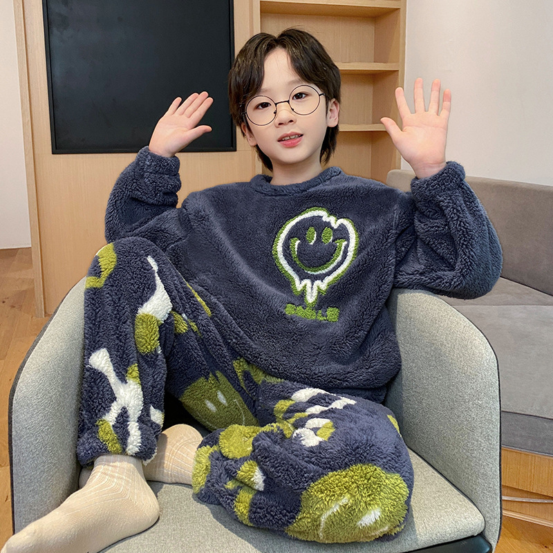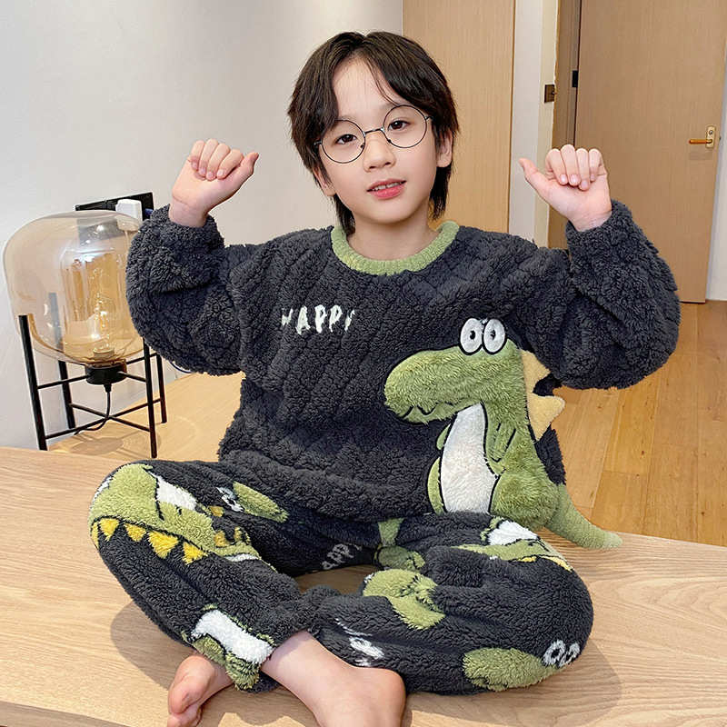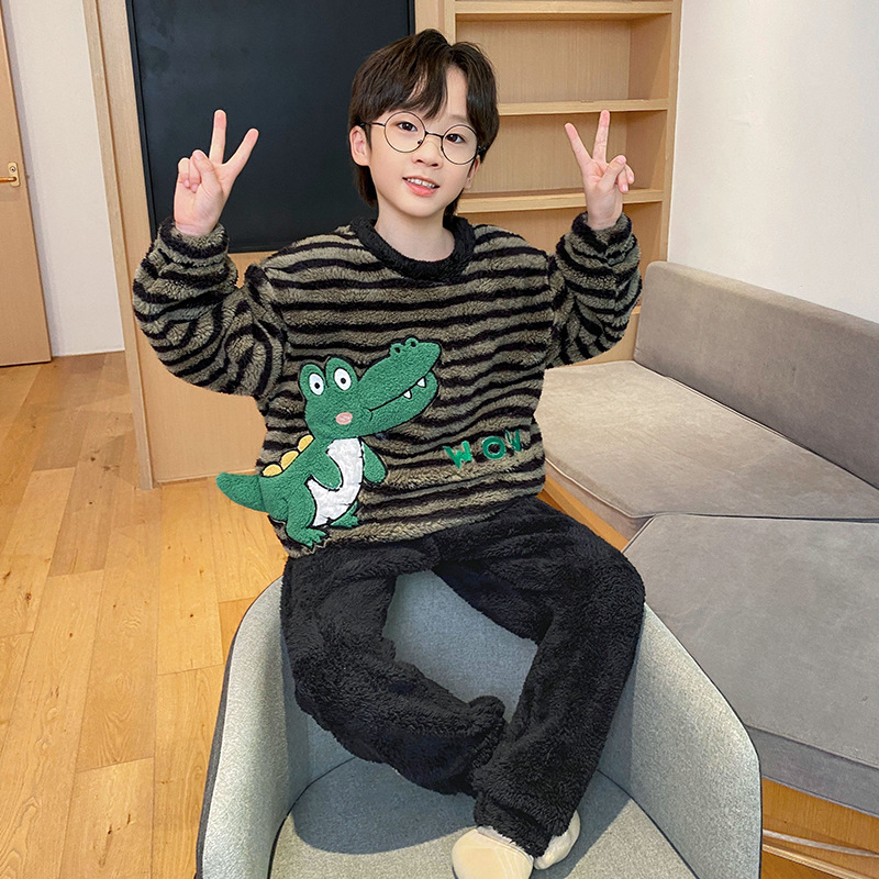 따뜻한 아기 플란넬 겨울 홈 의류 세트 기모 어린 잠옷 산호 양털 가을과 겨울 소년스토어 가기