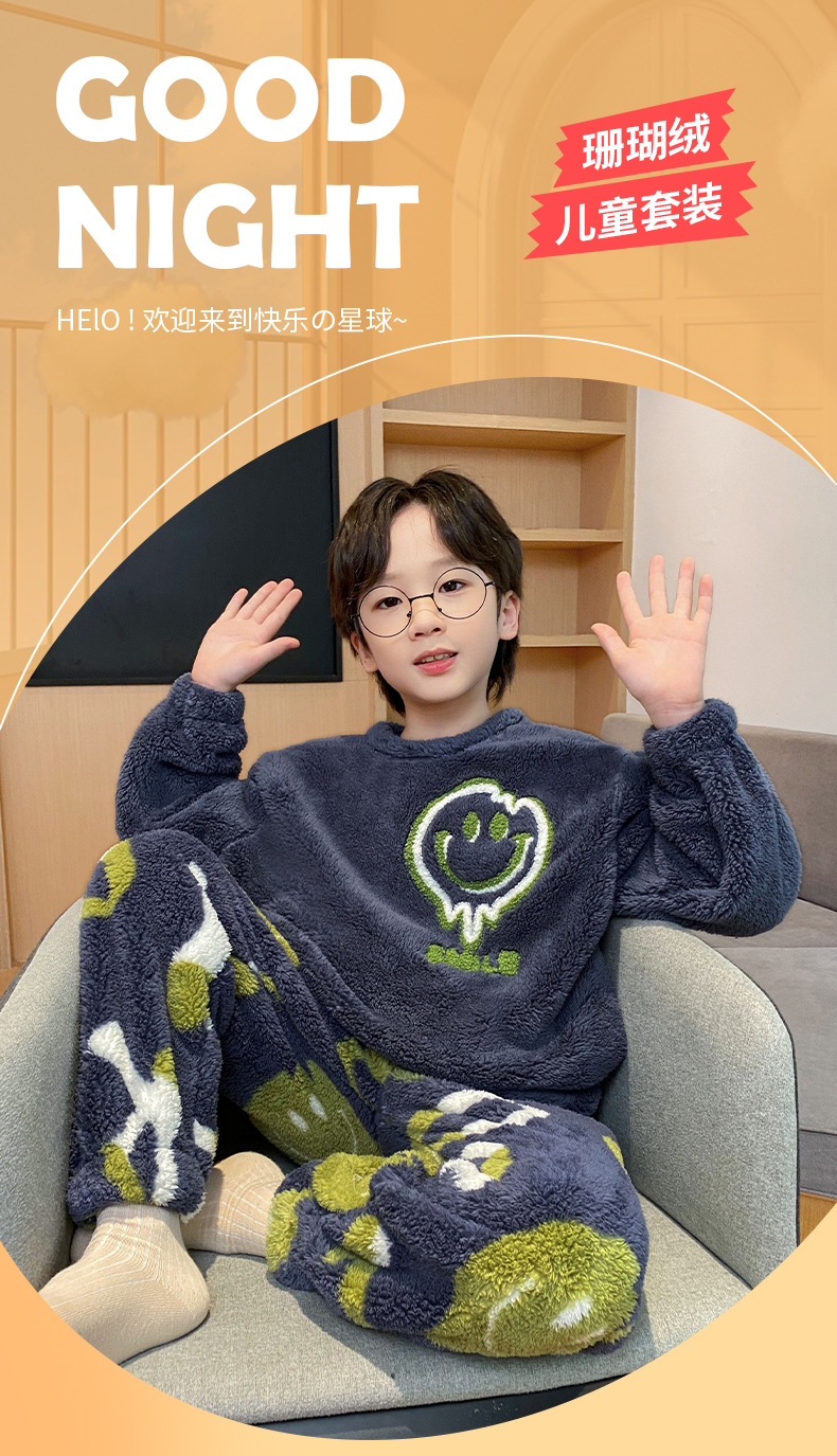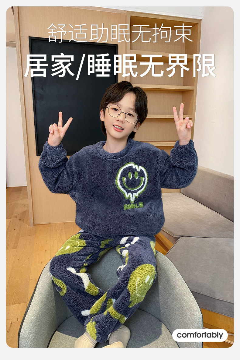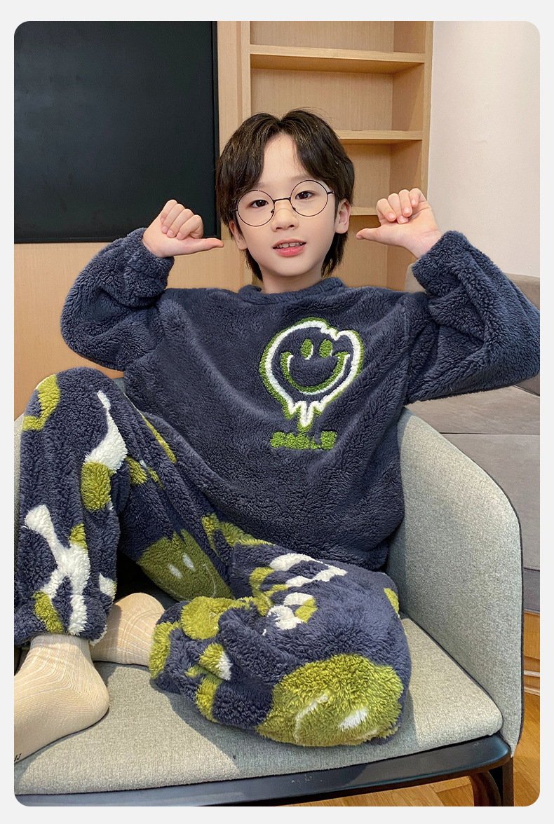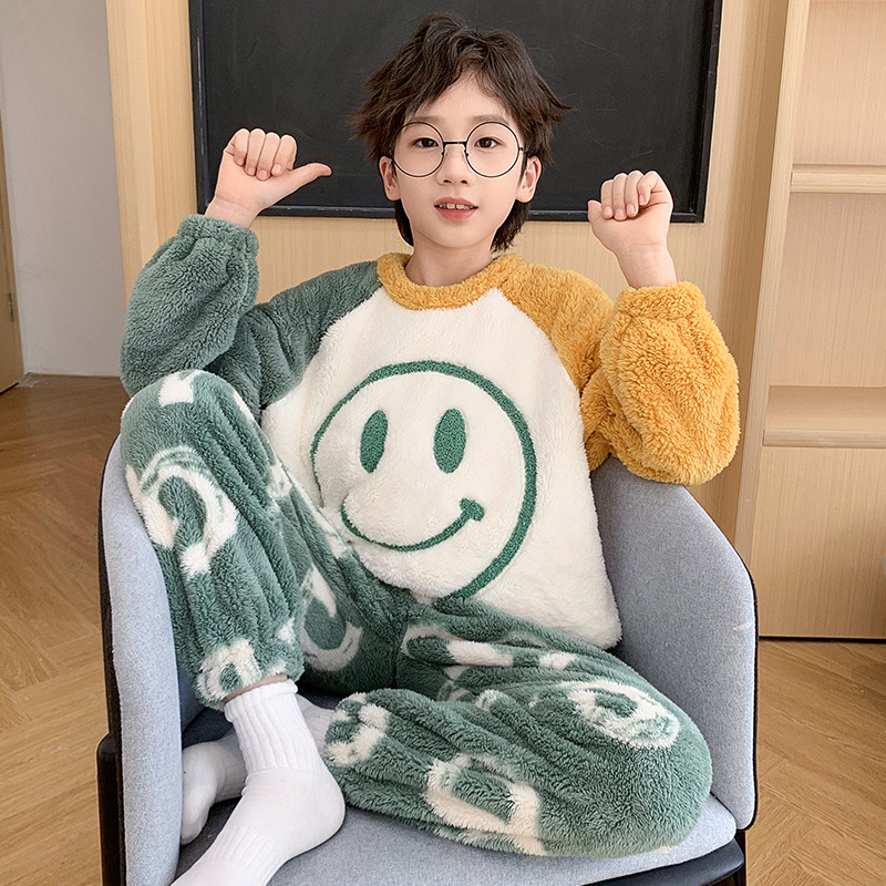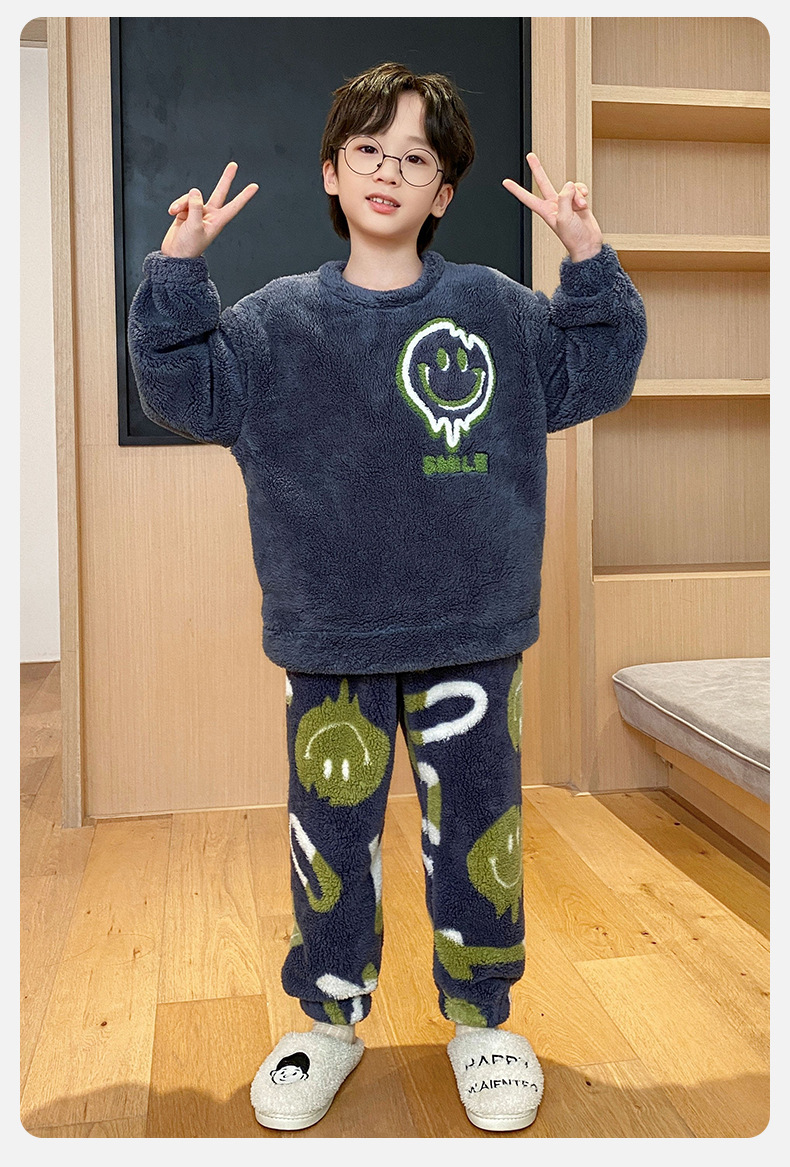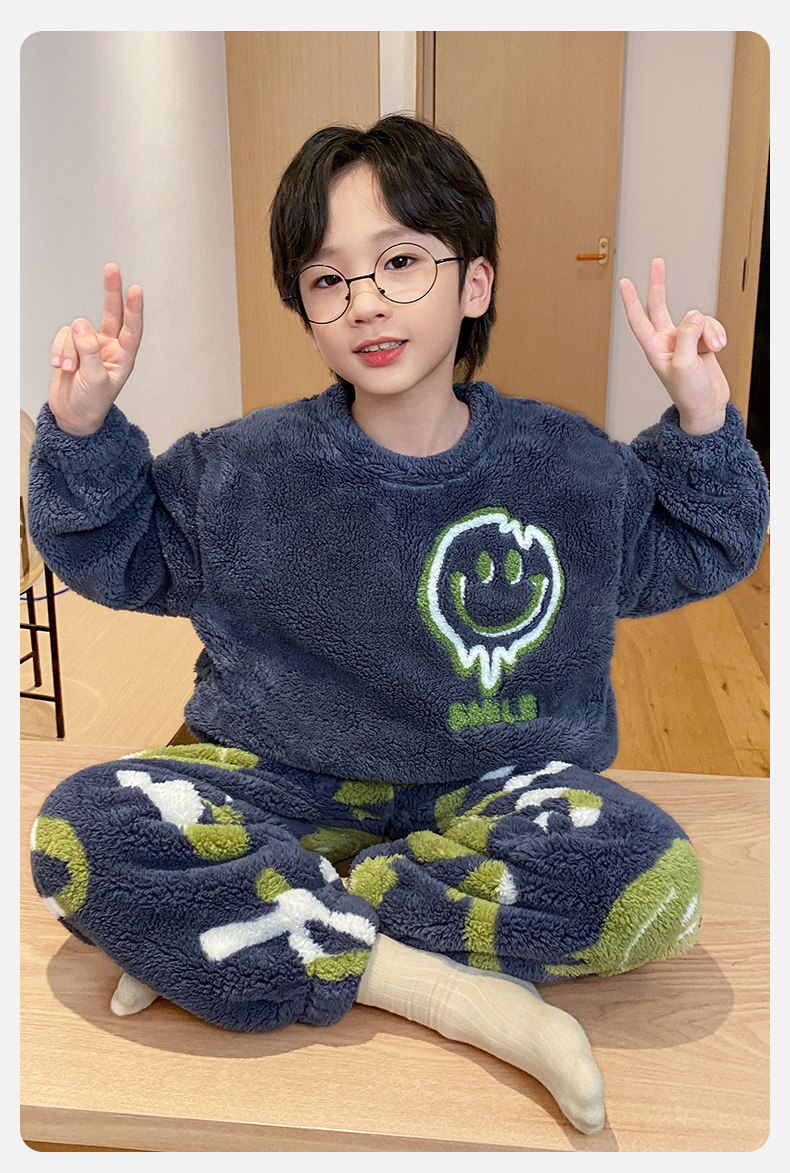 따뜻한 아기 플란넬 겨울 홈 의류 세트 기모 어린 잠옷 산호 양털 가을과 겨울 소년스토어 가기