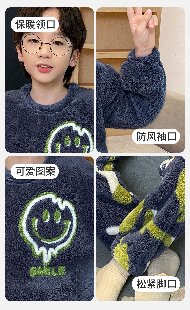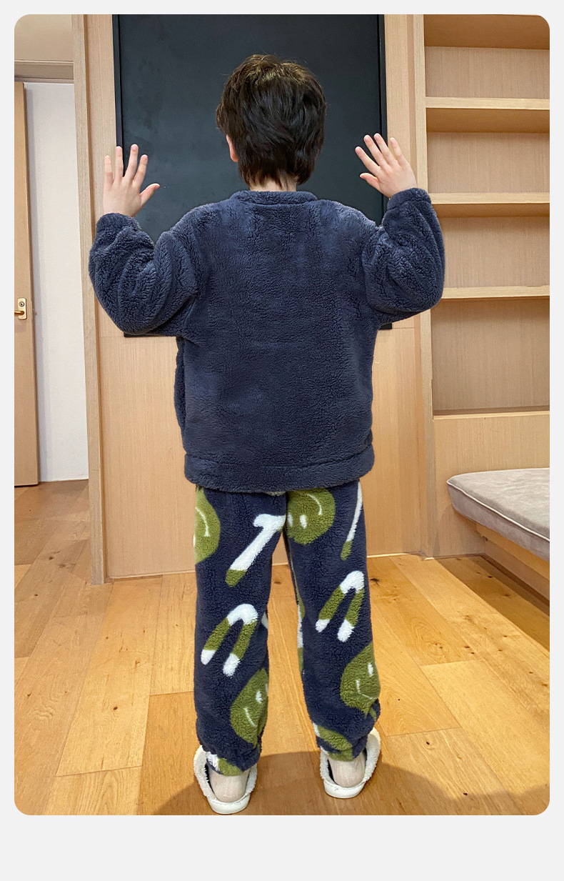 따뜻한 아기 플란넬 겨울 홈 의류 세트 기모 어린 잠옷 산호 양털 가을과 겨울 소년