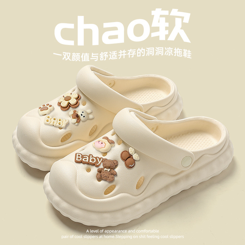 재고 패스트 헤어 슬리퍼 도매 여름 여름 2024 여성 시원한 미끄럼 방지 슬리퍼 남성 배설물 구멍 Baotou 단계스토어 가기