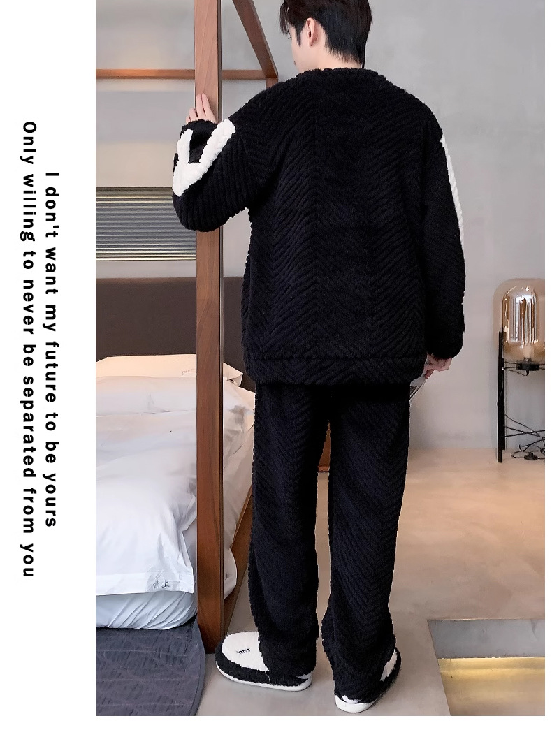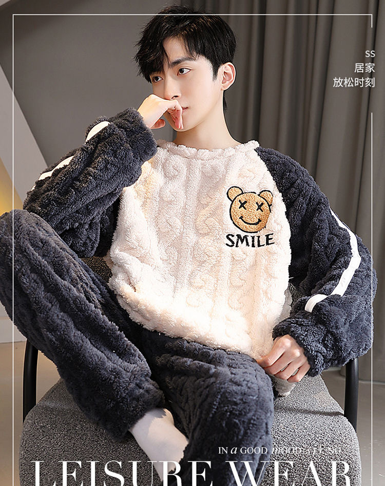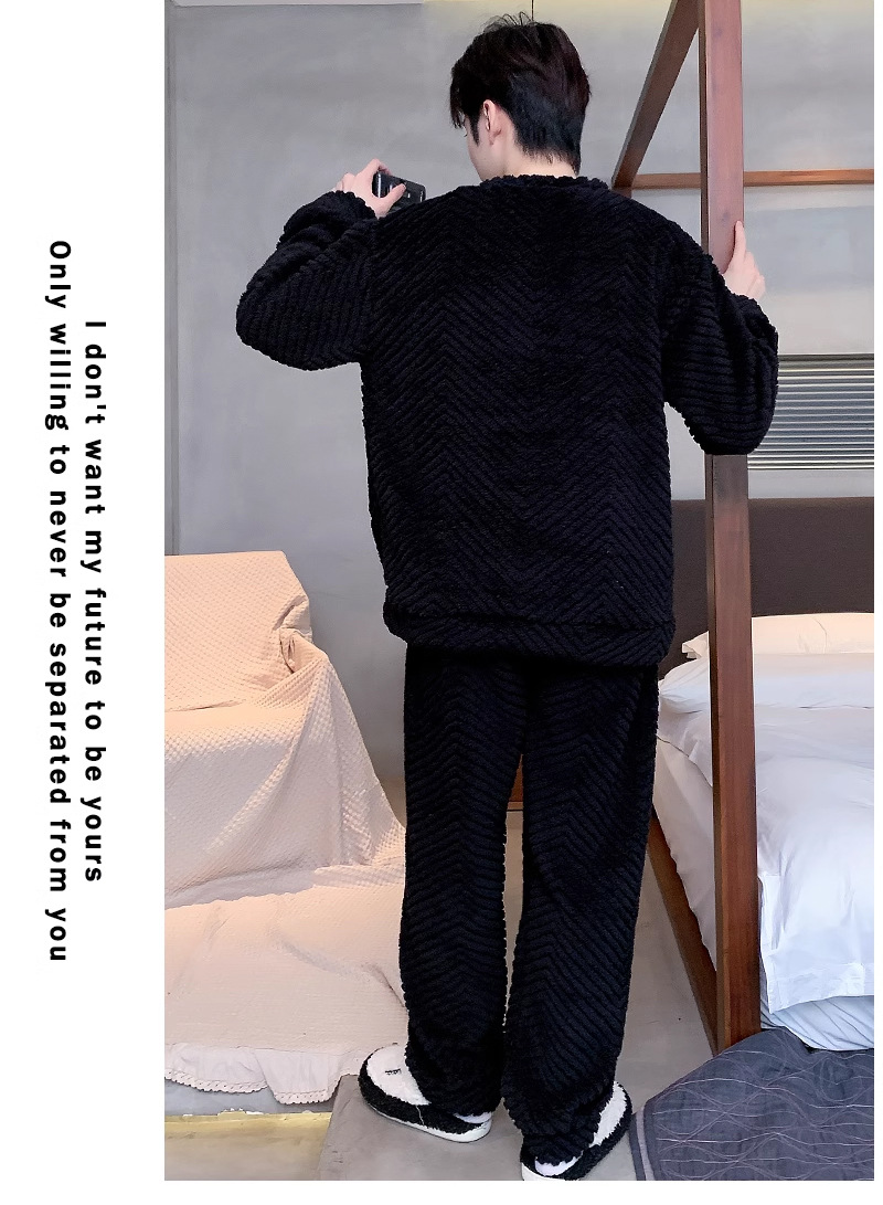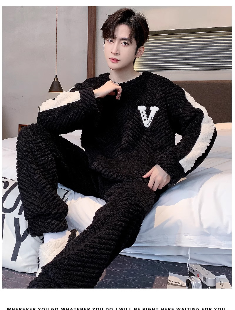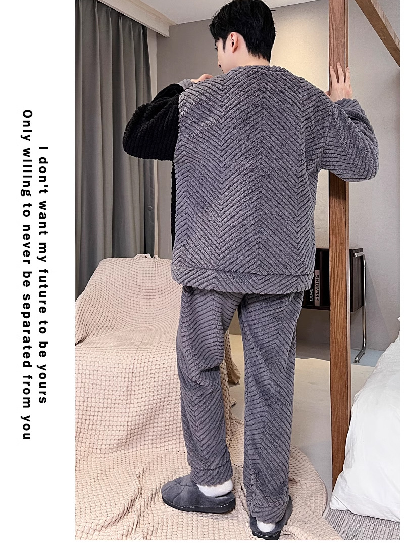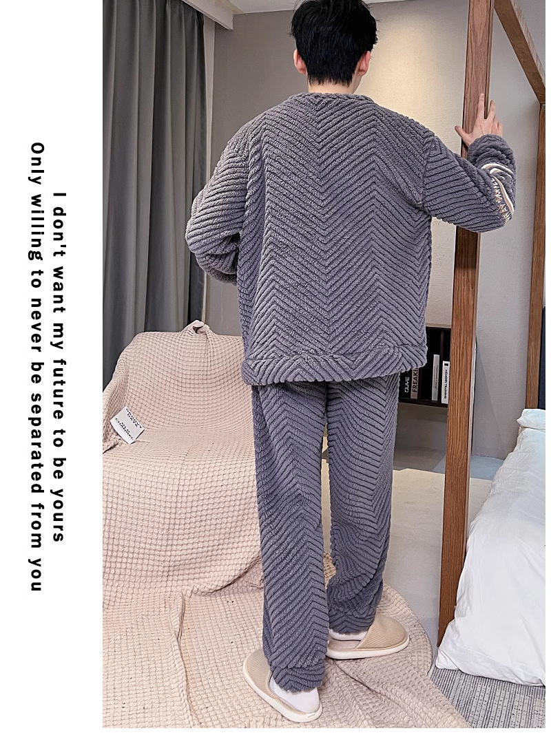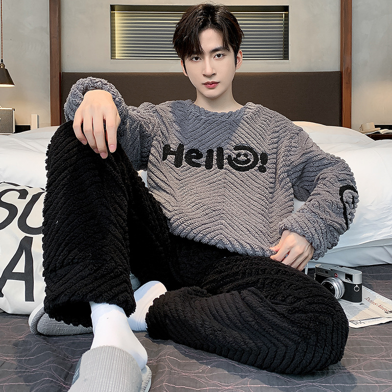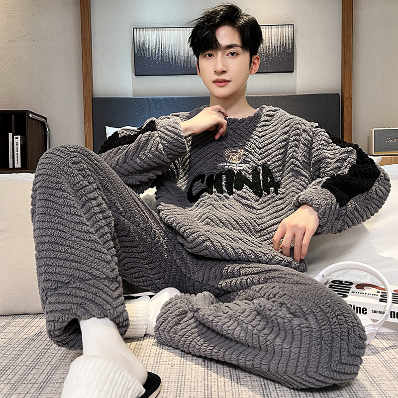 산호 벨벳 파자마 남자의 겨울 따뜻한 가을/겨울 플란넬 겨울 플러시 홈 옷 투피스 세트 기모