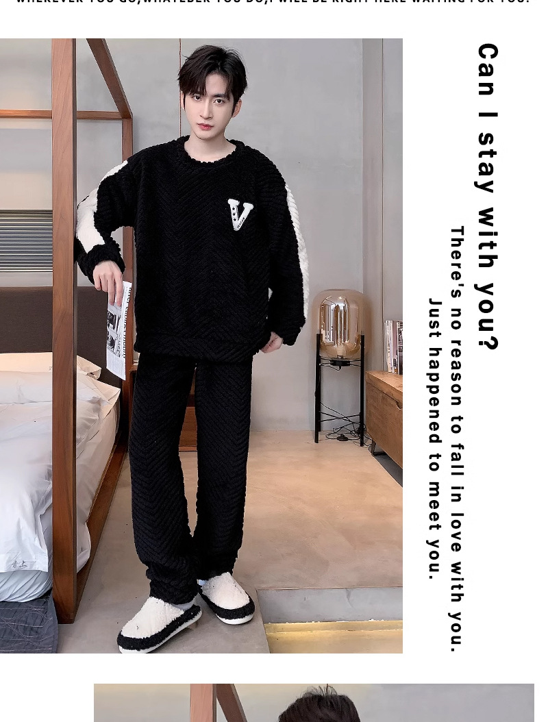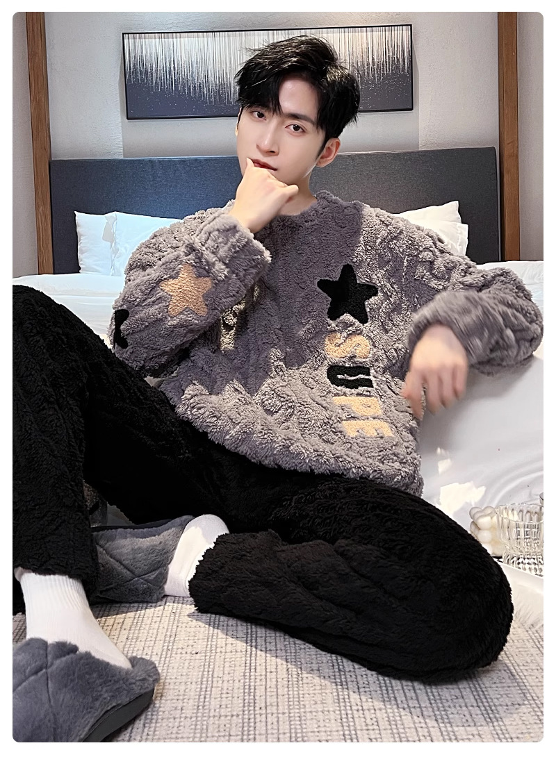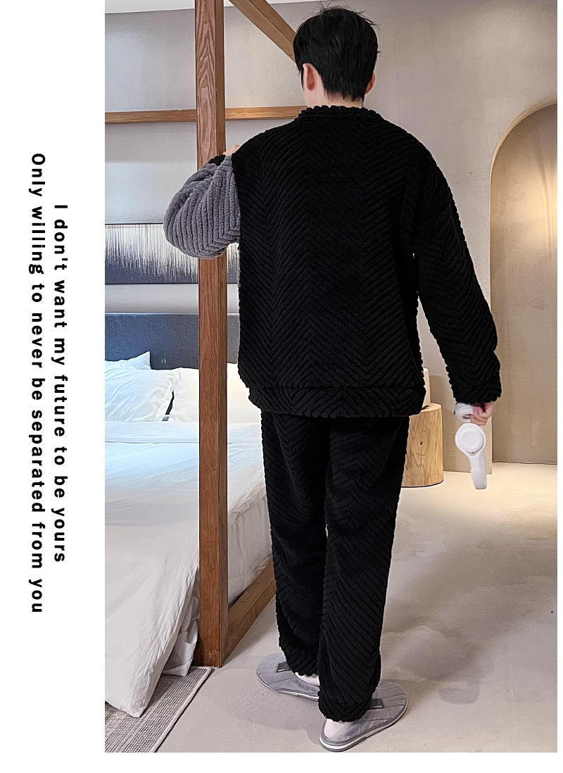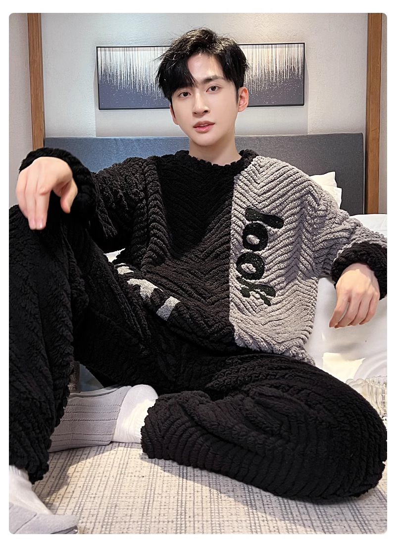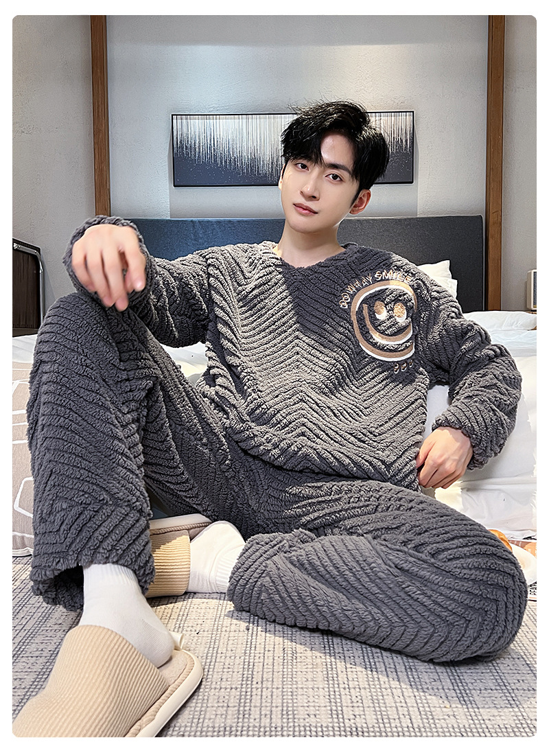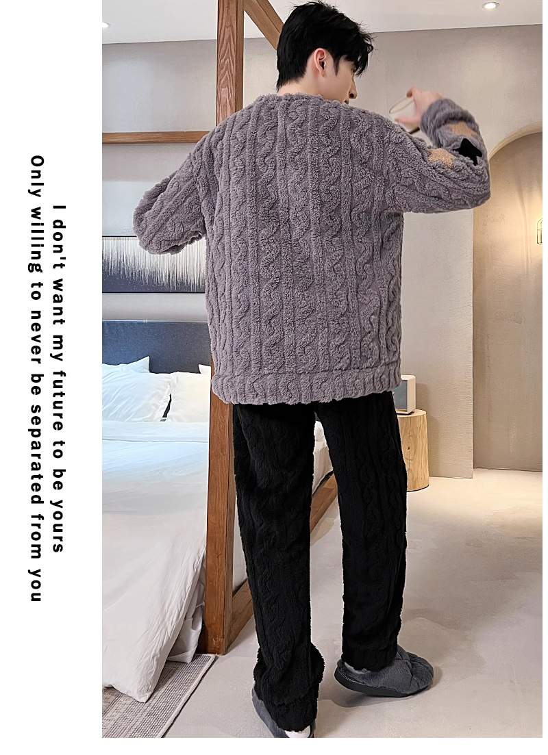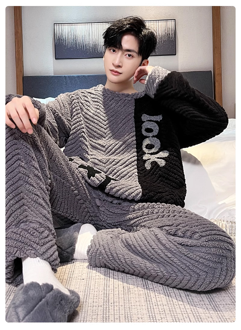 산호 벨벳 파자마 남자의 겨울 따뜻한 가을/겨울 플란넬 겨울 플러시 홈 옷 투피스 세트 기모