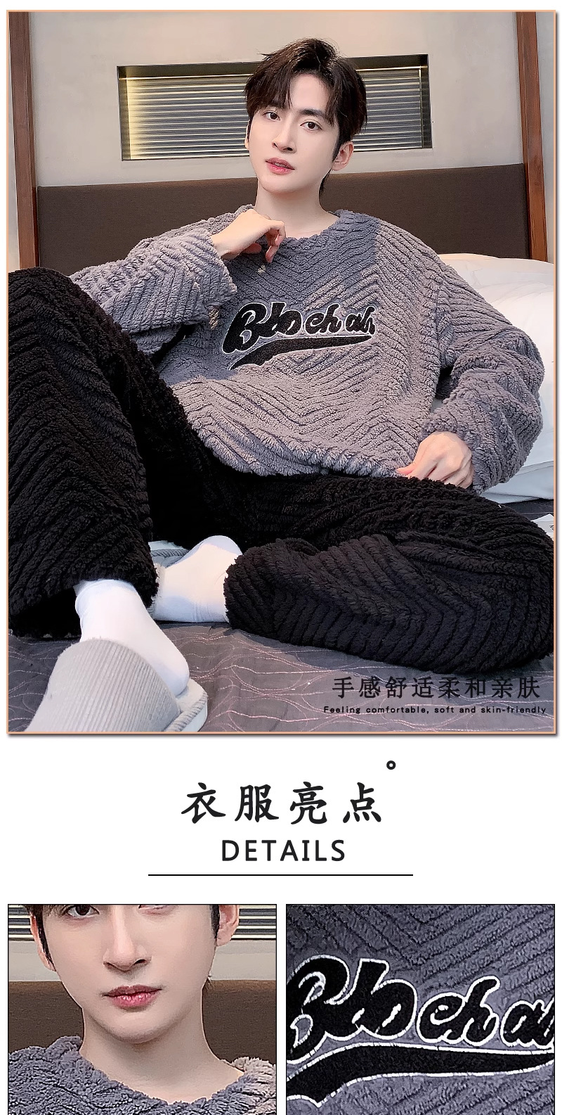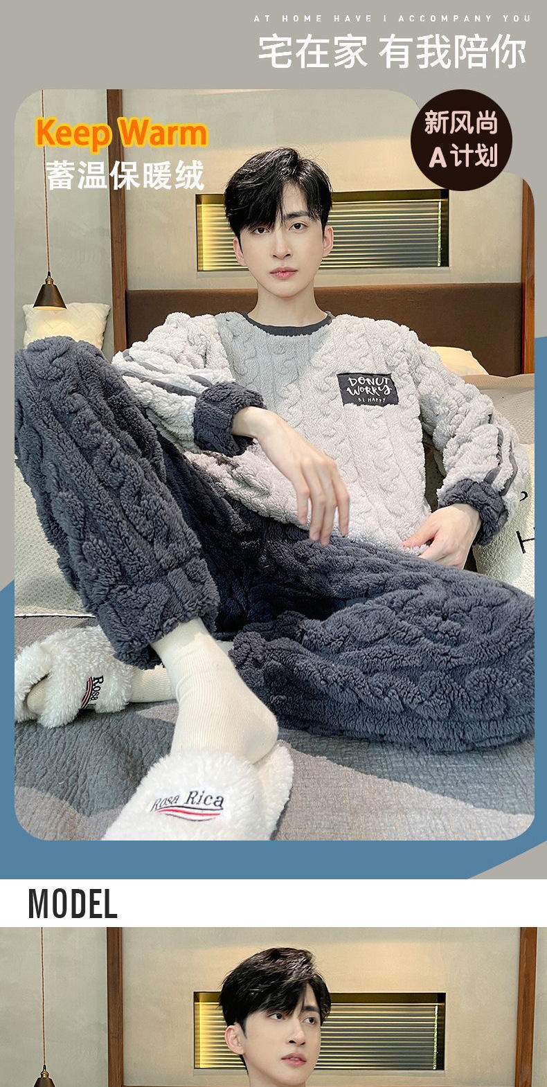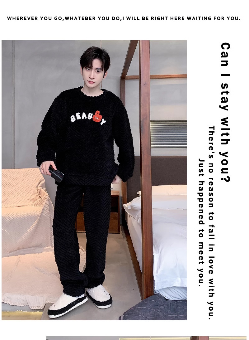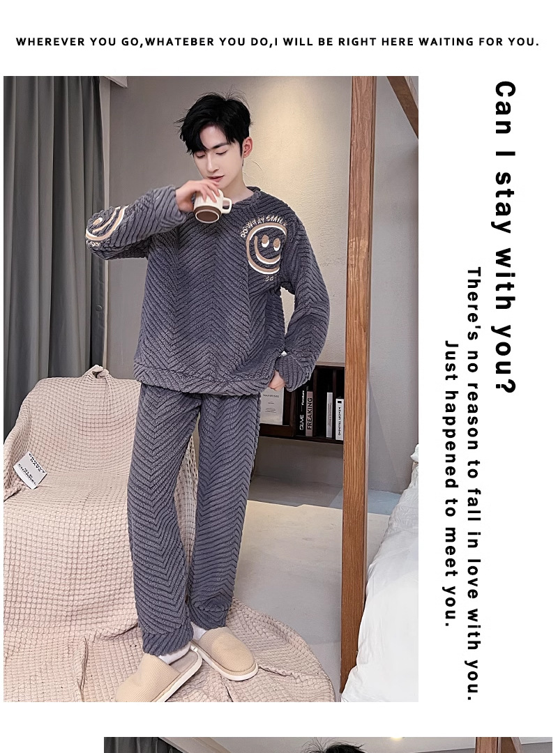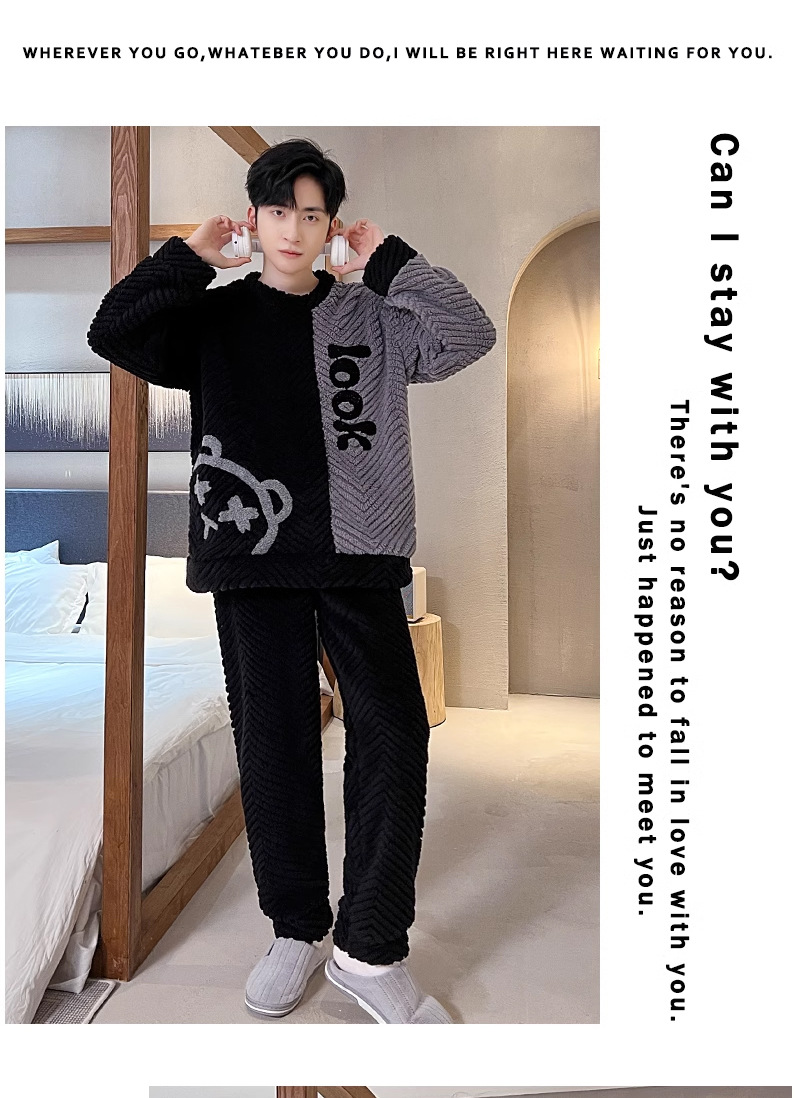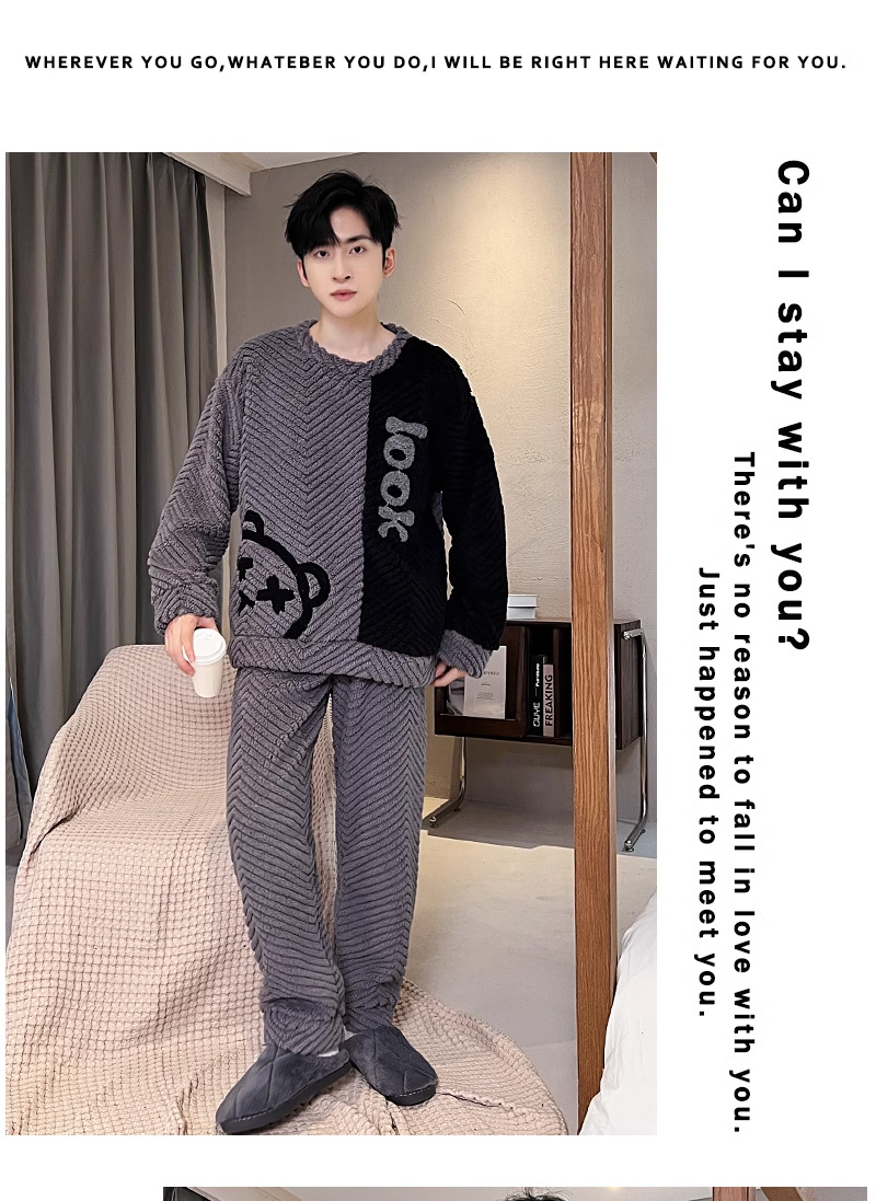 산호 벨벳 파자마 남자의 겨울 따뜻한 가을/겨울 플란넬 겨울 플러시 홈 옷 투피스 세트 기모스토어 가기