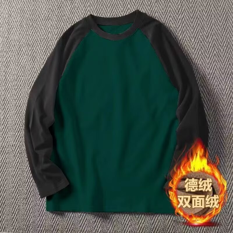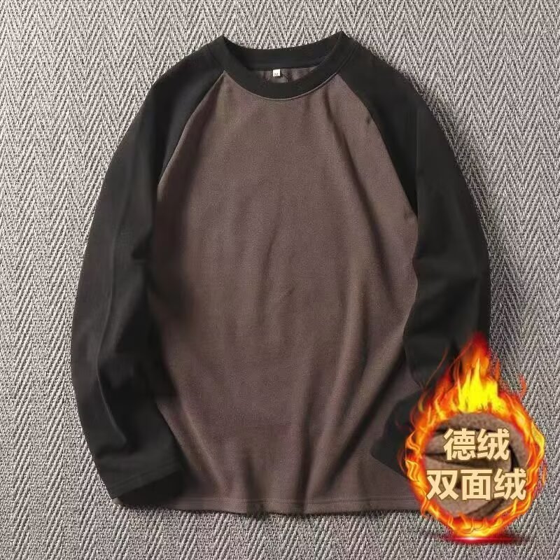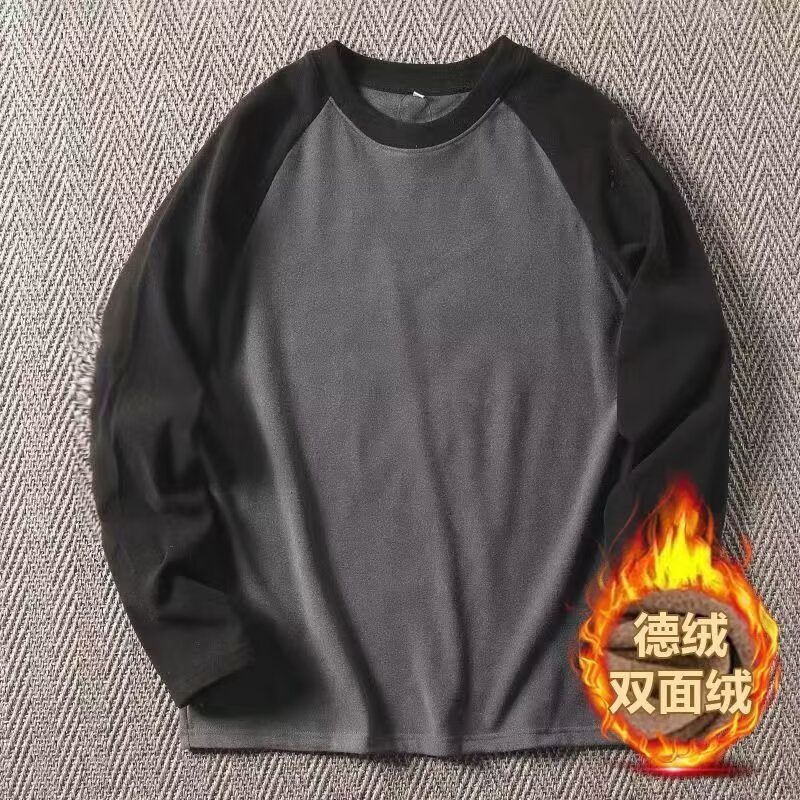 2024 라운드 넥 십대 양면 벨벳 라글란 소매 긴팔 티셔츠 남성베이스 셔츠 캐주얼 따뜻한 탑스토어 가기