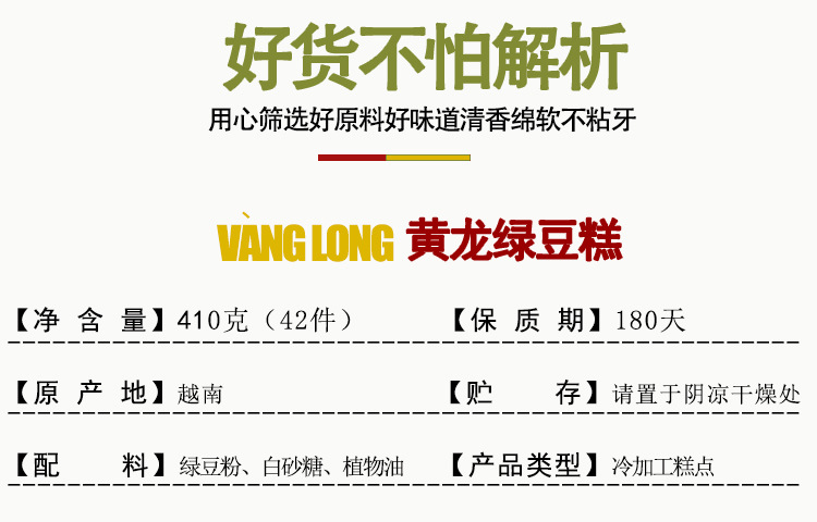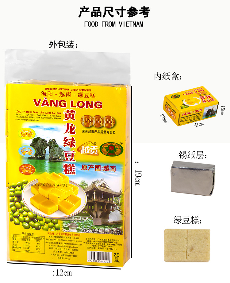 수입 베트남 황롱 녹콩 케이크 410g 맛있는 그물 빨간 간식 비스킷 과자 전문 레저 식품 도매