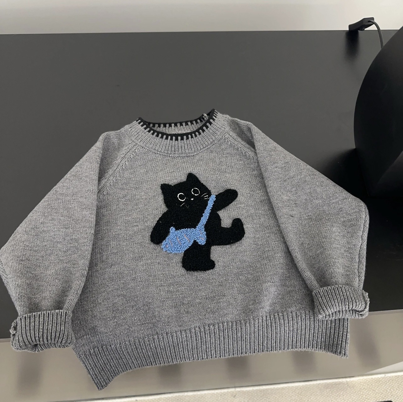 [한샤오샤오] 소년 한국식 스웨터 천 가을 신작 어린이 만화 캐주얼 루즈 귀여운 탑 스웨터