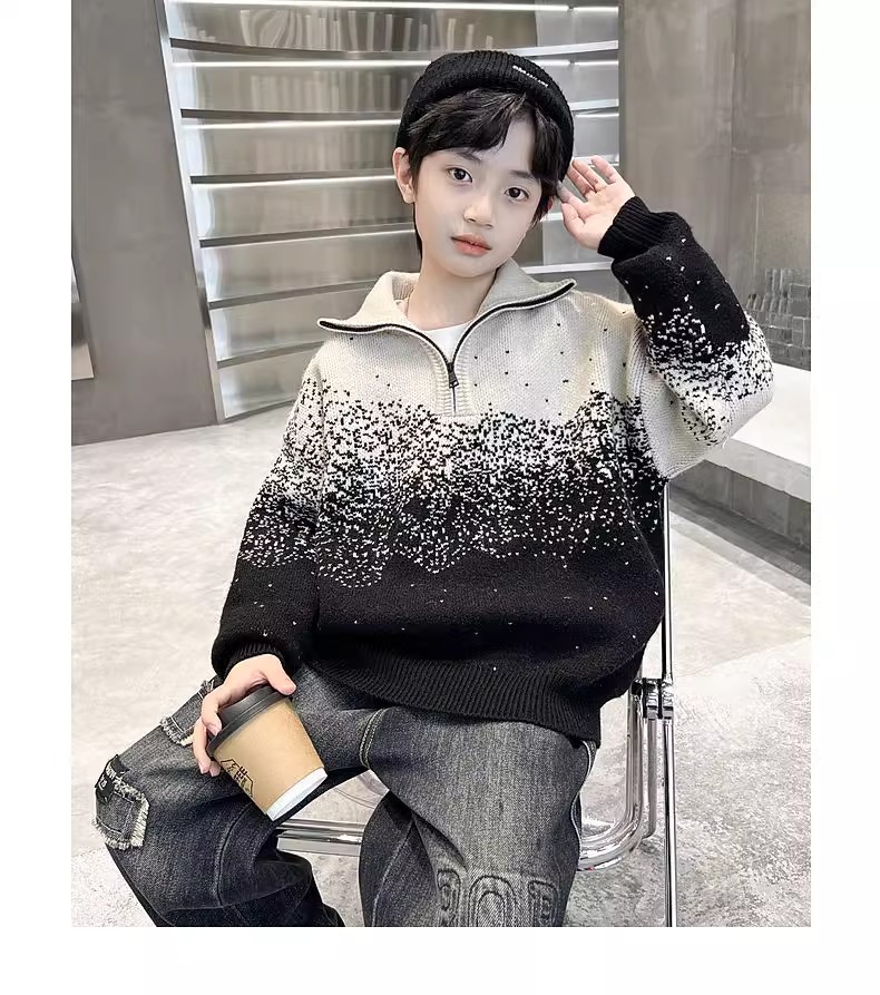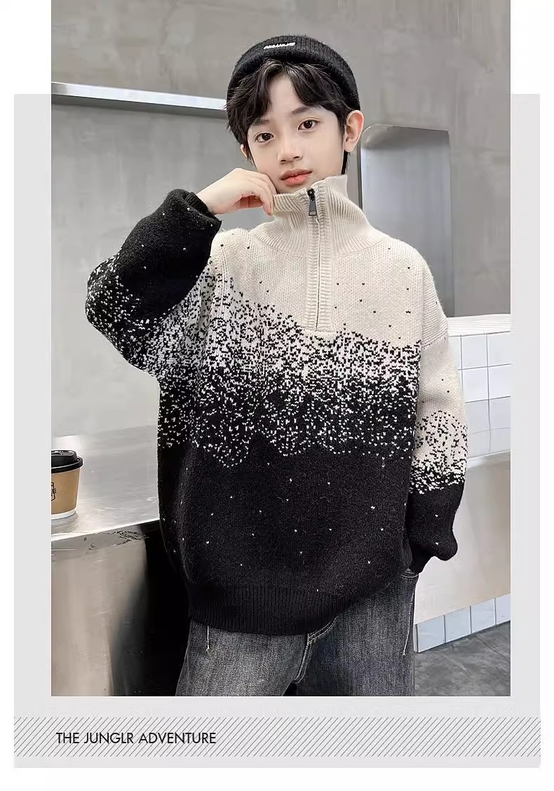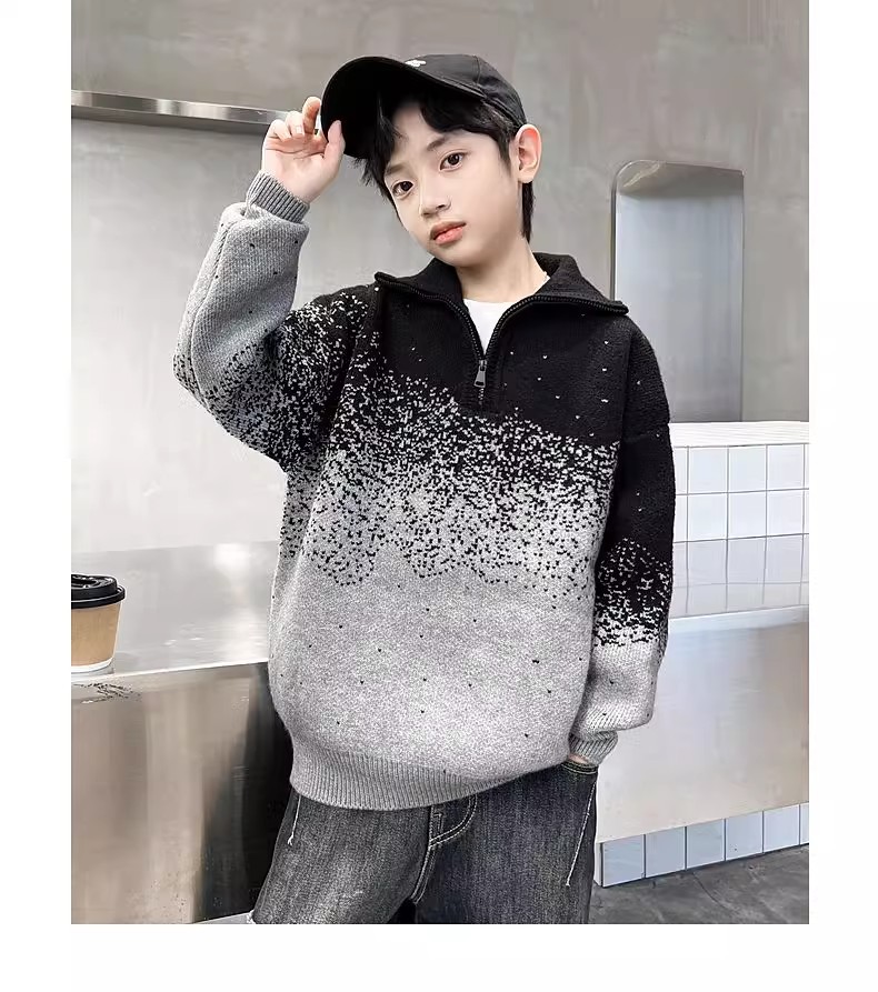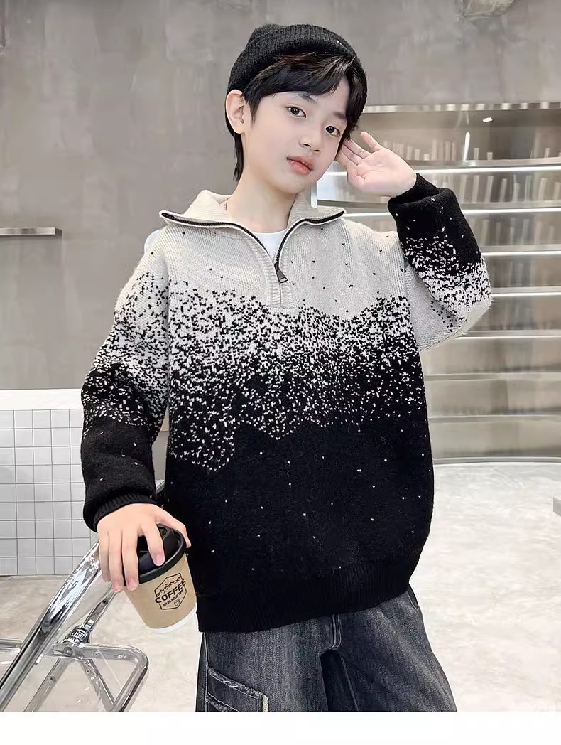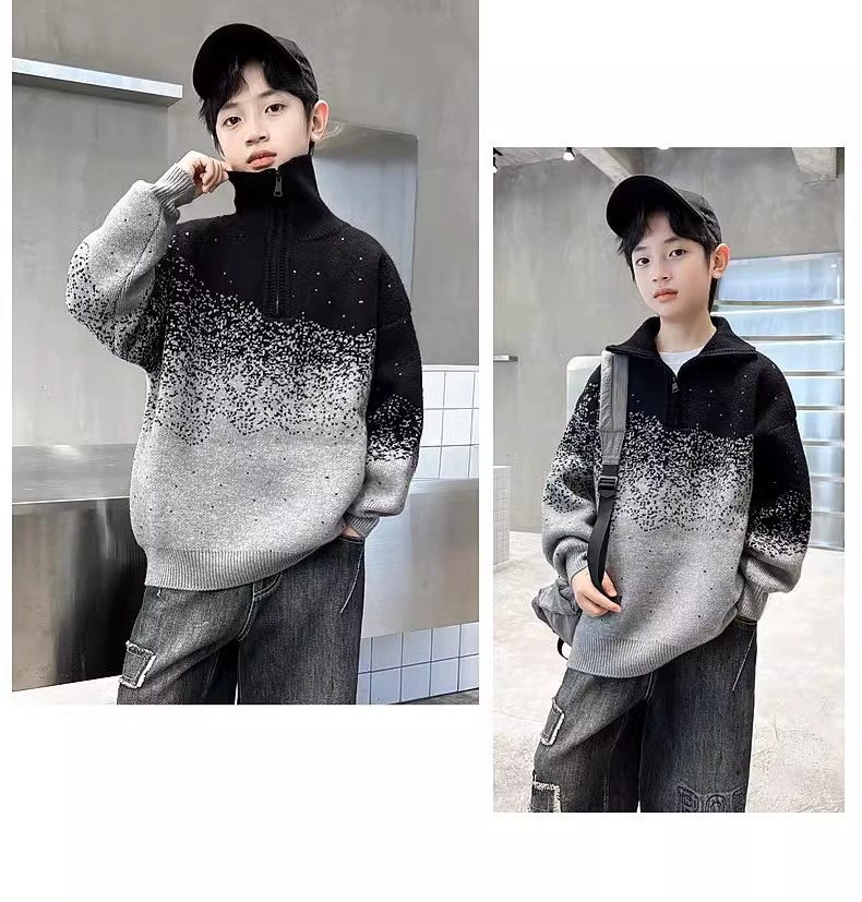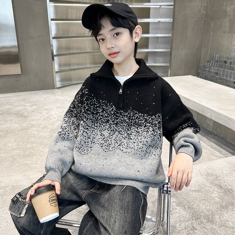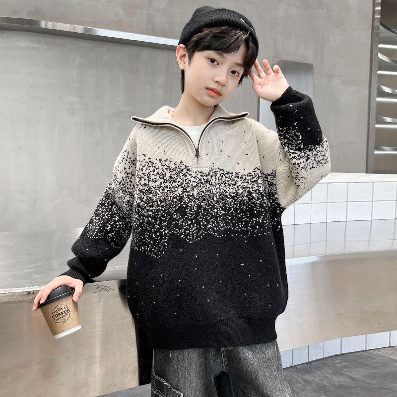 남아용 스웨터 가을 겨울 2024 신상 가을 하이넥 풀오버 니트웨어 중대형 어린이 남아 가을 패션