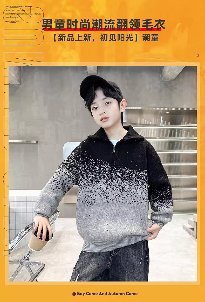 남아용 스웨터 가을 겨울 2024 신상 가을 하이넥 풀오버 니트웨어 중대형 어린이 남아 가을 패션스토어 가기