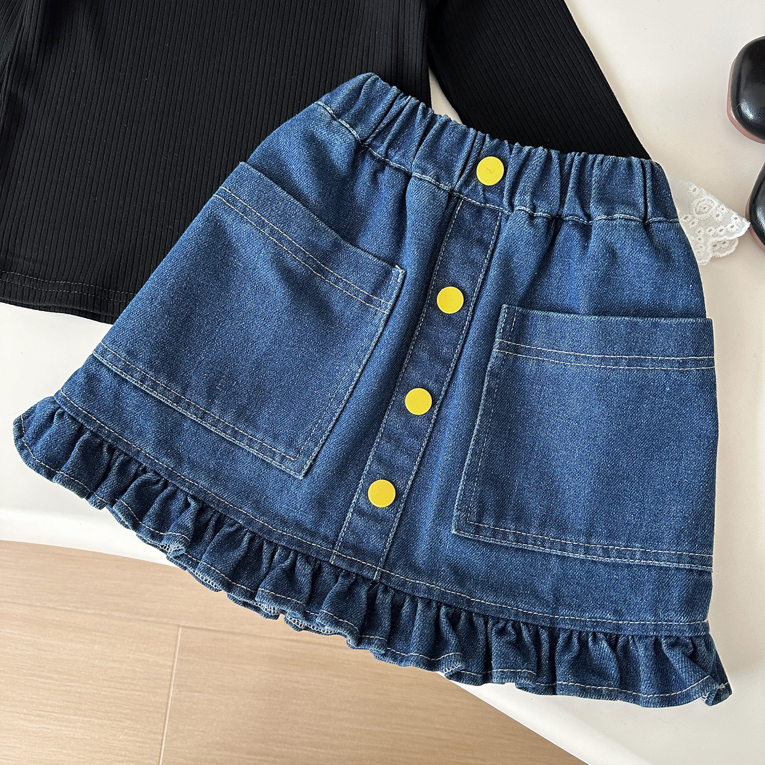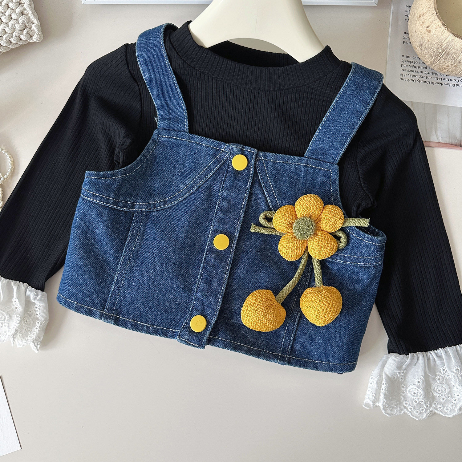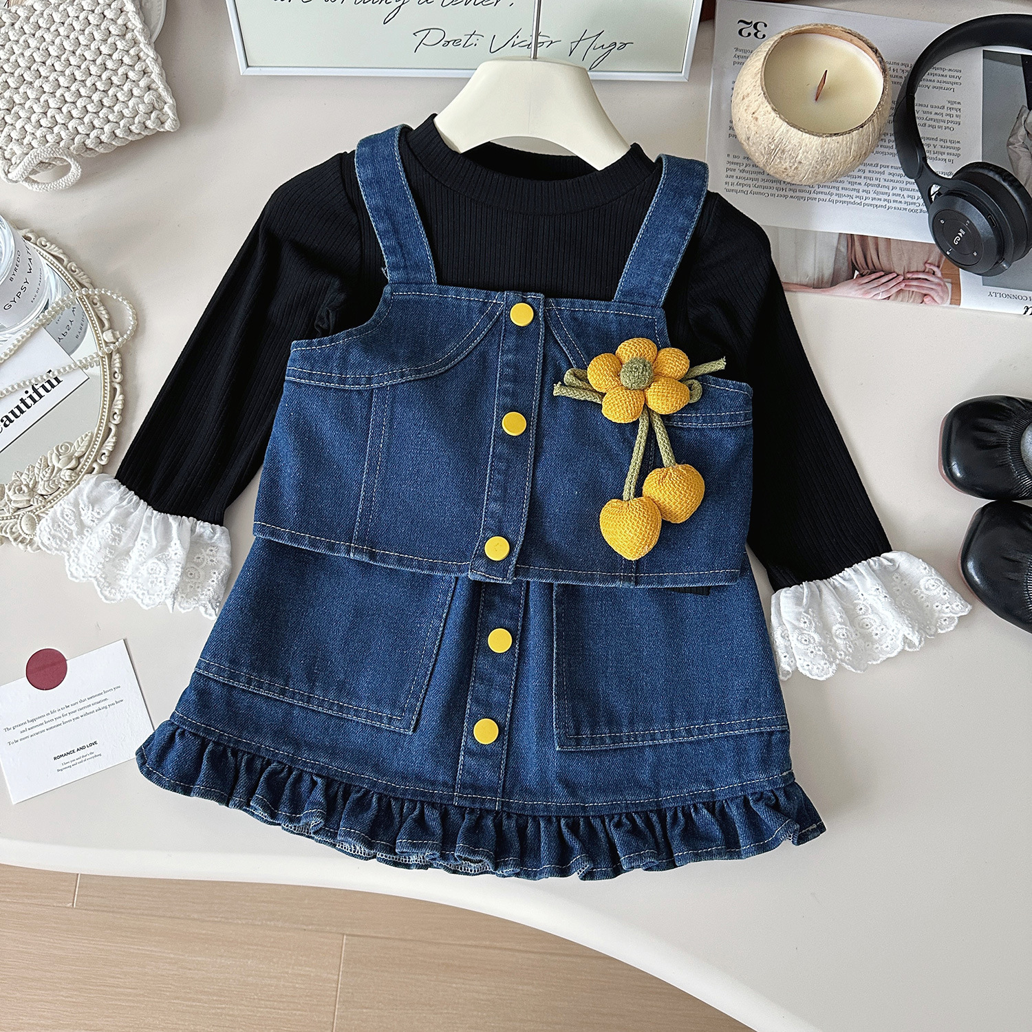 가을 2024 새로운 한국 소녀 데님 슬립 스커트 세트 아기 레트로 서양식 투피스 67620스토어 가기
