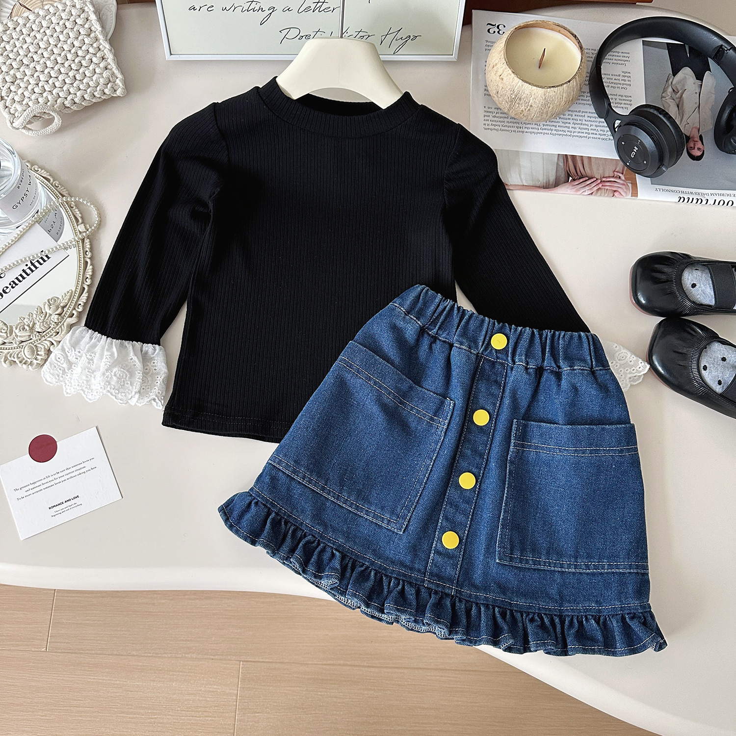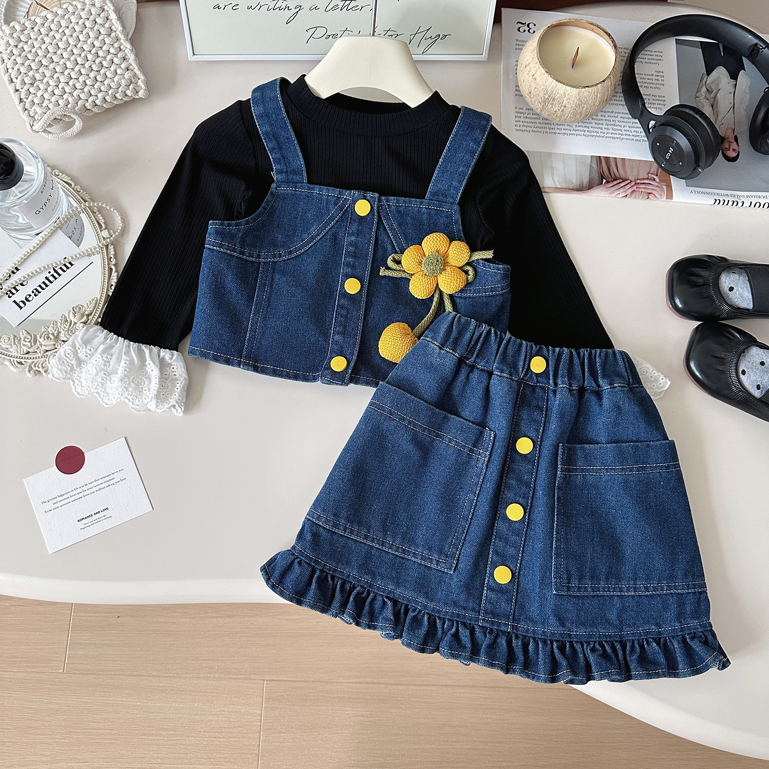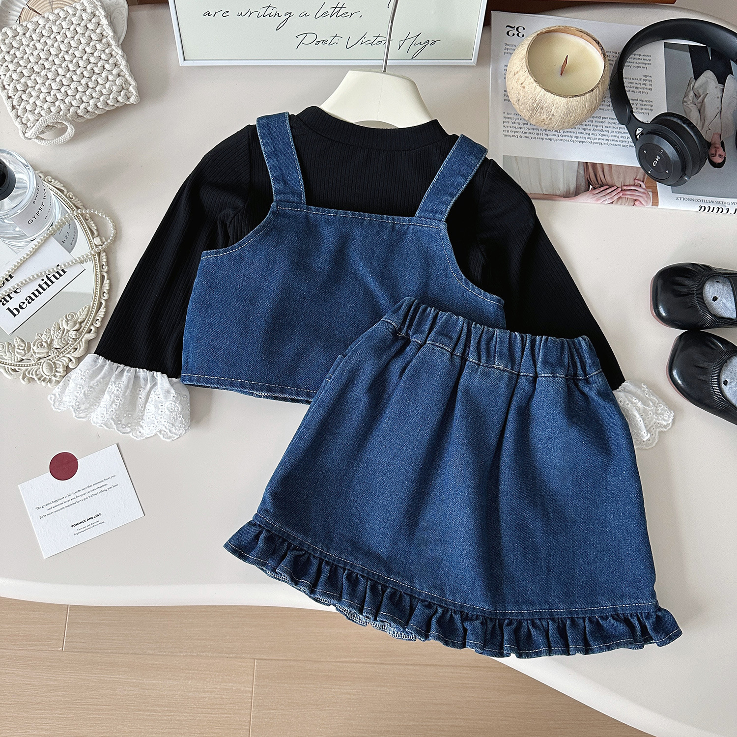 가을 2024 새로운 한국 소녀 데님 슬립 스커트 세트 아기 레트로 서양식 투피스 67620