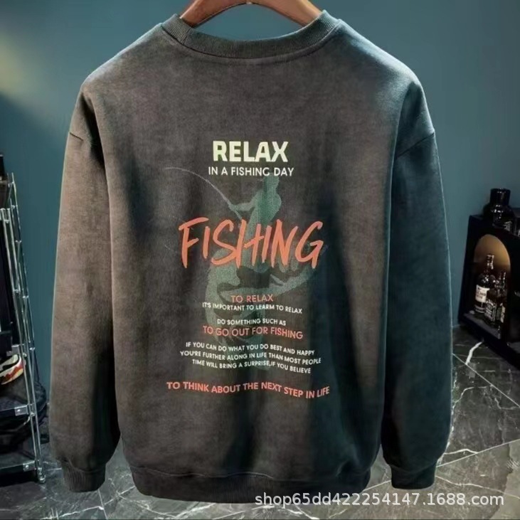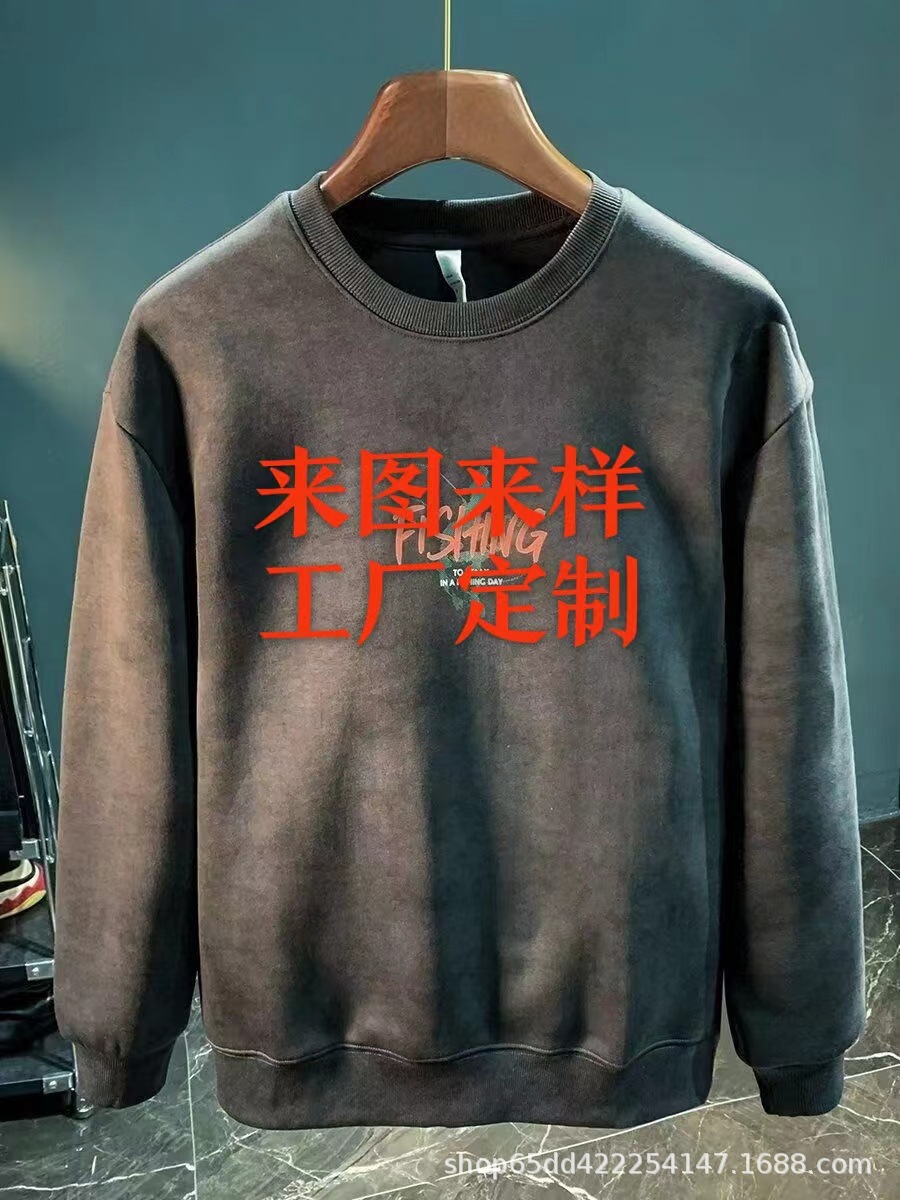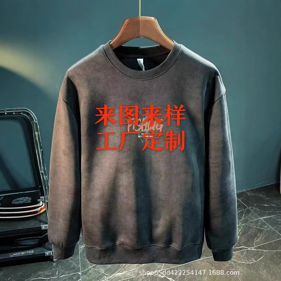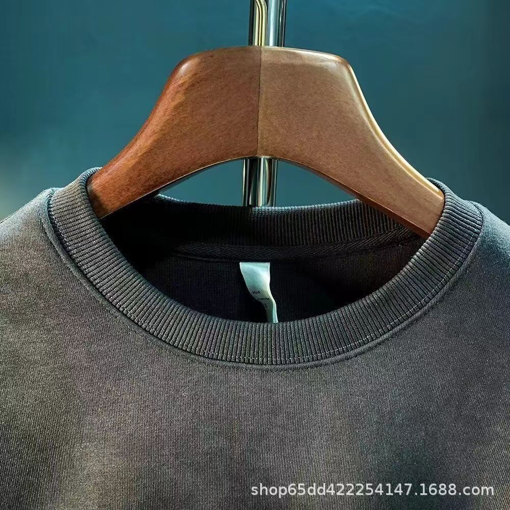 공장 맞춤형 남성 봄, 가을 미국 복고풍 새 스웨트 셔츠 트렌디 캐주얼 긴팔 티셔츠 라운드 넥 바닥 셔츠스토어 가기