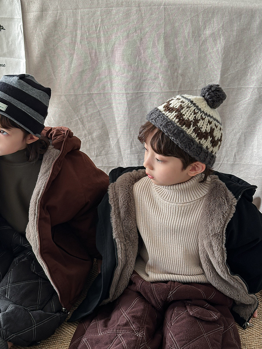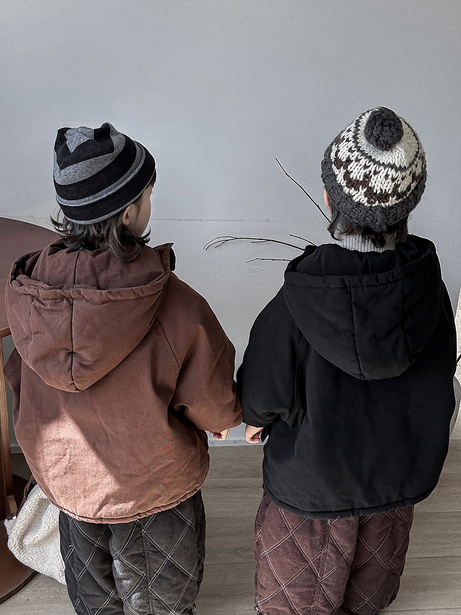 2025년 신상 아동용 겨울 토끼털 후드 코튼 자켓 남녀 공용 두꺼운 보온 코트