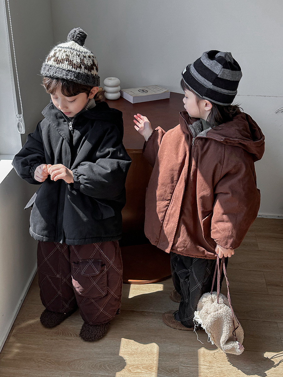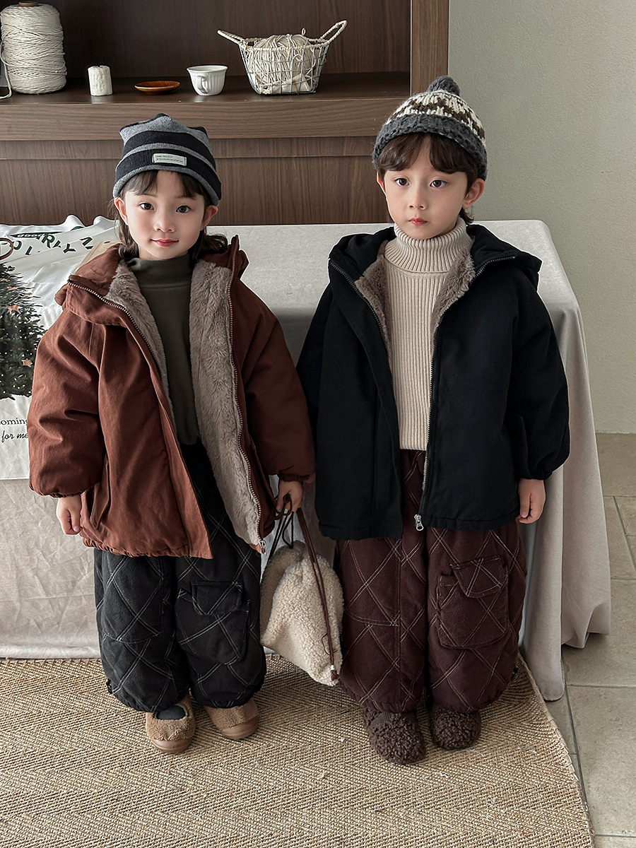2025년 신상 아동용 겨울 토끼털 후드 코튼 자켓 남녀 공용 두꺼운 보온 코트스토어 가기