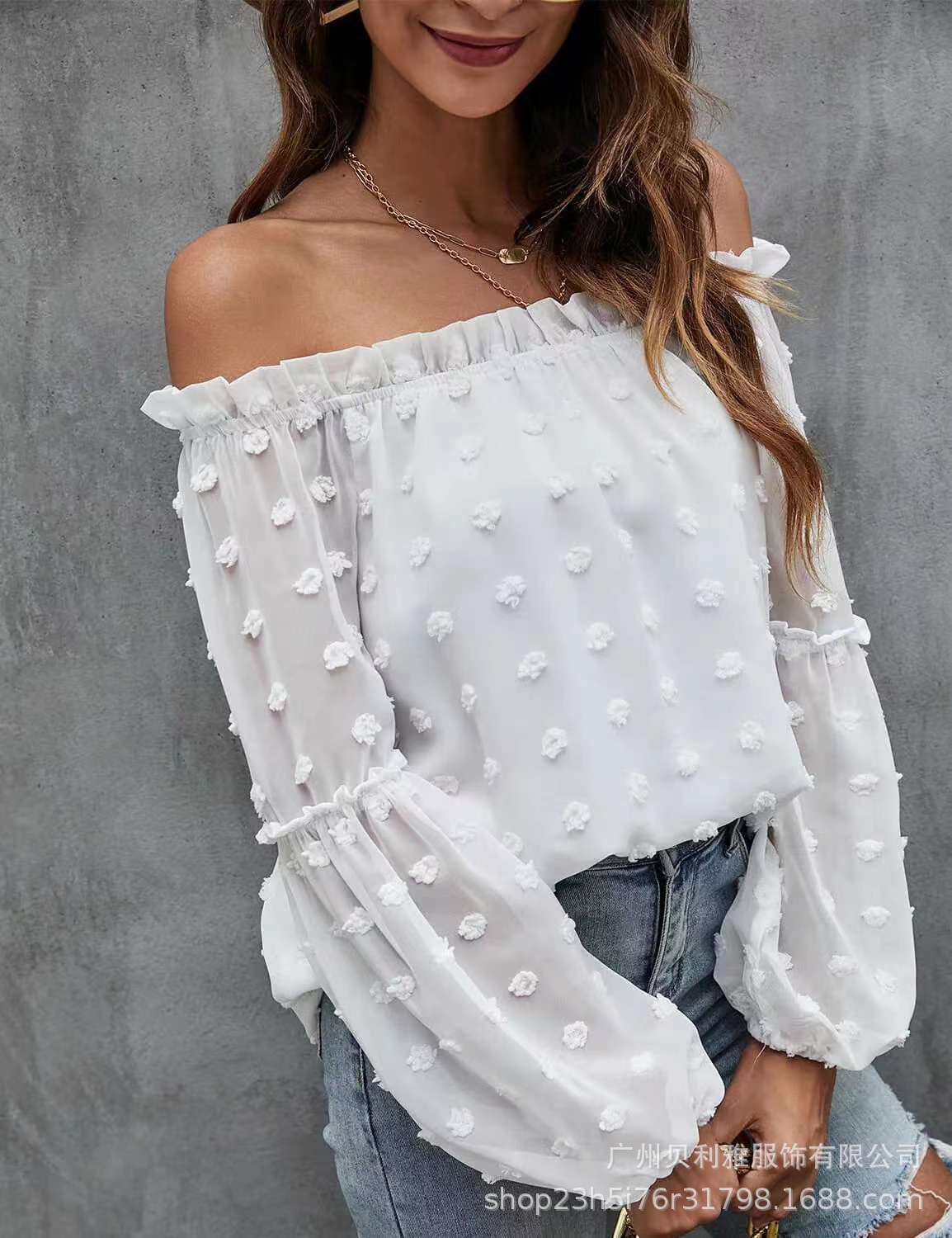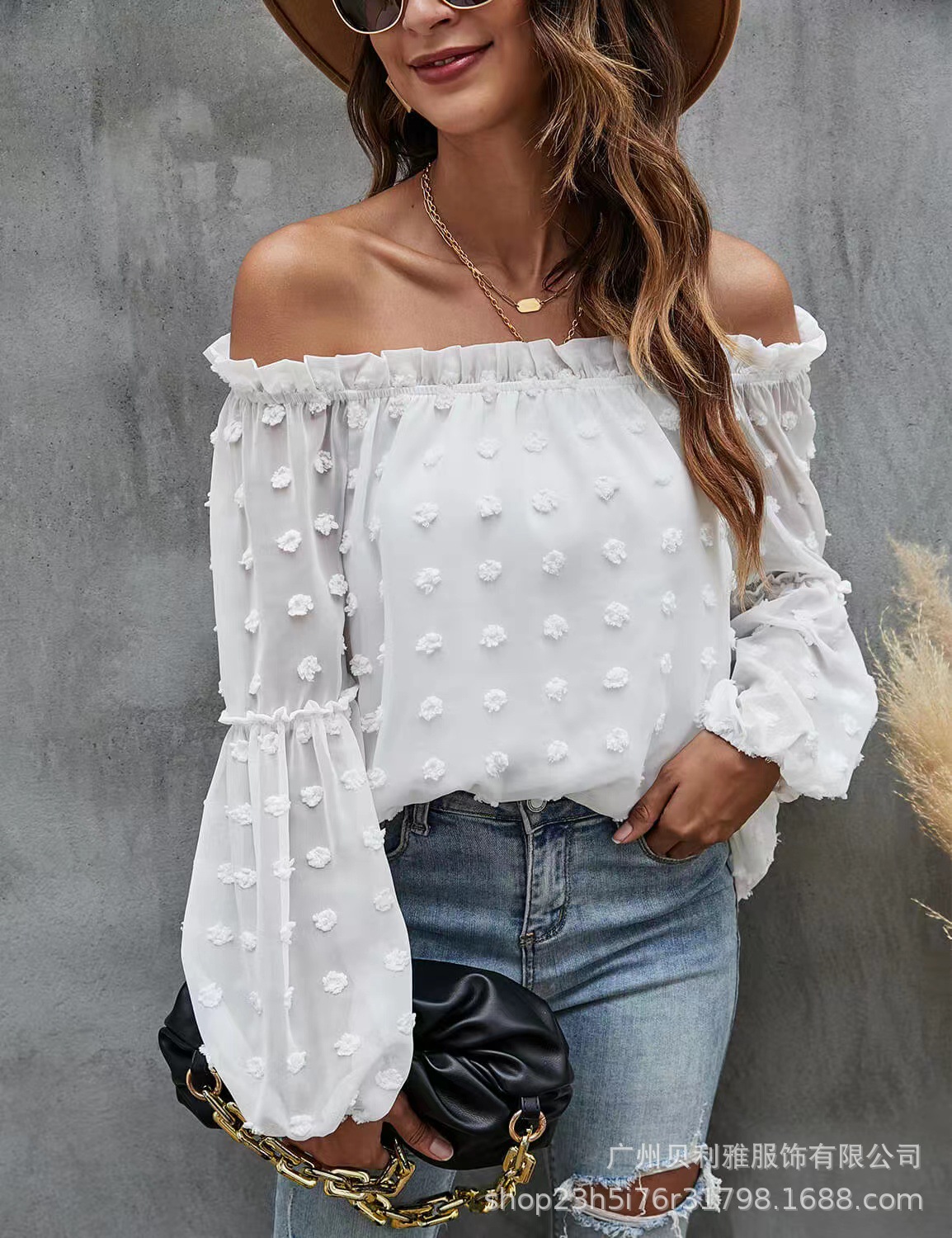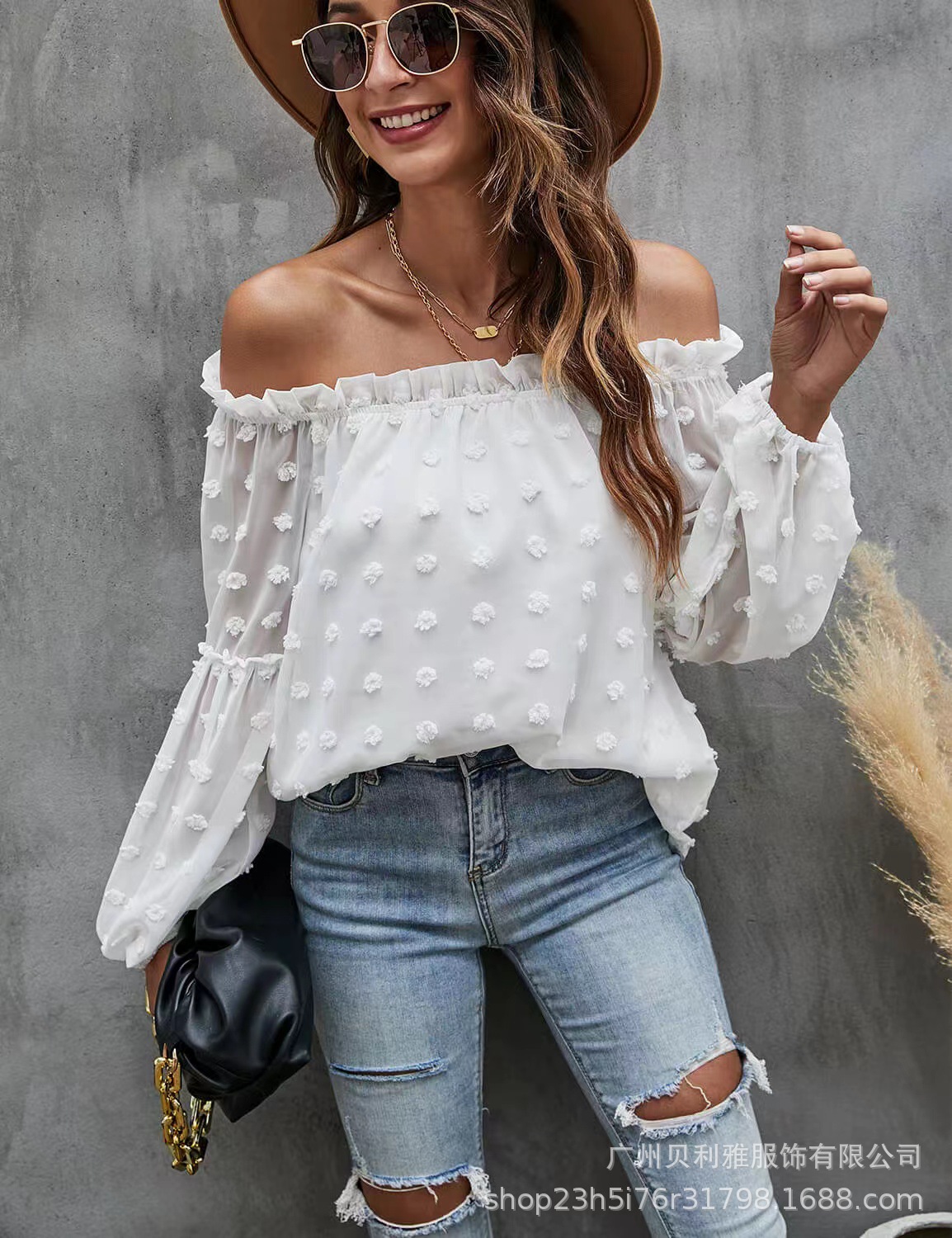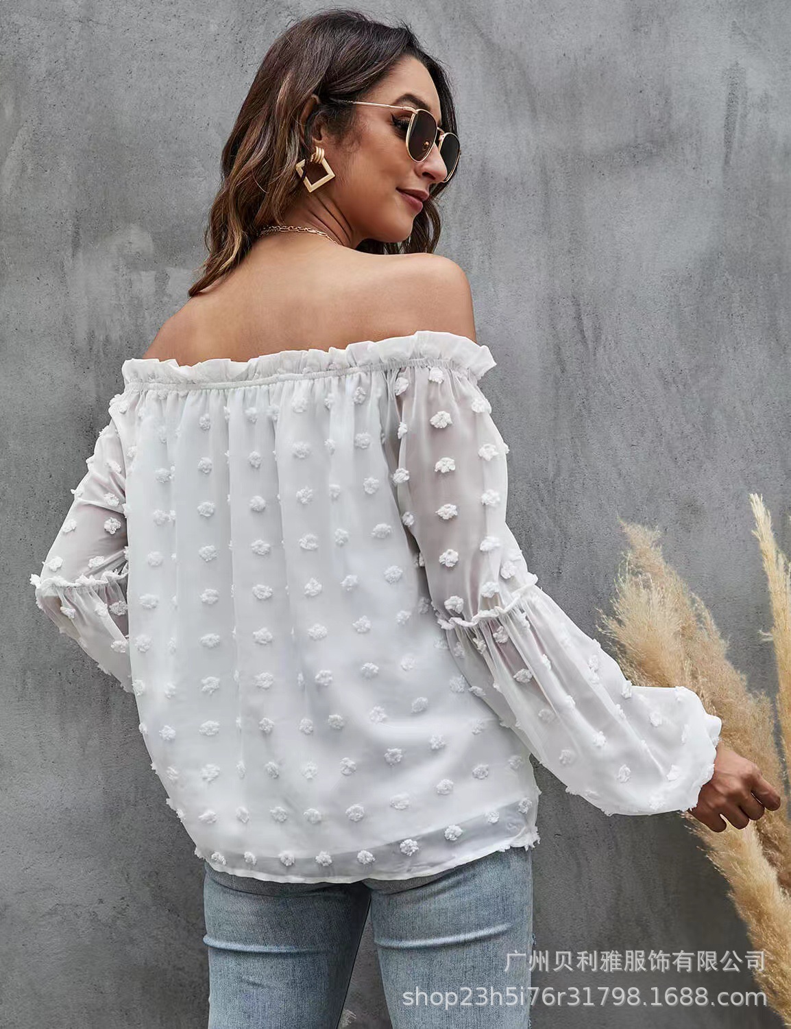 아마존 유럽과 미국의 대외 무역 여성의 여름 어깨 셔츠 트럼펫 소매 단색 캐주얼 셔츠