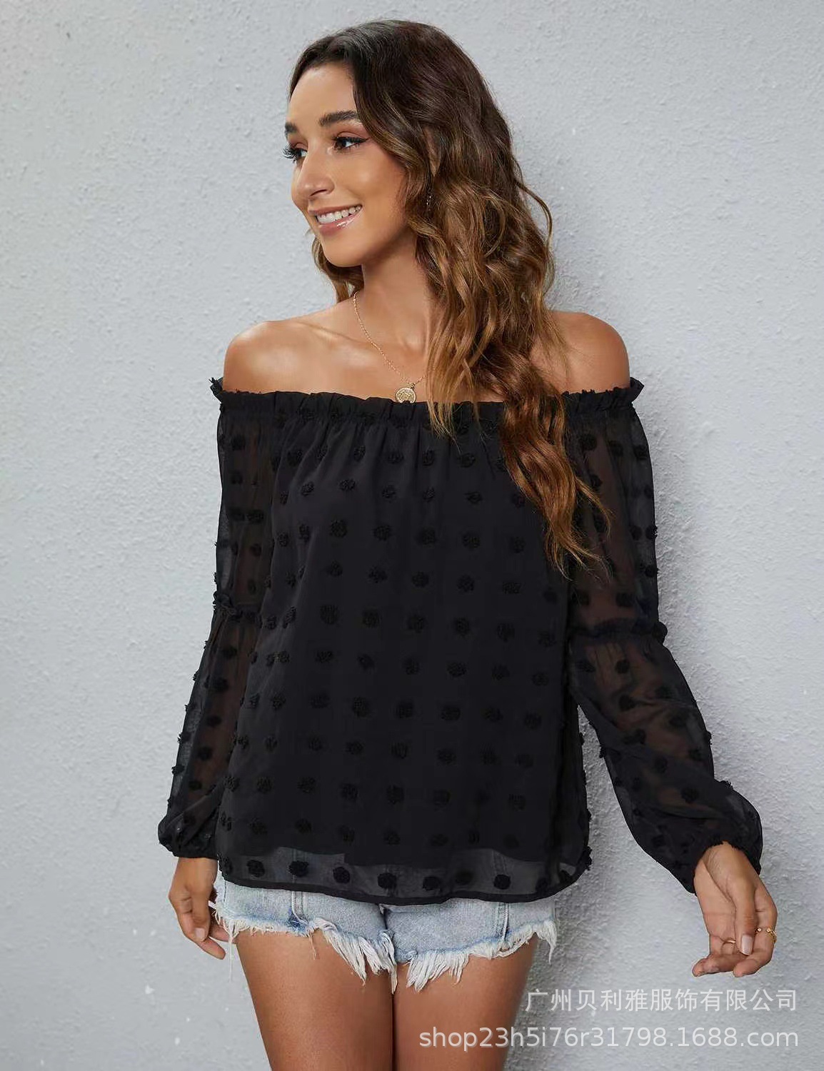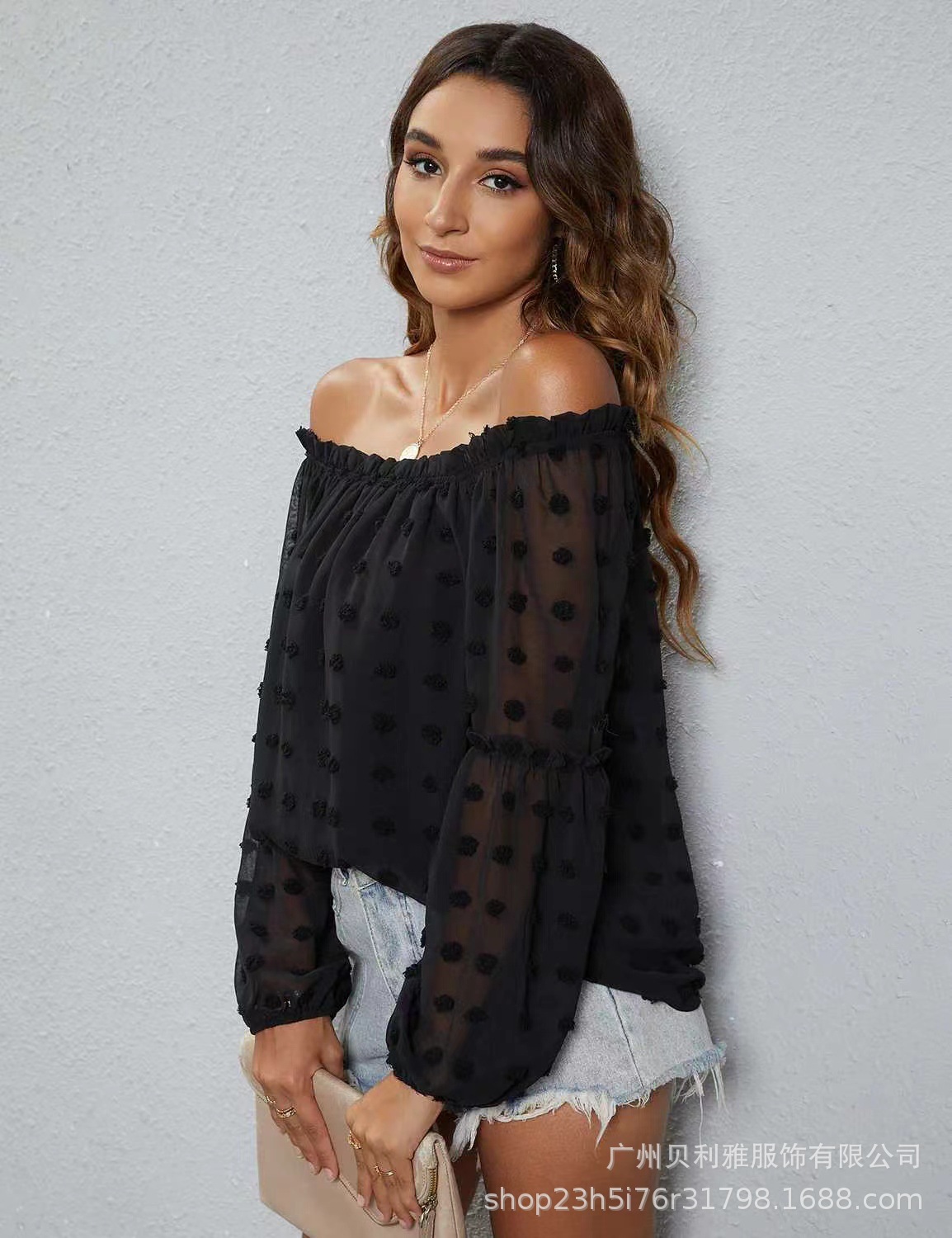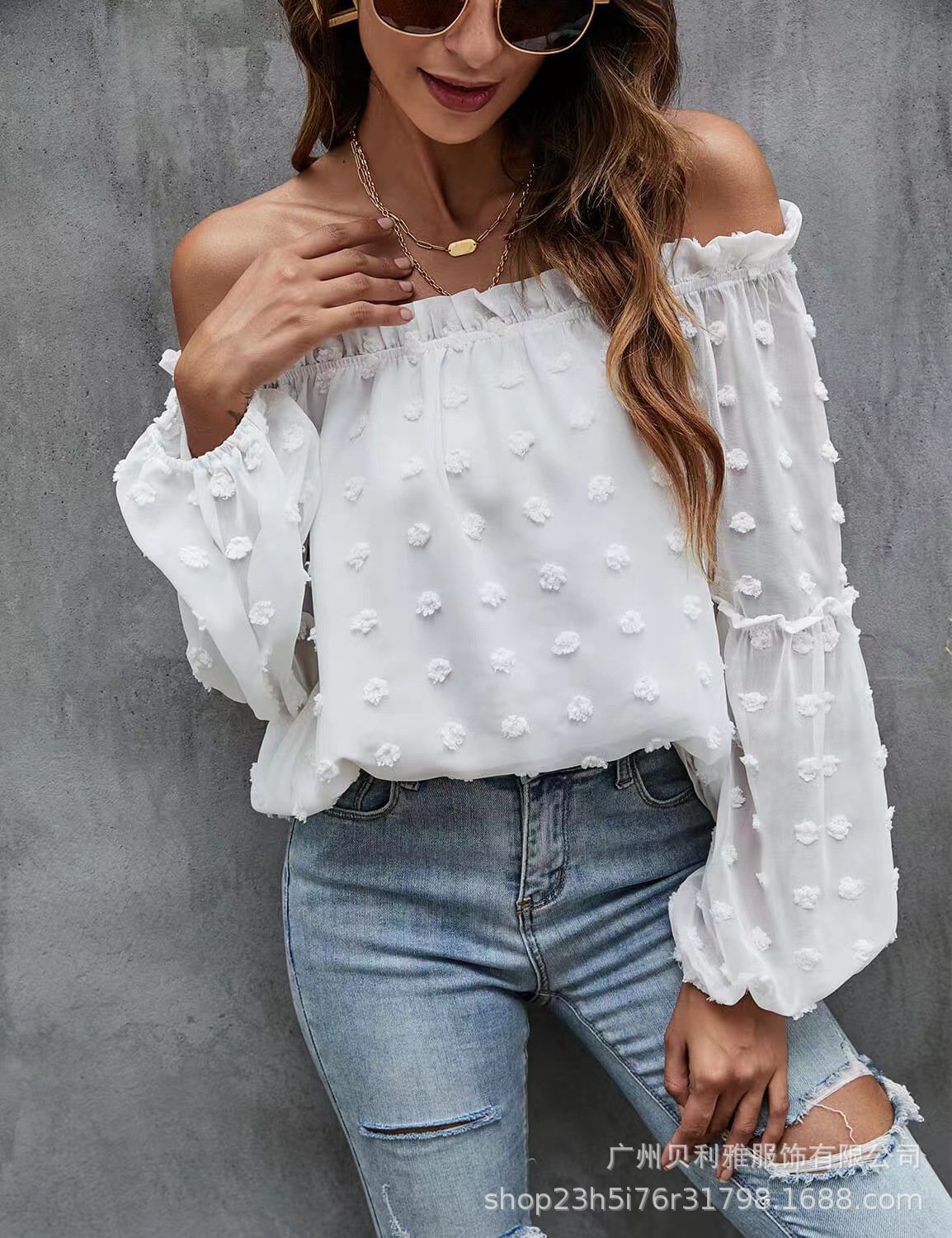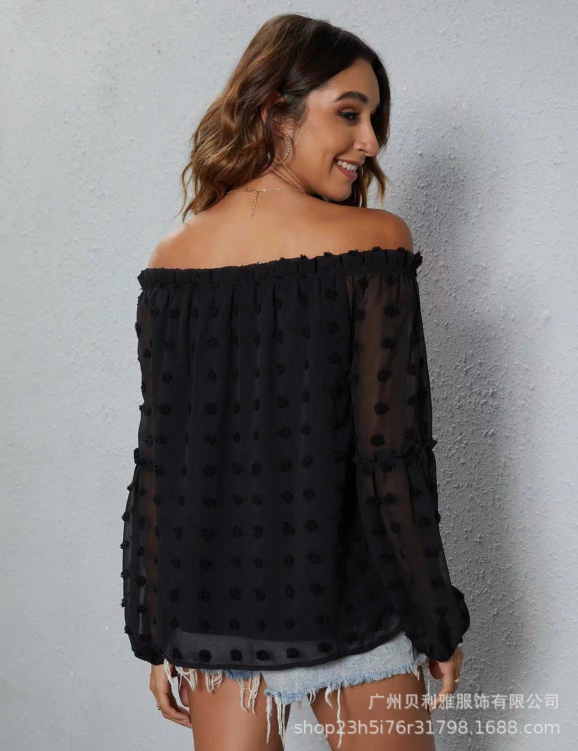 아마존 유럽과 미국의 대외 무역 여성의 여름 어깨 셔츠 트럼펫 소매 단색 캐주얼 셔츠