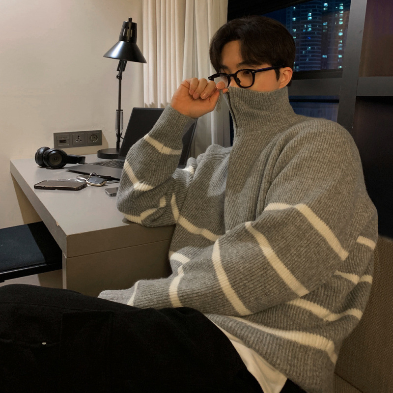 MYQ 하프 Zip 스트라이프 게으른 니트웨어 남자 겨울 따뜻한 루즈 탑 한국 스타일 트렌디 풀오버 스웨터스토어 가기