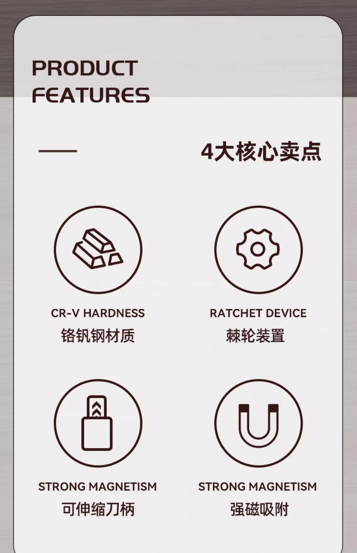 • 고경도 래칫 이중 목적 텔레스코픽 드라이버 12-in-1