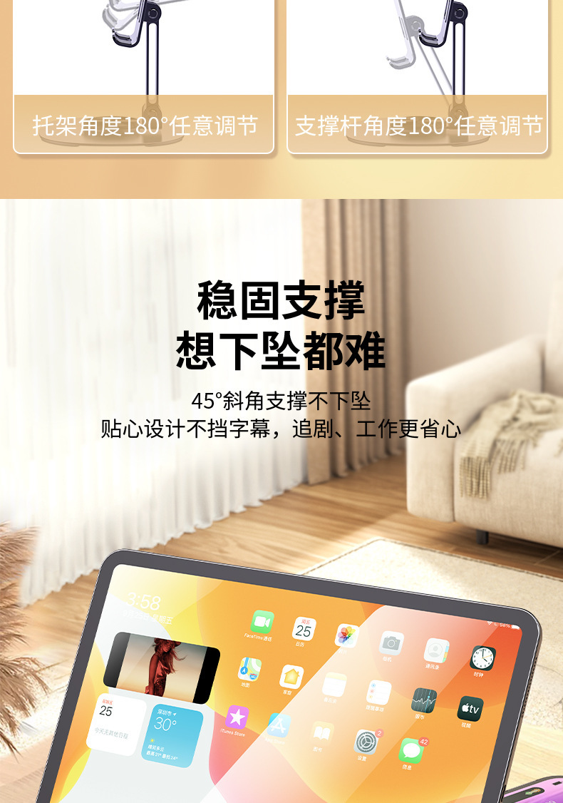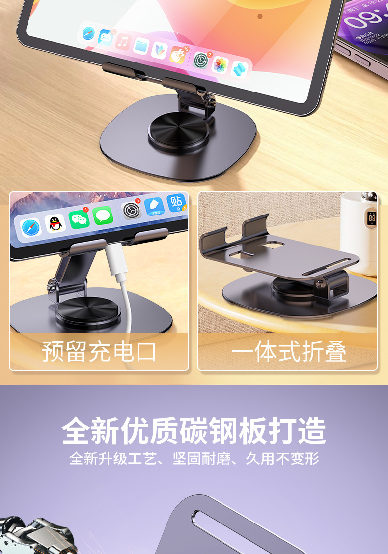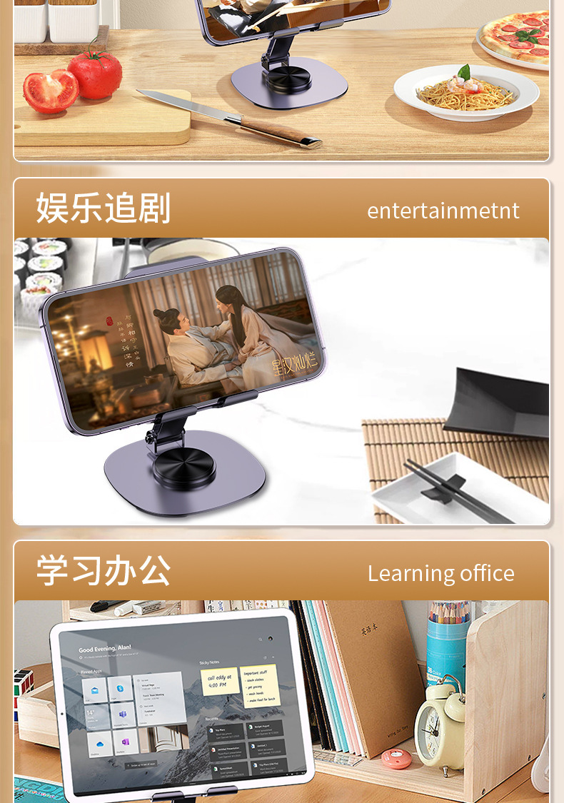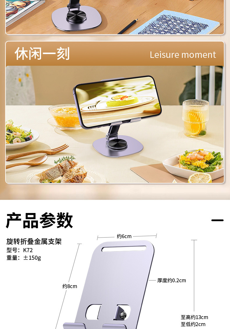 모든 금속 휴대 전화 브래킷 360 ° 회전 휴대 전화 브래킷 게으른 촬영 지원 브래킷 보편적 인 제기 및 접힐 수 있습니다