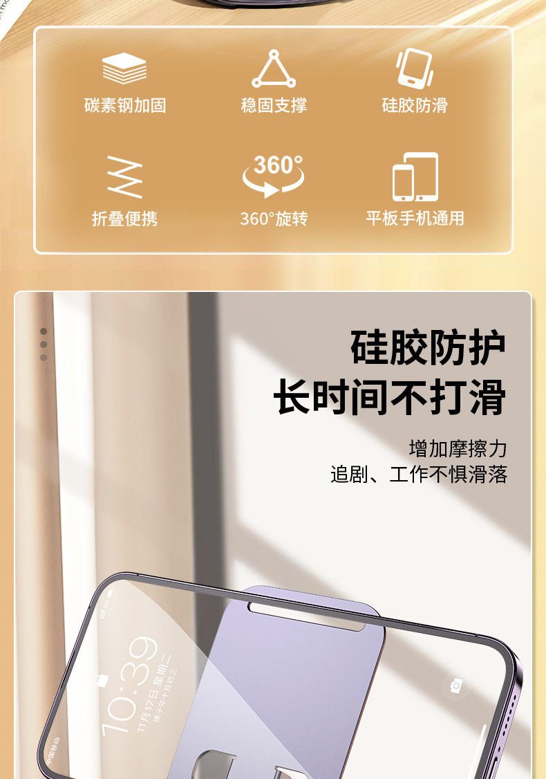 모든 금속 휴대 전화 브래킷 360 ° 회전 휴대 전화 브래킷 게으른 촬영 지원 브래킷 보편적 인 제기 및 접힐 수 있습니다스토어 가기