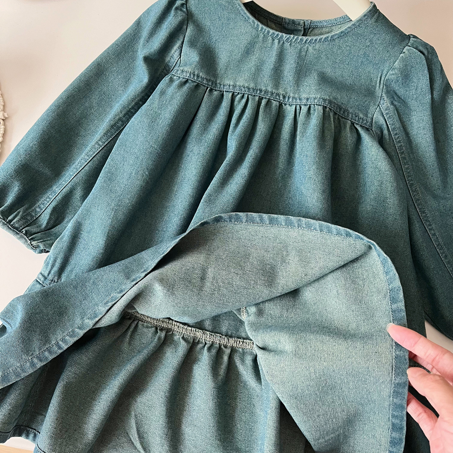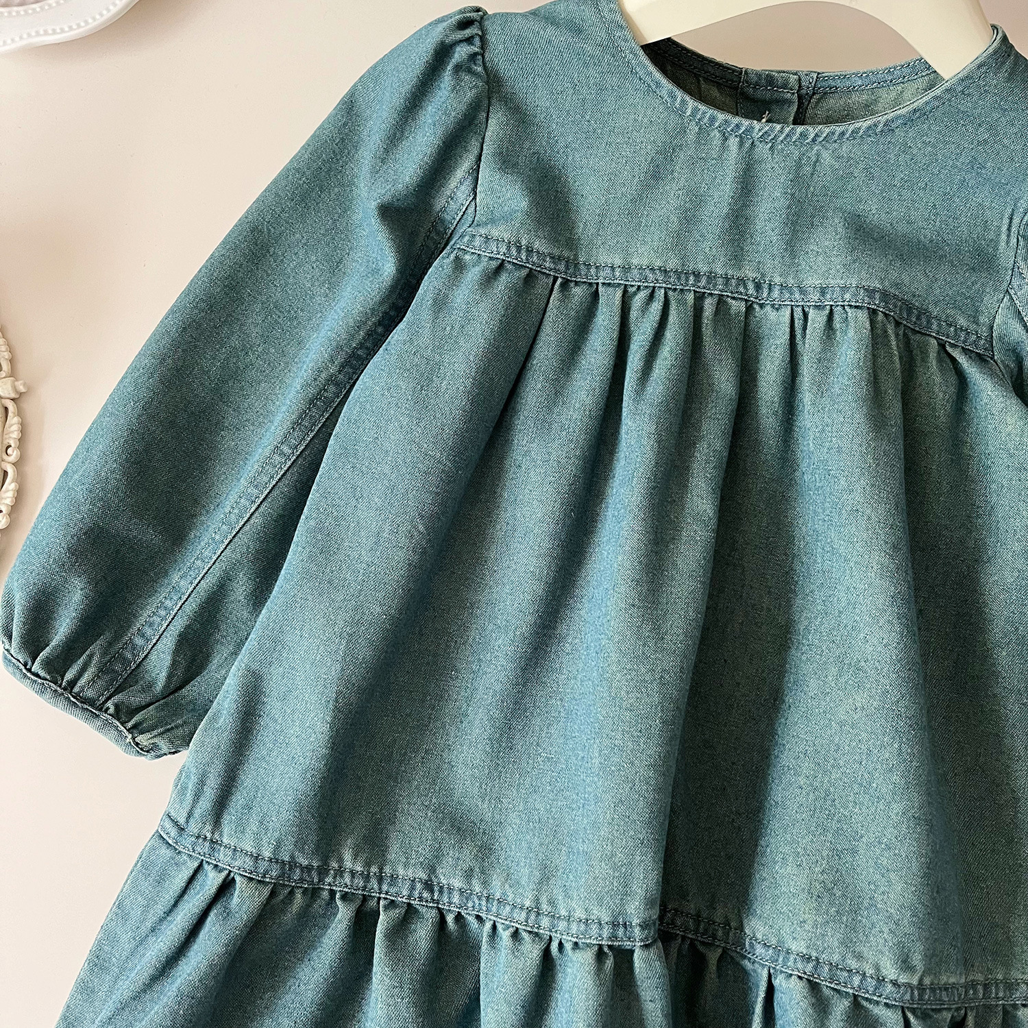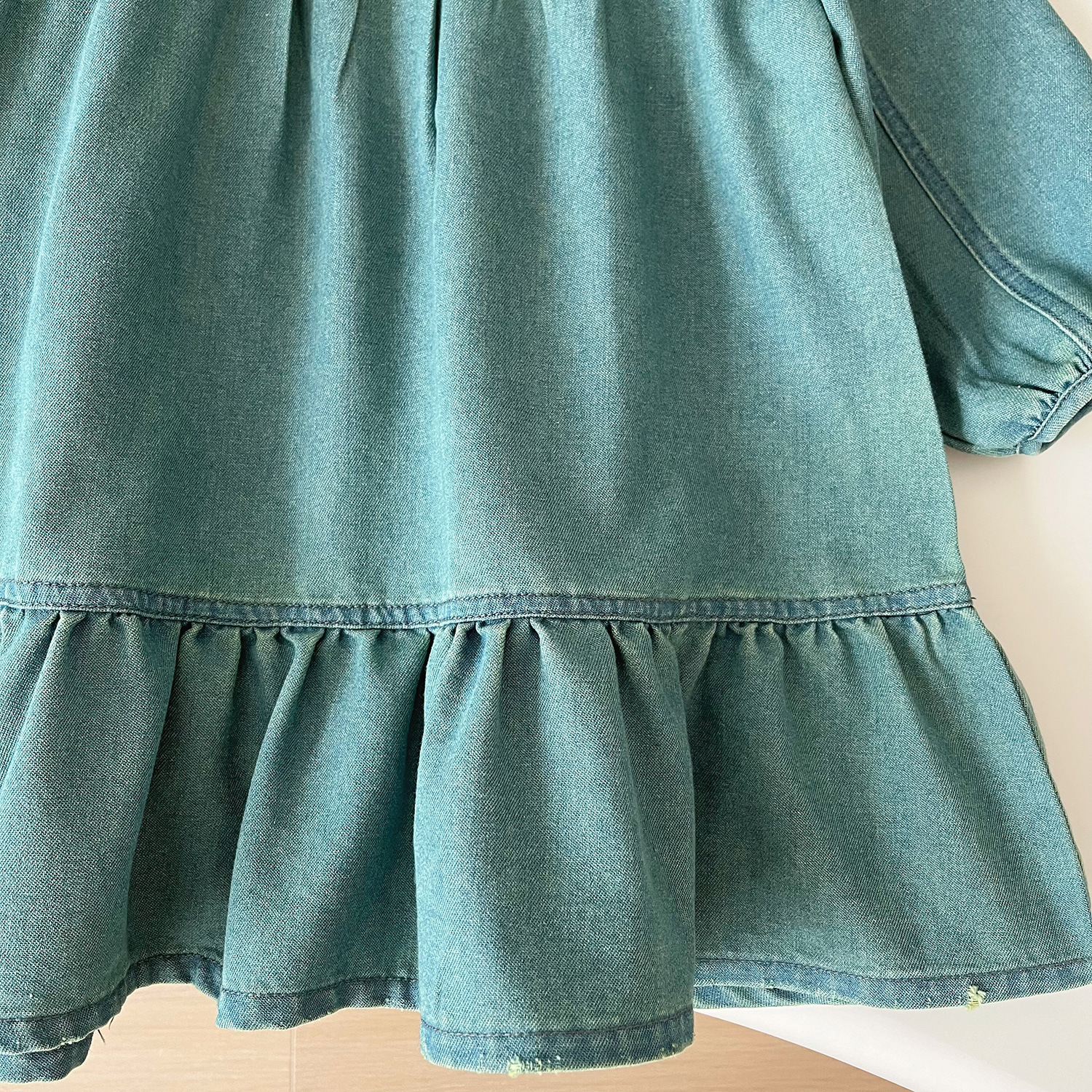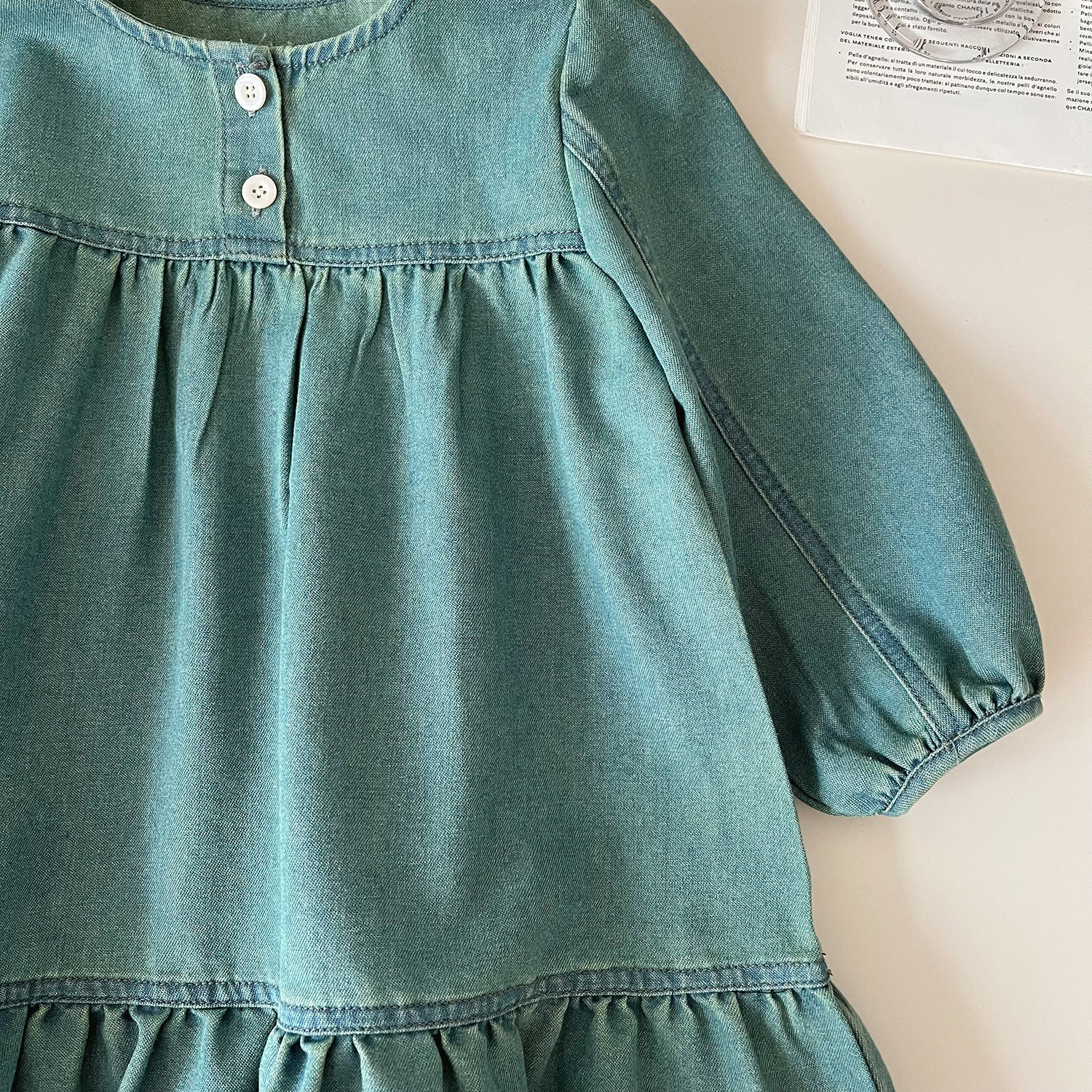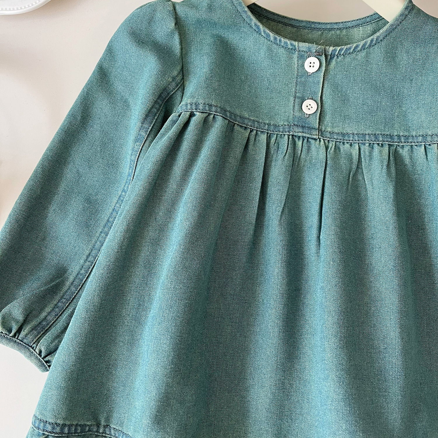 2024 가을 새로운 한국 소녀 데님 단색 원피스 아기 긴팔 가을 아기 치마 아동복 도매스토어 가기