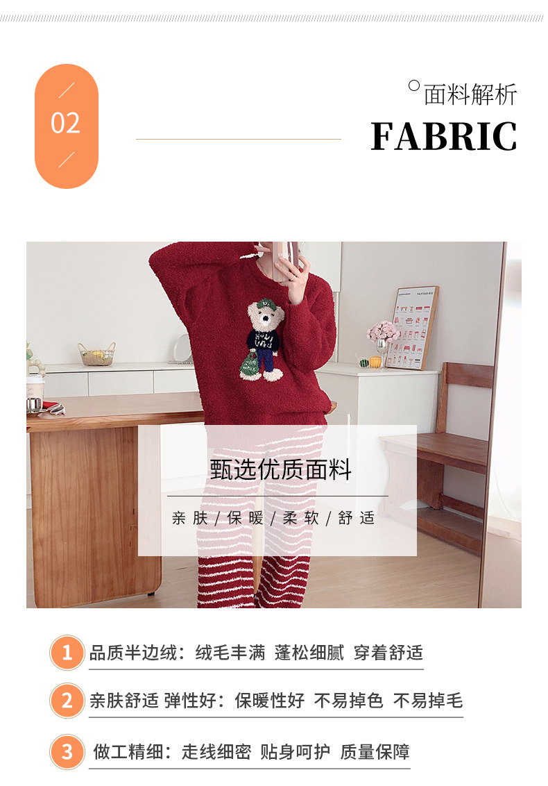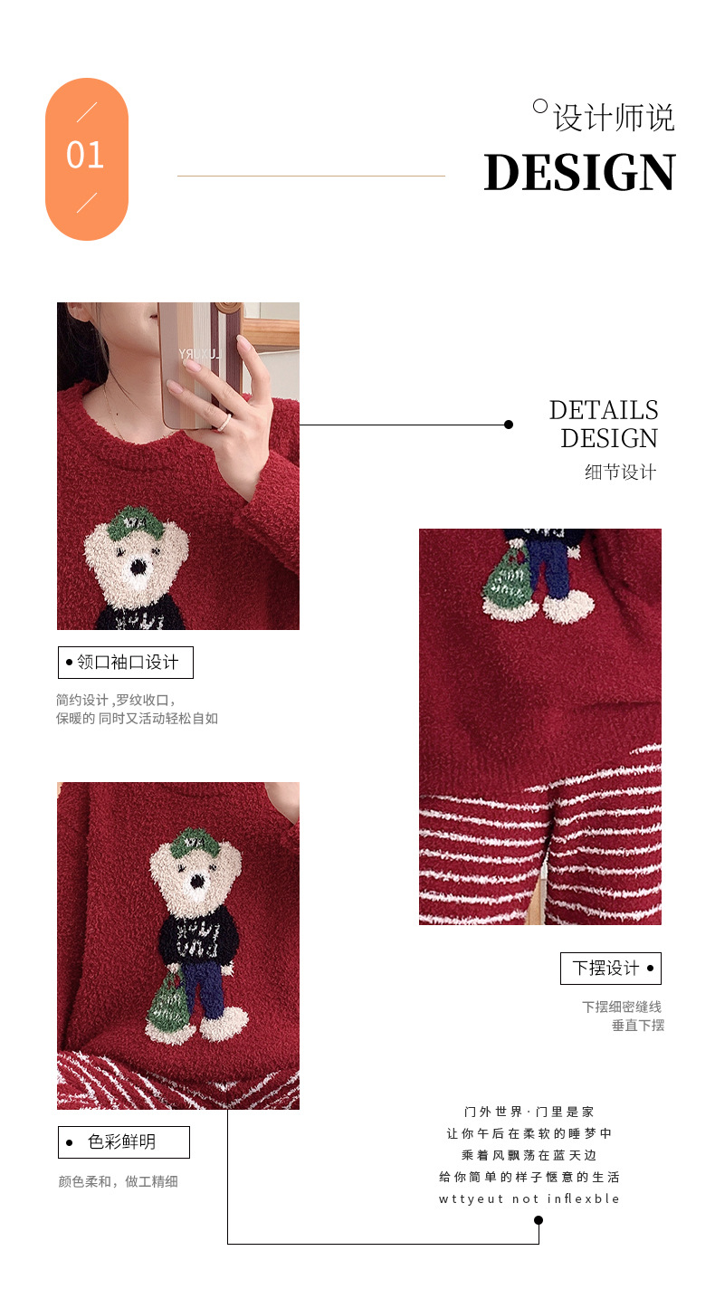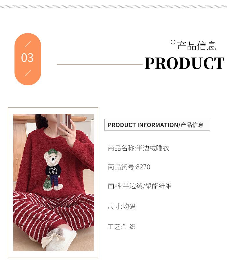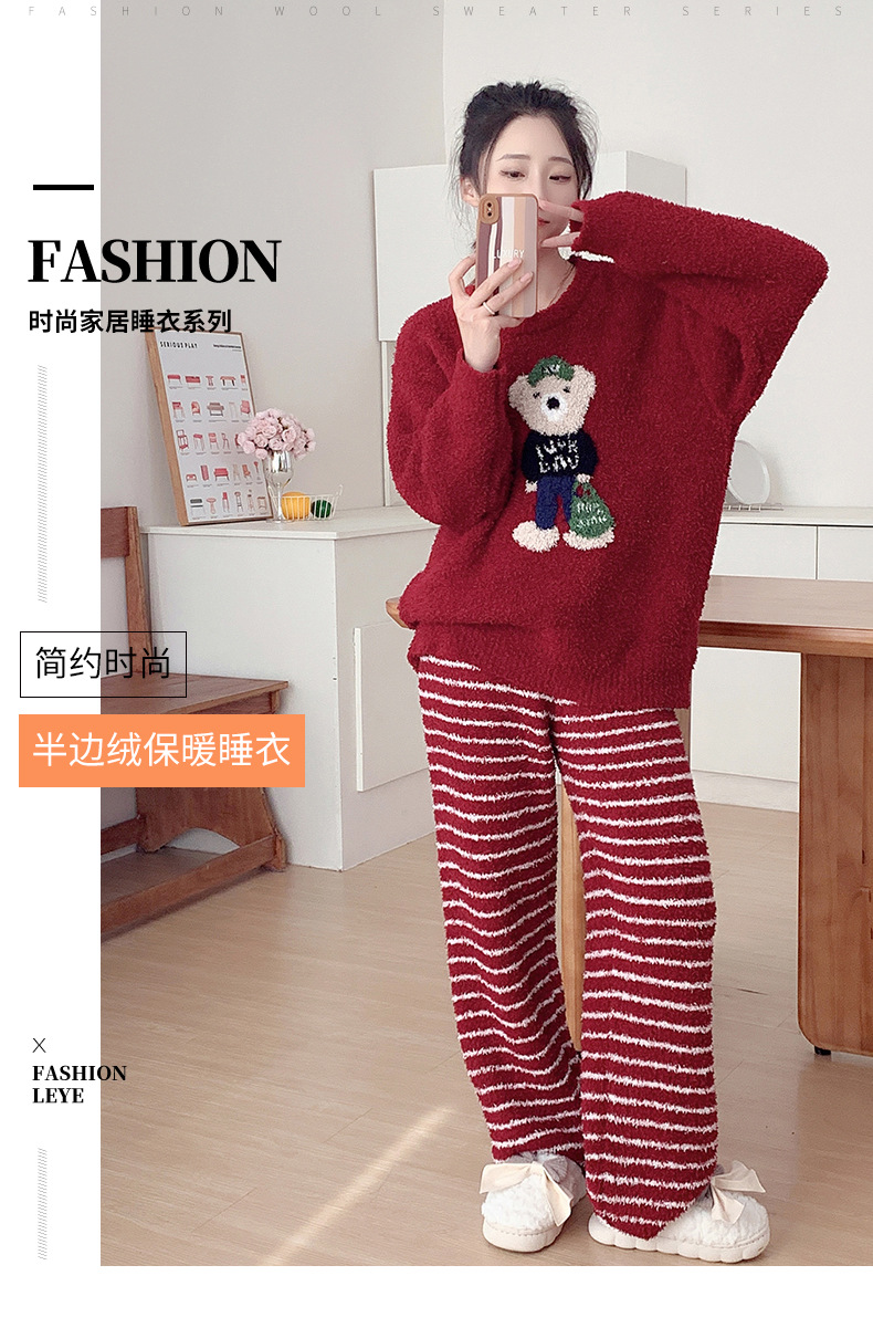 겨울 만화 곰 캐주얼 홈 의류 세트 여성용 느슨한 기모 두꺼운 반쪽 벨벳 따뜻한 파자마