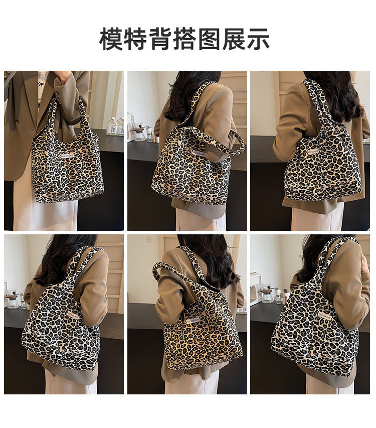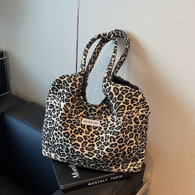 레오파드 프린트 가방 여성용 대용량 2025 신상 가을 겨울 캐주얼 숄더백 고급스러운 만화 통근용 토트백스토어 가기