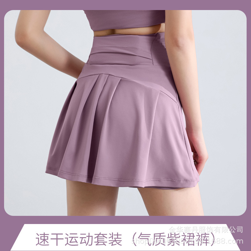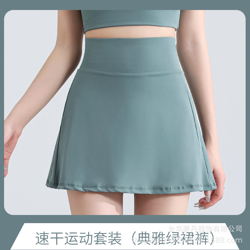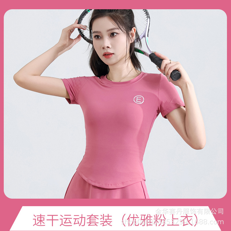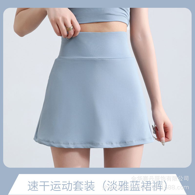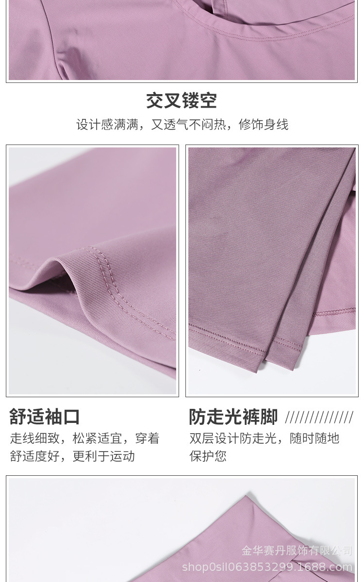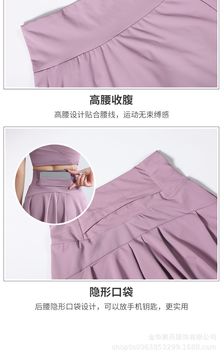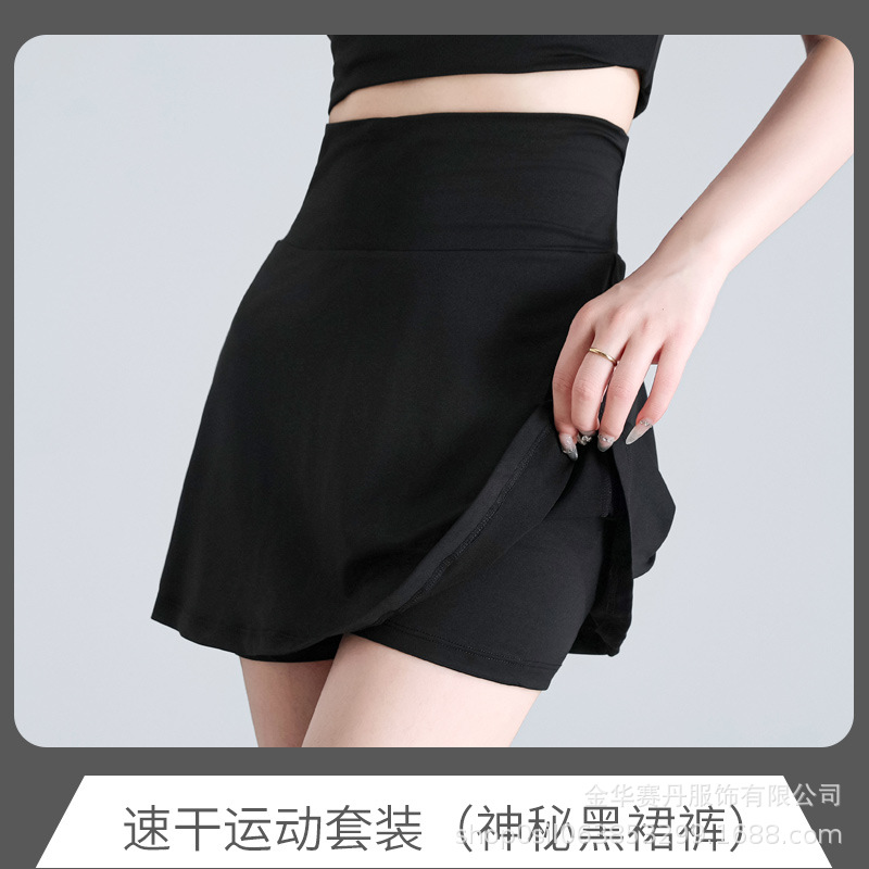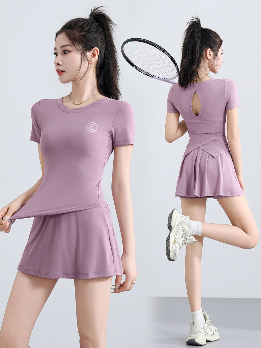 필라테스 섹시 슬림 스포츠 요가 슈트 노출 방지 페이크 투피스 스커트 피트니스 슬리밍 아름다운 등 티셔츠