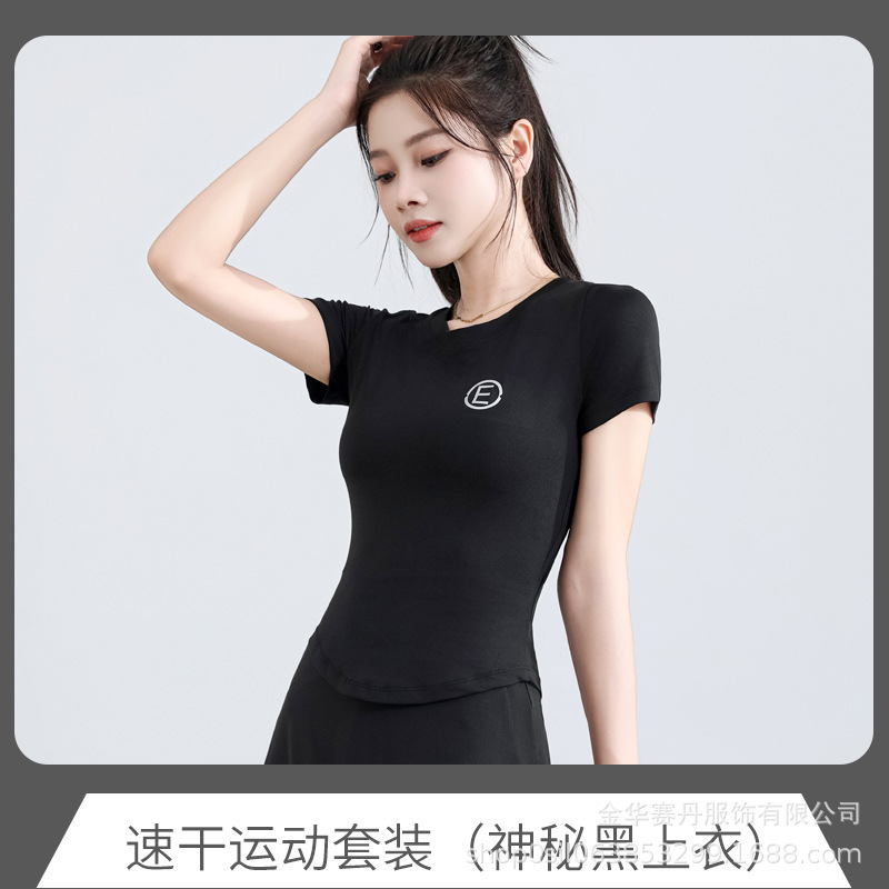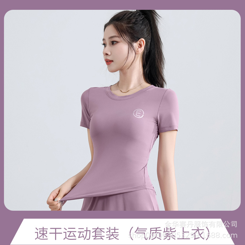 필라테스 섹시 슬림 스포츠 요가 슈트 노출 방지 페이크 투피스 스커트 피트니스 슬리밍 아름다운 등 티셔츠스토어 가기