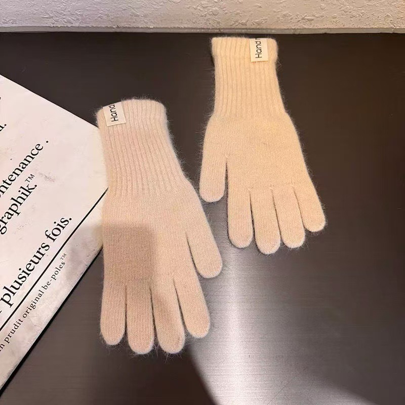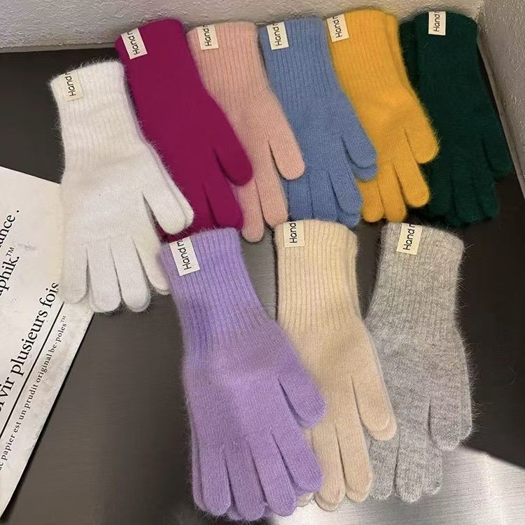 Ins 캔디 컬러 긴 토끼 모피 장갑 겨울 여성 한국 스타일 니트 단색 두꺼운 따뜻한 방한 라이딩 5 손가락