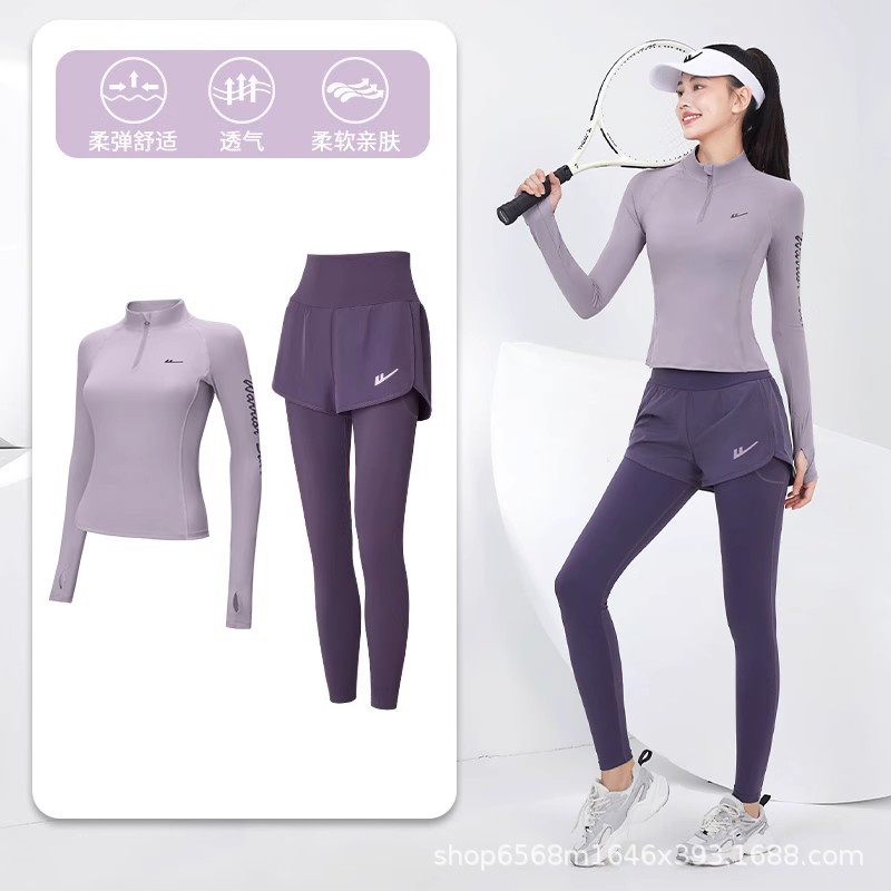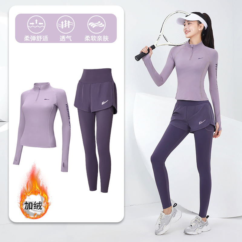 Huili 달리기 스포츠 여성 세트 전문 아침 달리기 의류 요가 의류 슬림 피트니스 재킷 가을 겨울 훈련 의류 도매
