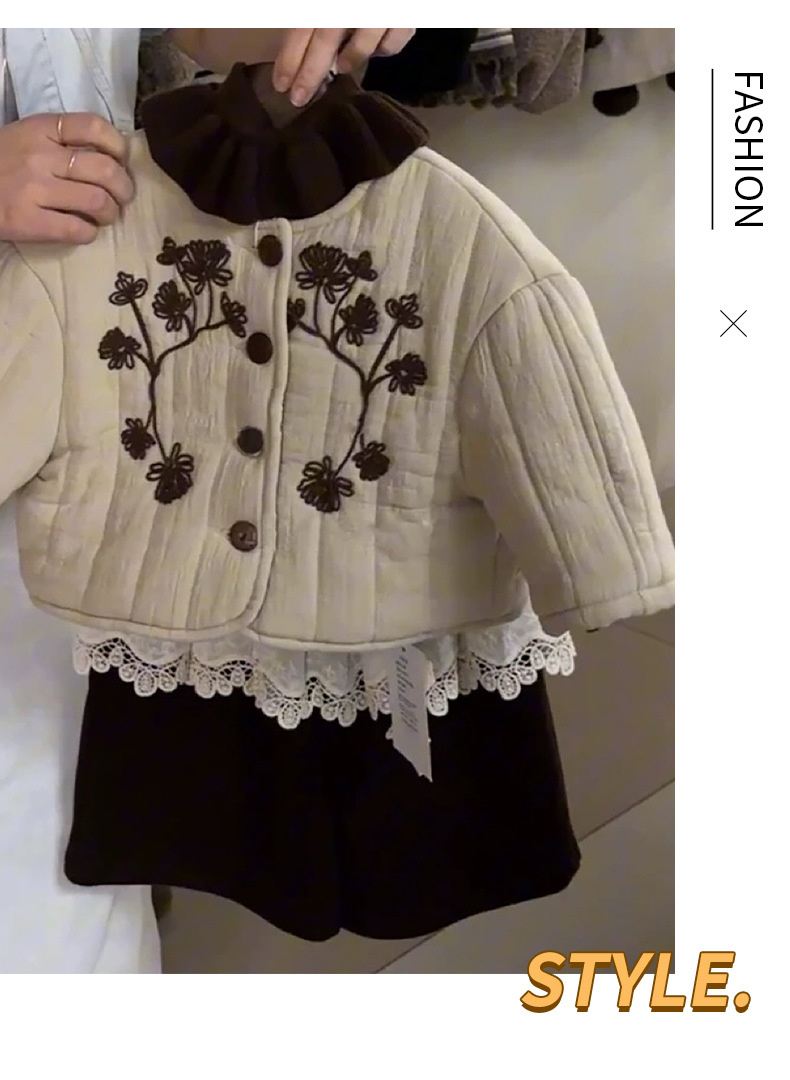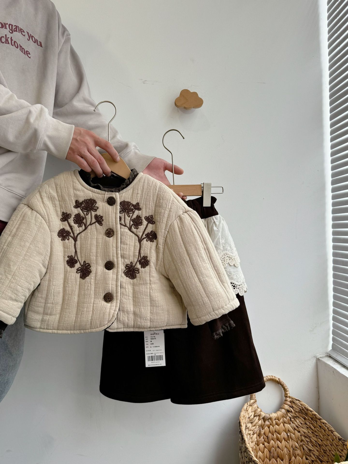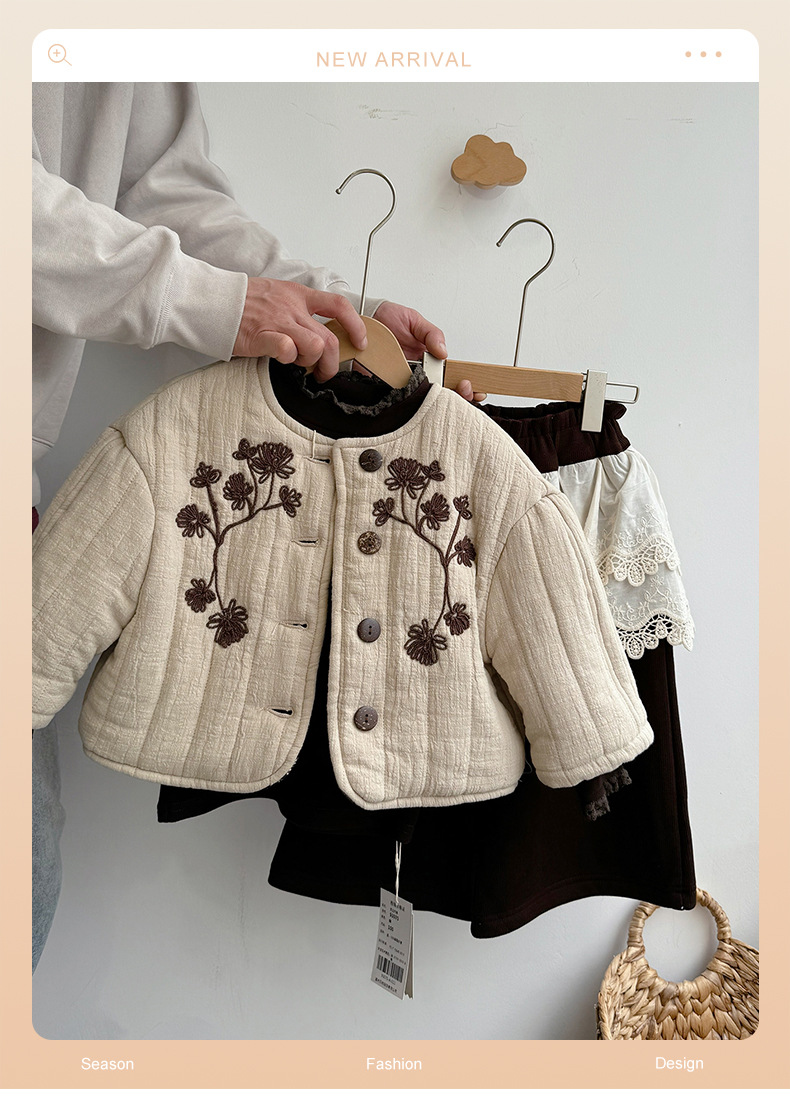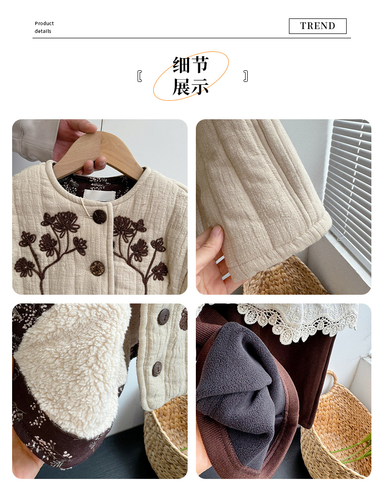 木子佧女童外套小香风25秋冬款女孩加绒防风外衣女宝时髦保暖棉服