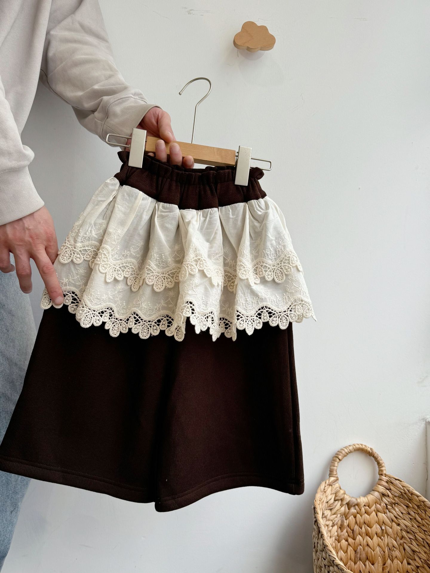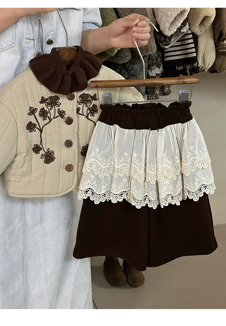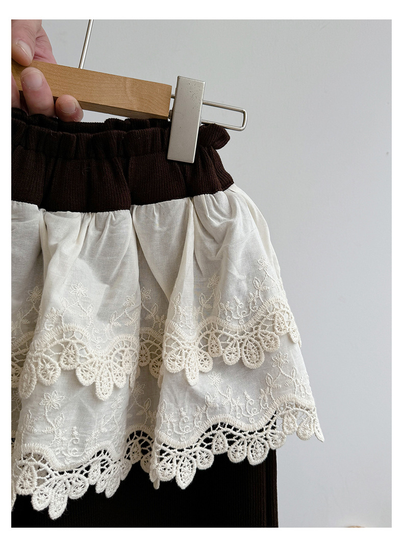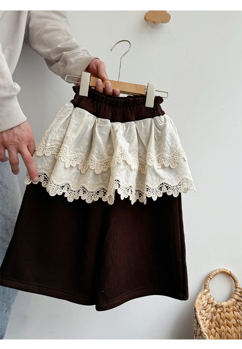 2025秋季中大女童拼接蕾丝花边牛仔裤中裤长裤设计感喇叭裤阔腿裤
