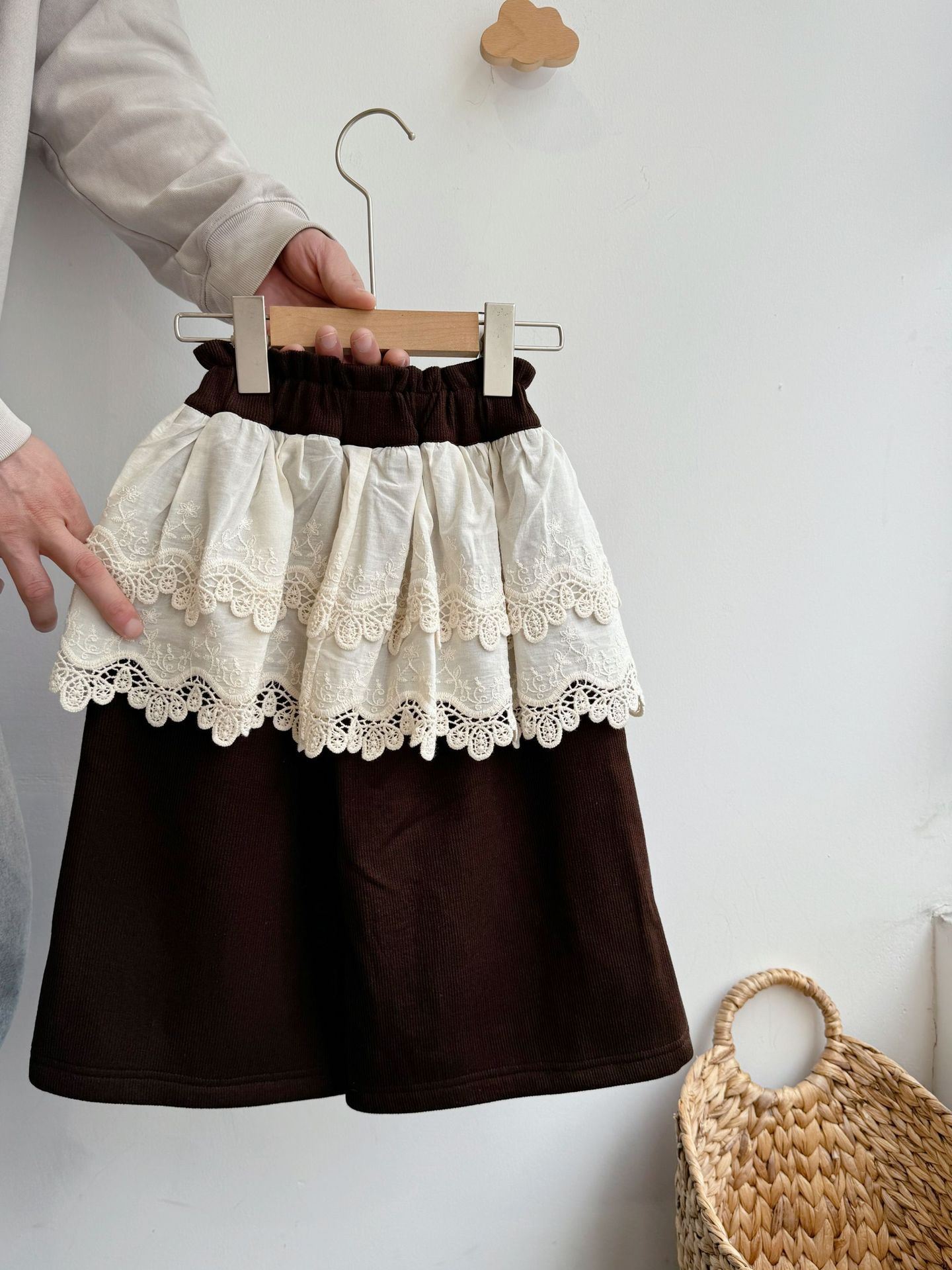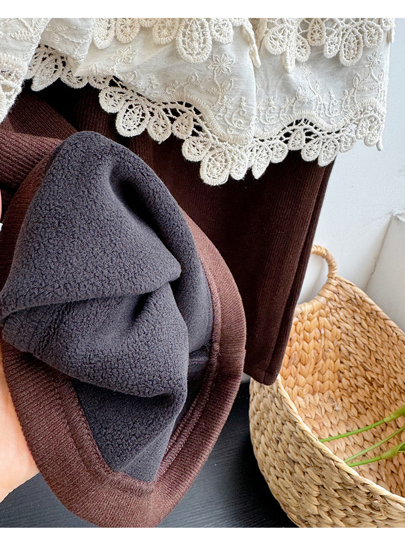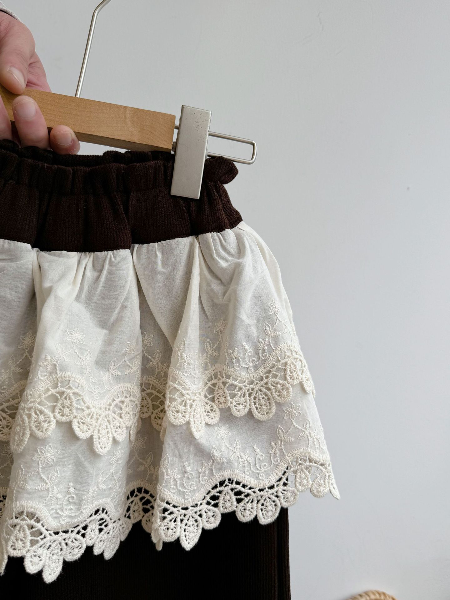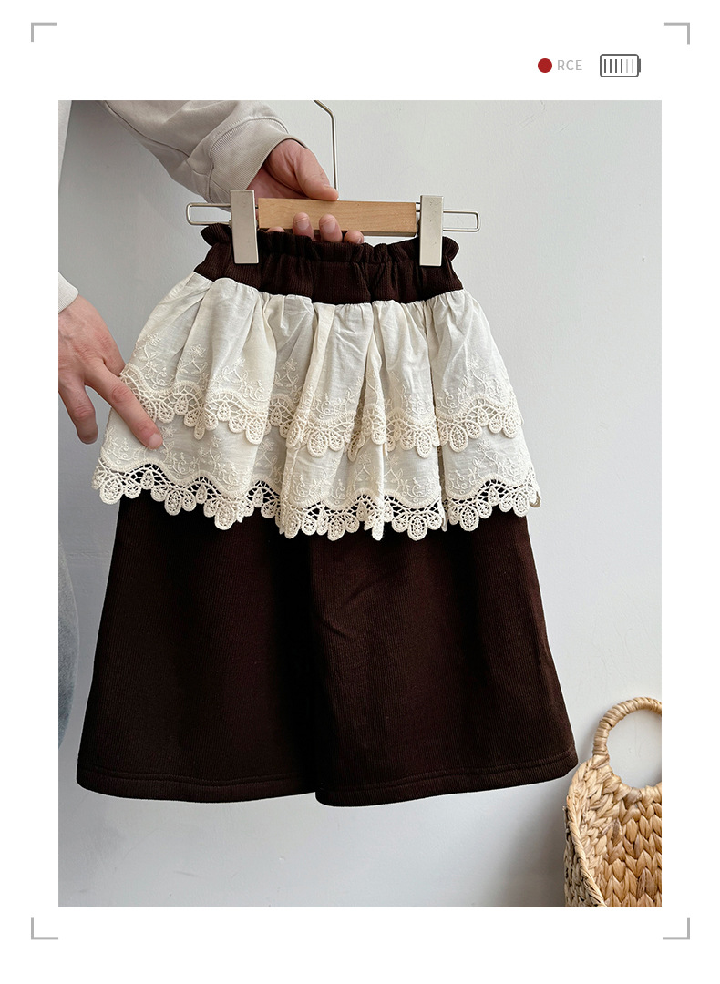 2025秋季中大女童拼接蕾丝花边牛仔裤中裤长裤设计感喇叭裤阔腿裤