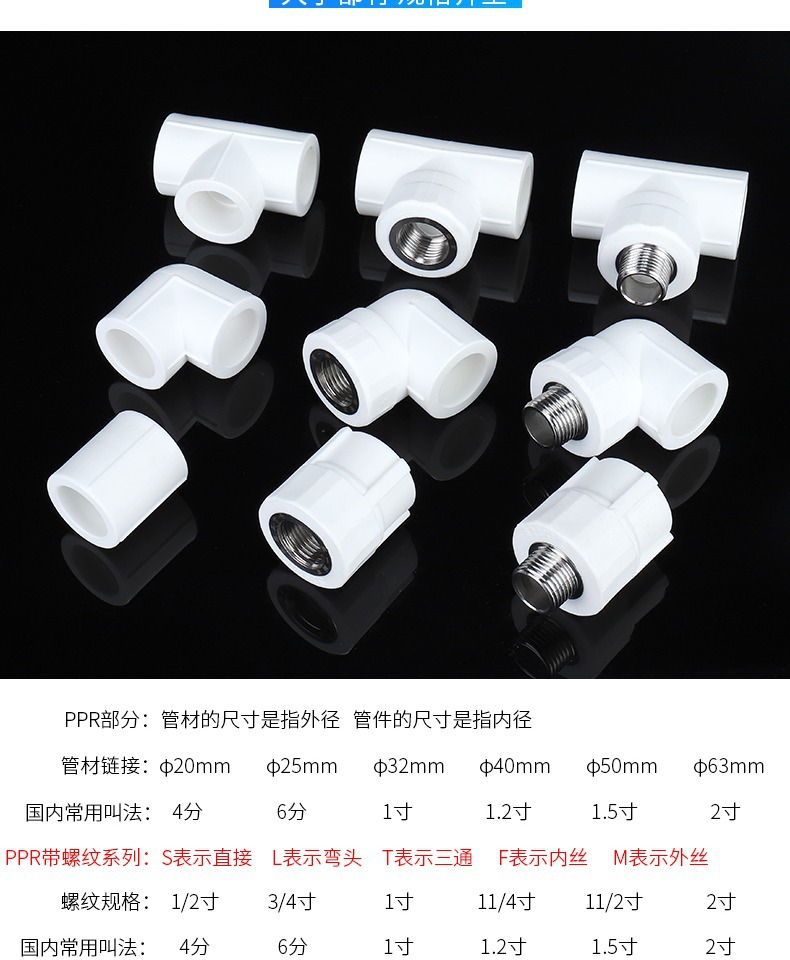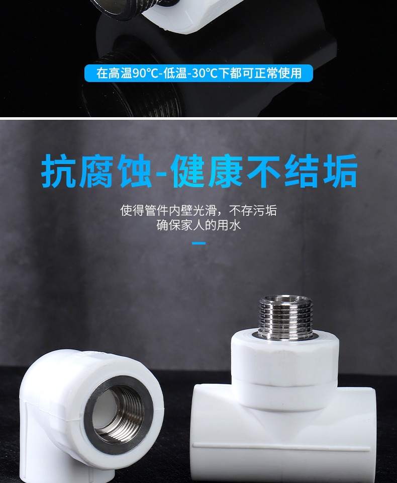 Ppr 수도관 조인트 피팅 4 점 20 직접 팔꿈치 티 6 점 외부 와이어 내부 와이어 두꺼운 가정용 핫멜트 파이프