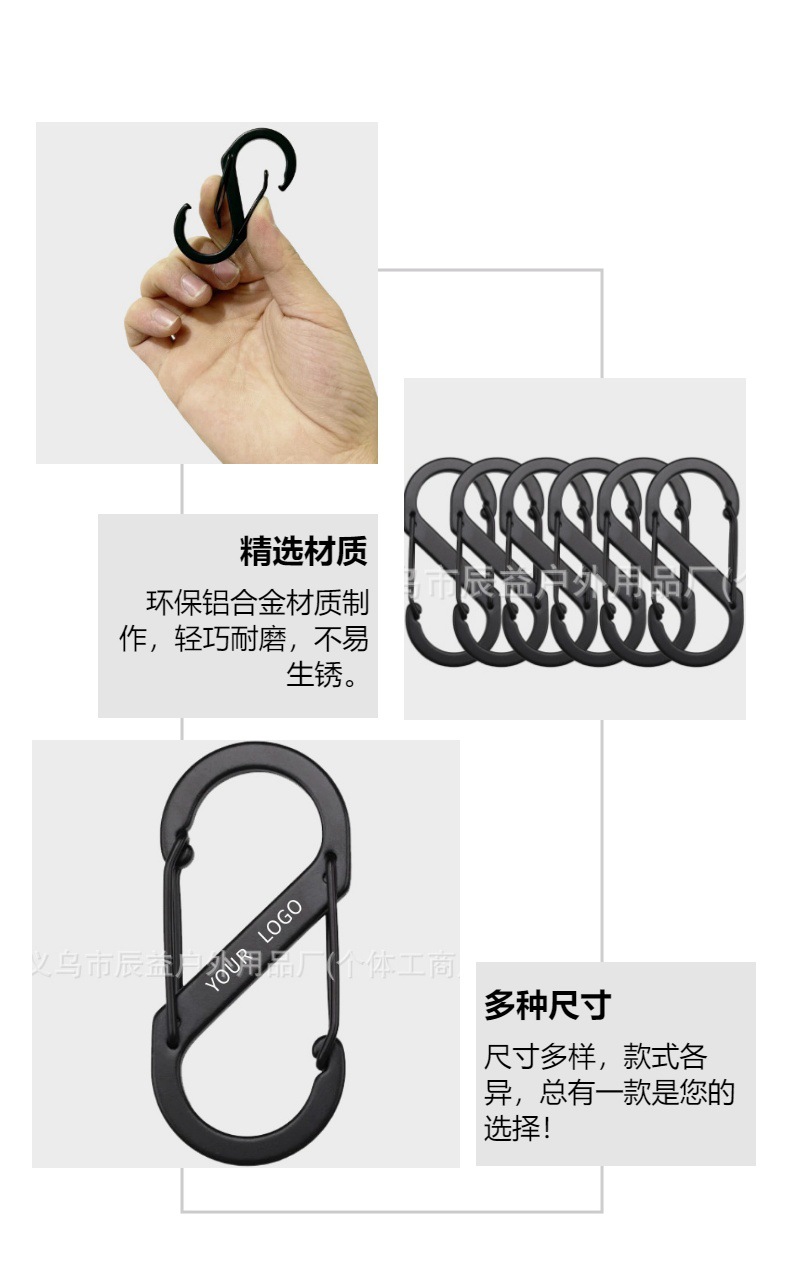 전기 영동 모든 블랙 S 형 알루미늄 합금 등산 버클 야외 8 자형 버클 백팩 교수형 키 체인 스프링 더블 헤드 교수형 버클스토어 가기