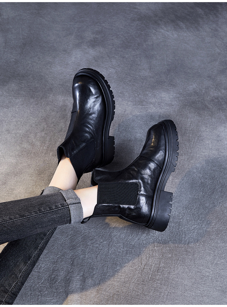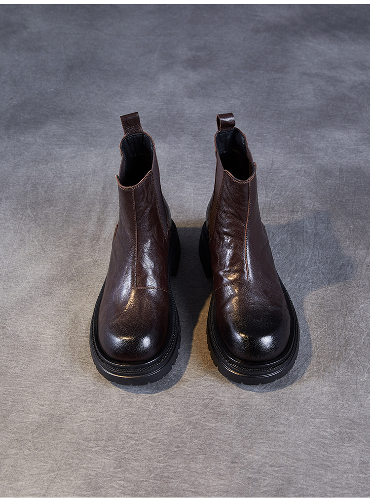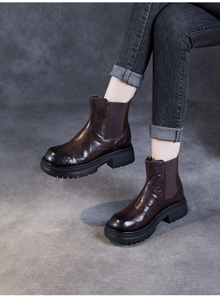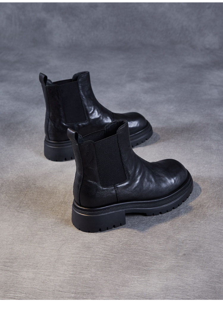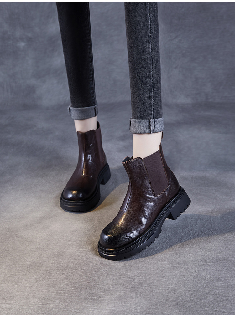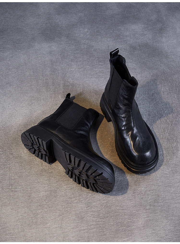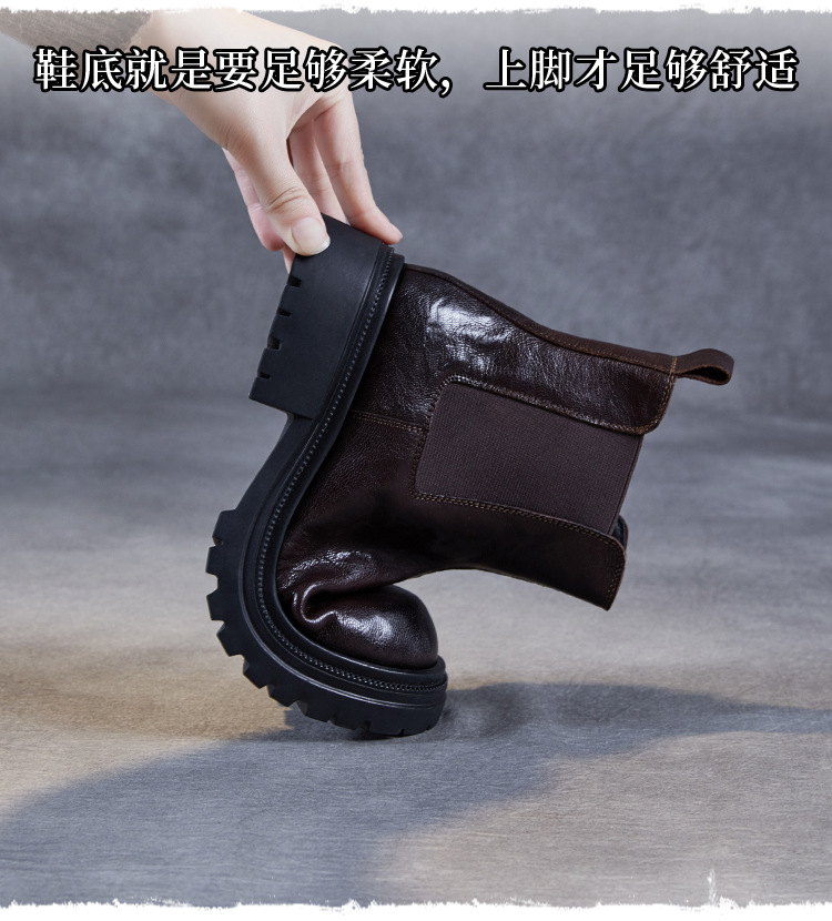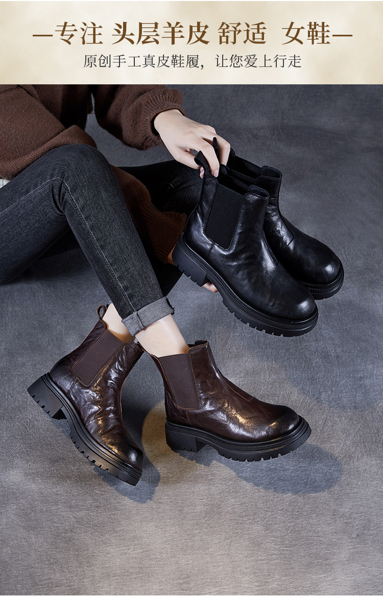 손으로 만든 양가죽 두꺼운 밑창 마틴 부츠 여성용 25 가을 겨울 플러스 벨벳 숏부츠 천연 가죽 첼시 부츠 소형 발목 부츠