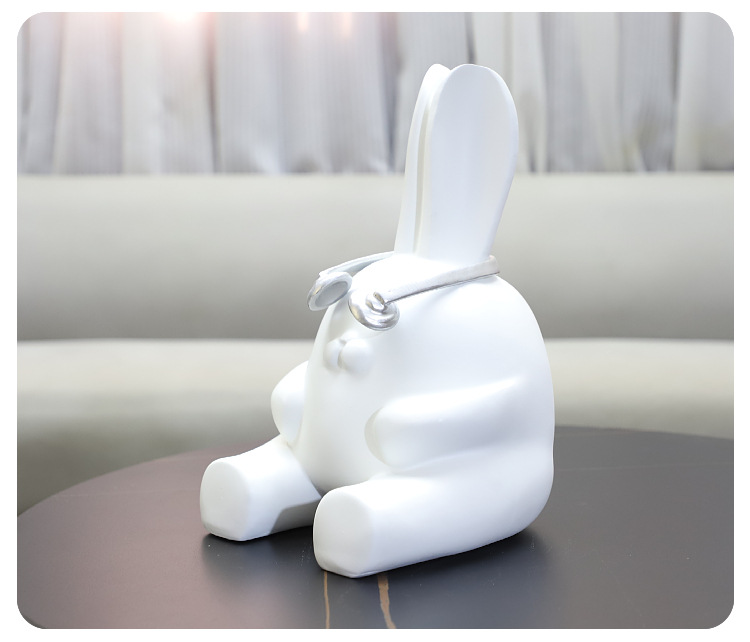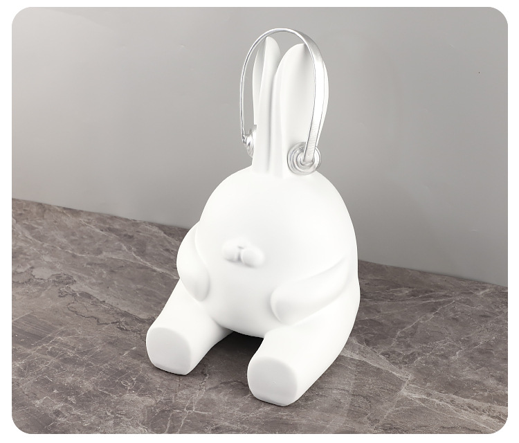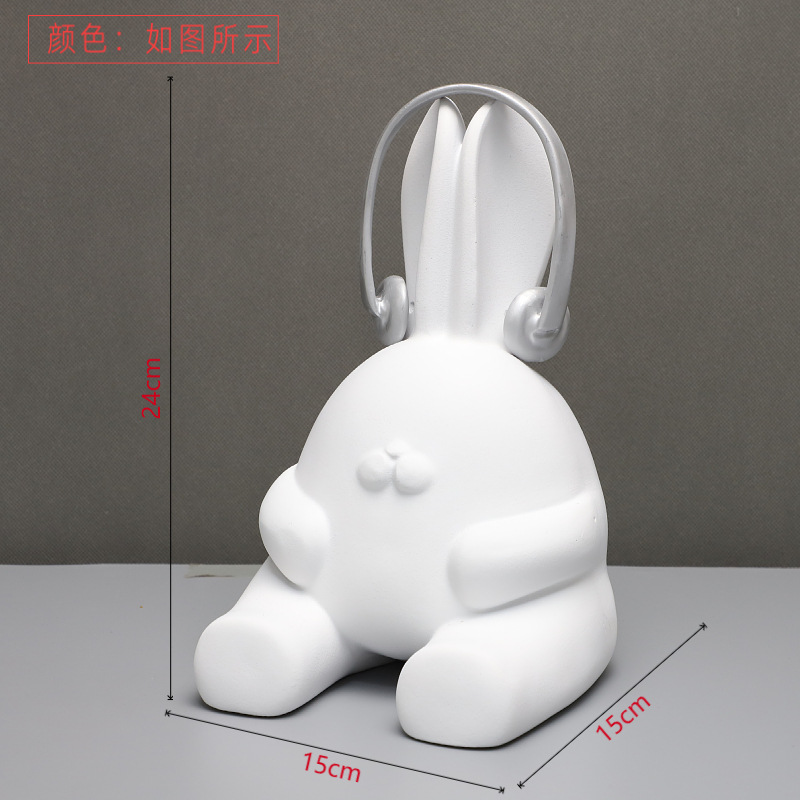 북유럽 창조적 인 만화 수지 긴 귀 이어폰 토끼 동물 조각 장식품 입구 어린이 방 홈 장식