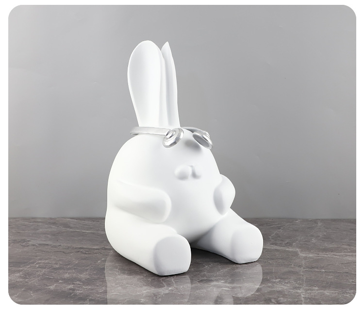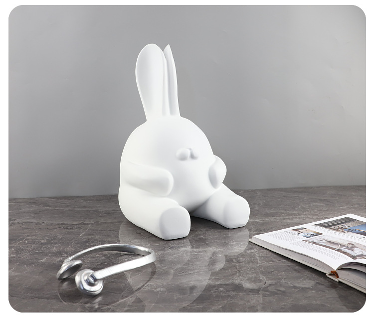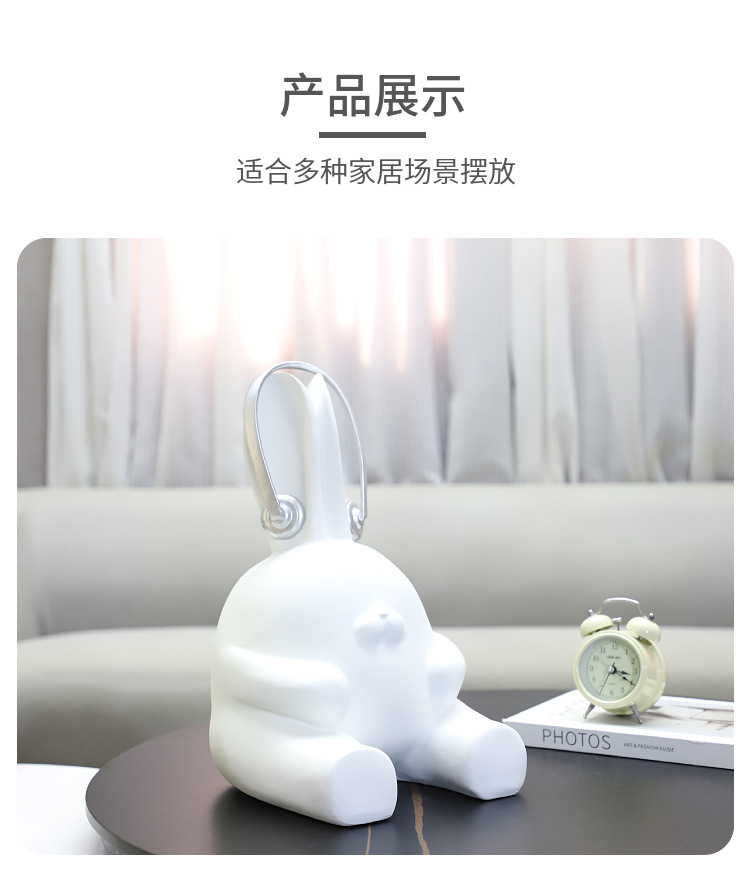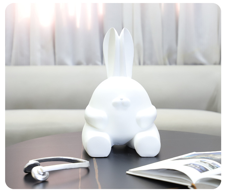 북유럽 창조적 인 만화 수지 긴 귀 이어폰 토끼 동물 조각 장식품 입구 어린이 방 홈 장식스토어 가기