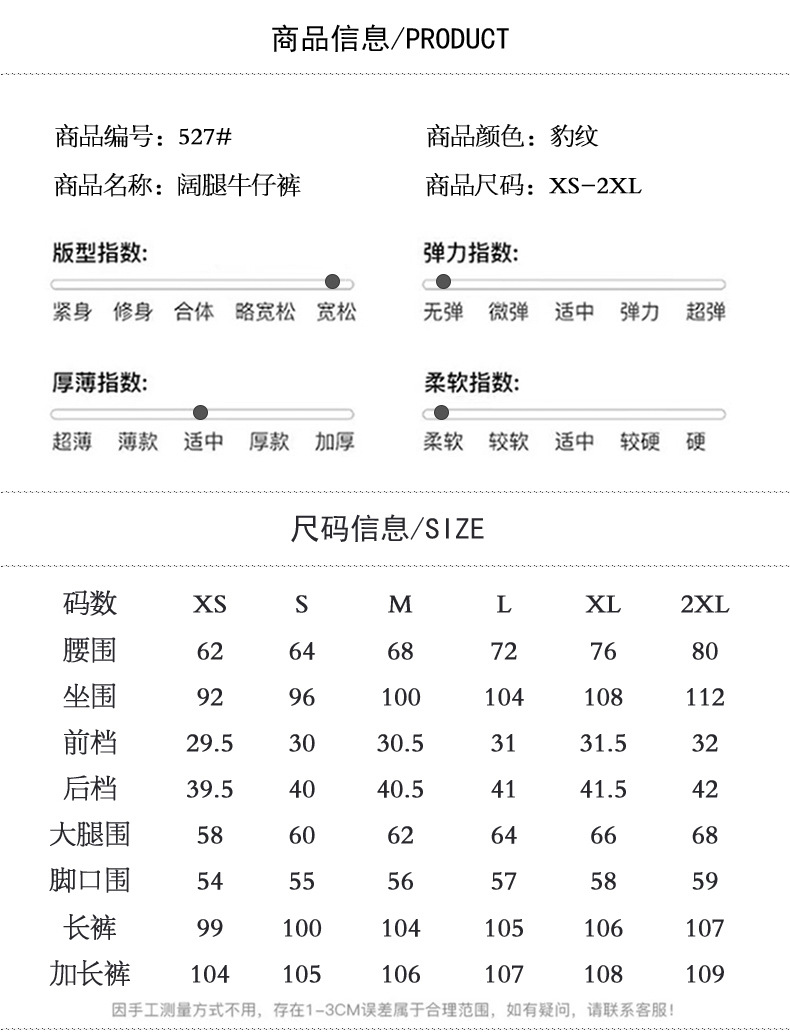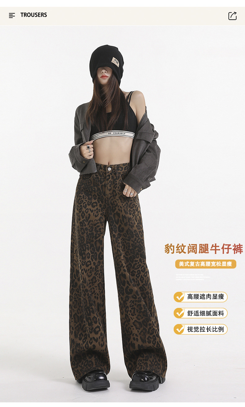 Jiajun Xintang 여성 의류 미국 스타일 빈티지 스파이스 소녀 레오파드 무늬 느슨한 넓은 다리 바지 틈새 캐주얼 와이드 다리 스트레이트 데님스토어 가기