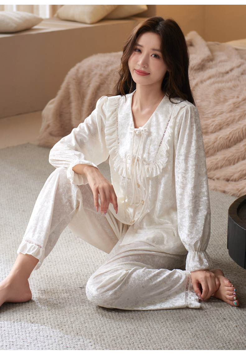 골드 벨벳 긴팔 잠옷 여성용 2025 신상 달콤한 공주 스타일 고급스러운 캐주얼 한국 스타일 골드 다이아몬드 벨벳 홈웨어스토어 가기