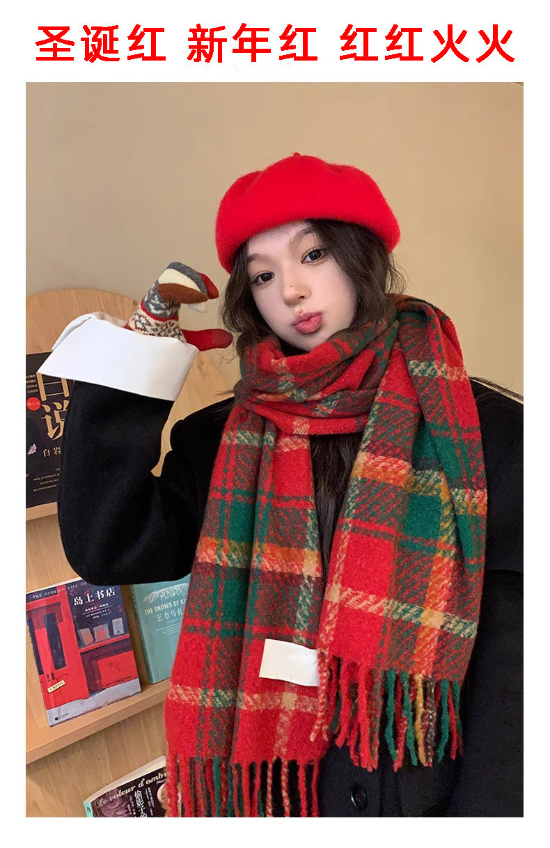 크리스마스 설날 빨간 격자 무늬 스카프 여자 겨울 2024 새로운 올매치 따뜻한 한국 스타일 스카프 유행