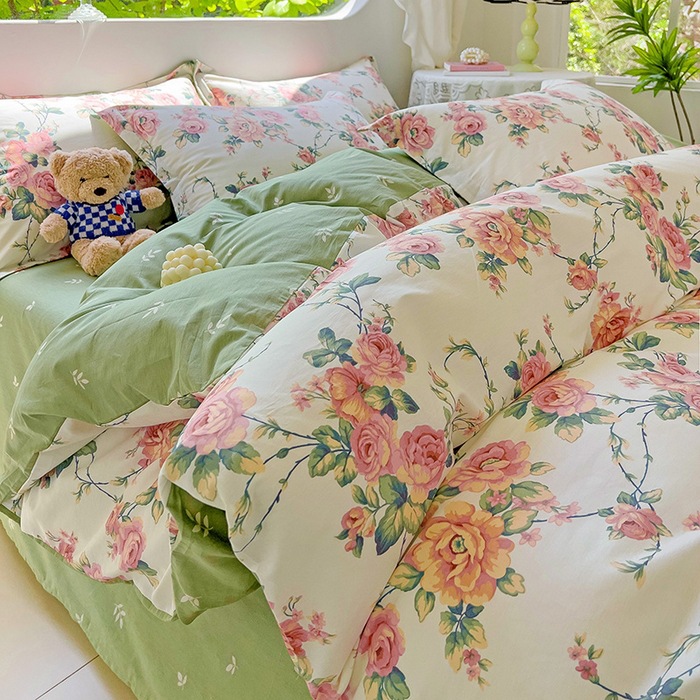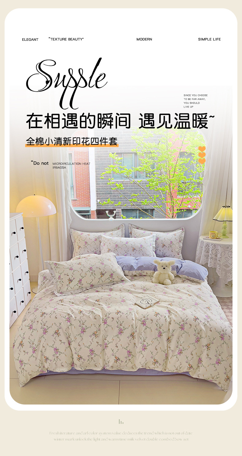 2024 새로운 라이브 폭발 면화 인쇄 시리즈 4 피스 면 3 피스 세트
