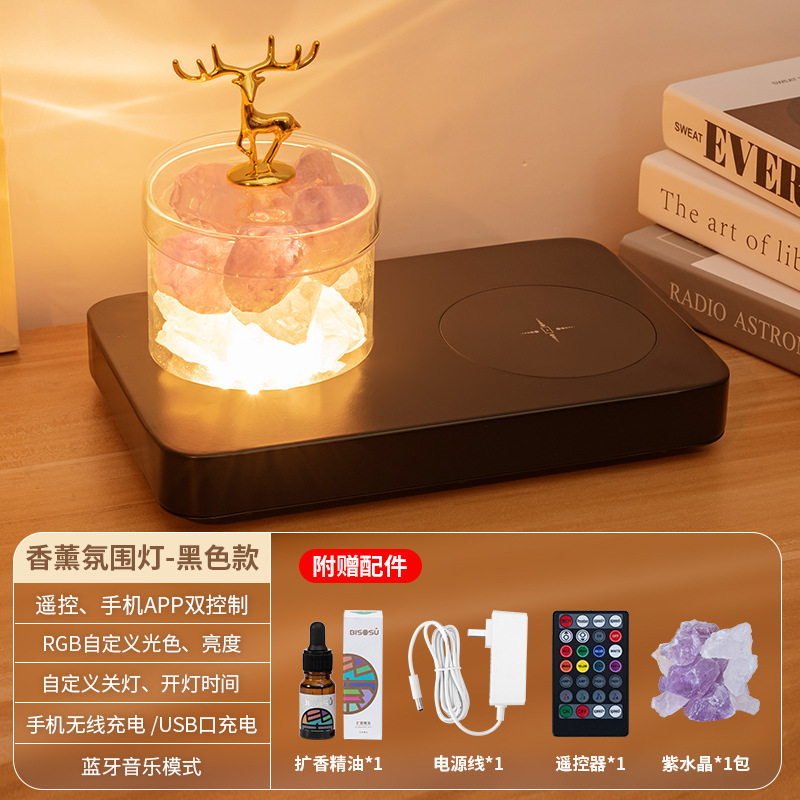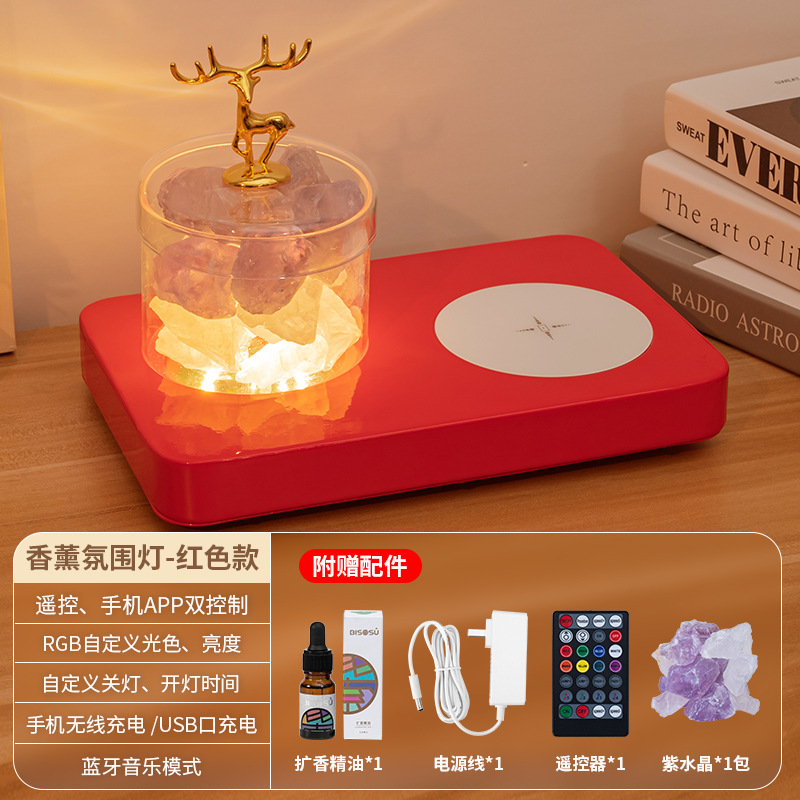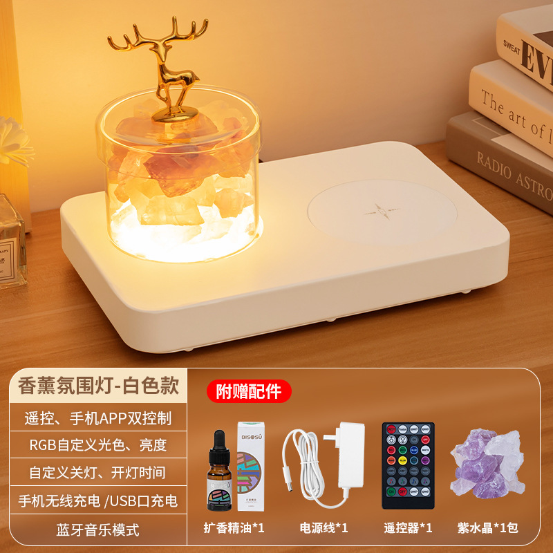 국경 간 개인 모델 분위기 아로마 테라피 야간 조명 선물 다채로운 RGB 휴대 전화 APP 무선 충전 블루투스 스테레오