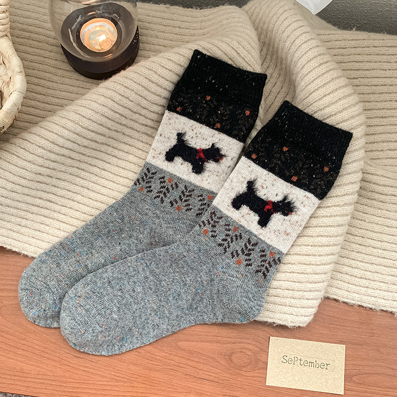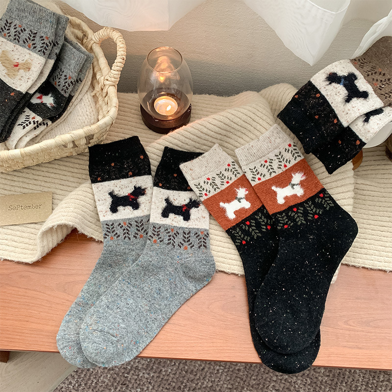 빈티지 민족 스타일 양모 양말 어린이 중간 튜브 양말 겨울 두꺼운 따뜻한 포인트 원사 귀여운 봉제 강아지 양말