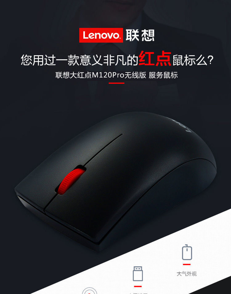 레노버 마우스 데스크탑 노트북 무선 마우스 빅 레드 포인트 M120pro 무선 마우스