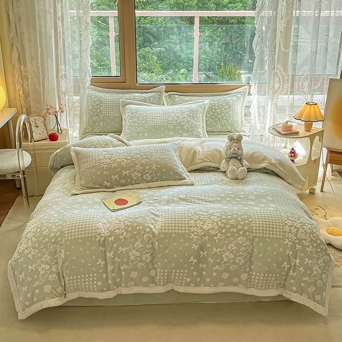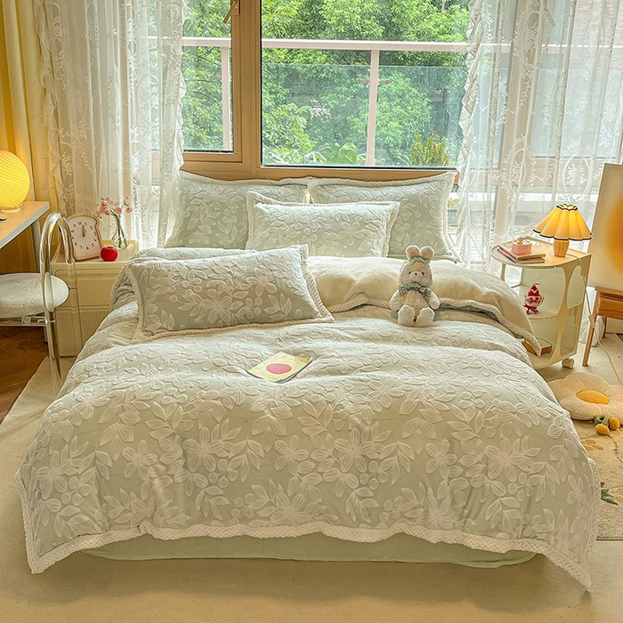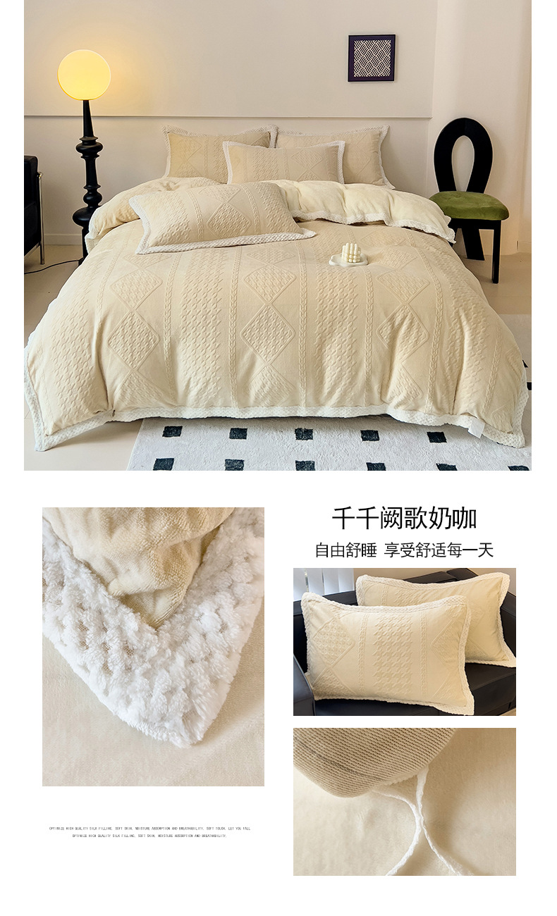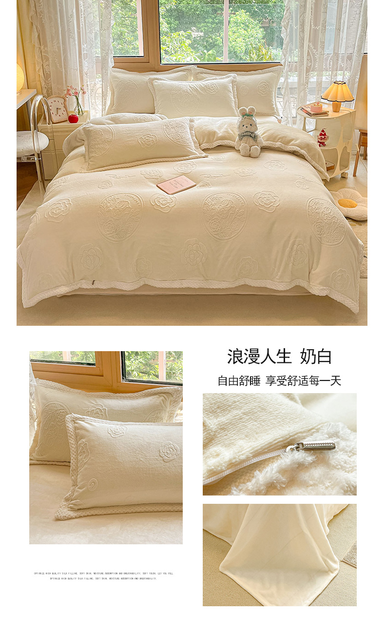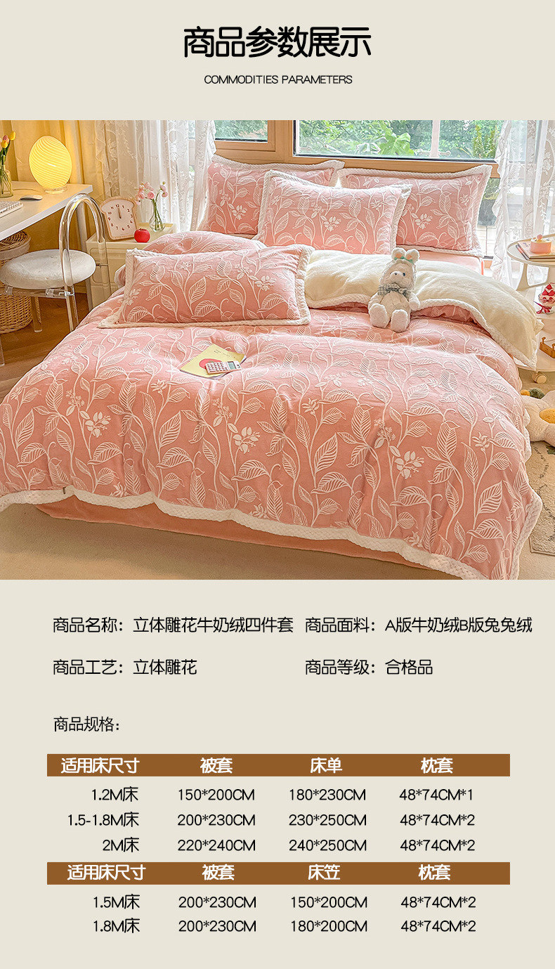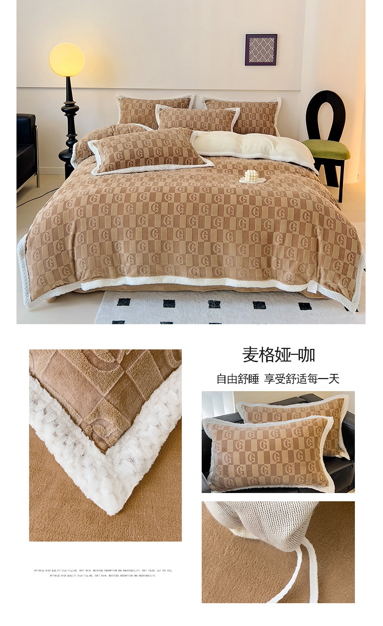 2024 새로운 간단한 테두리 풀 멸종 조각 우유 벨벳 토끼 벨벳 4 피스 세트스토어 가기