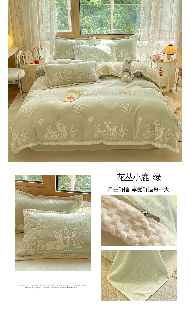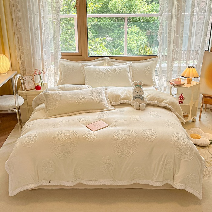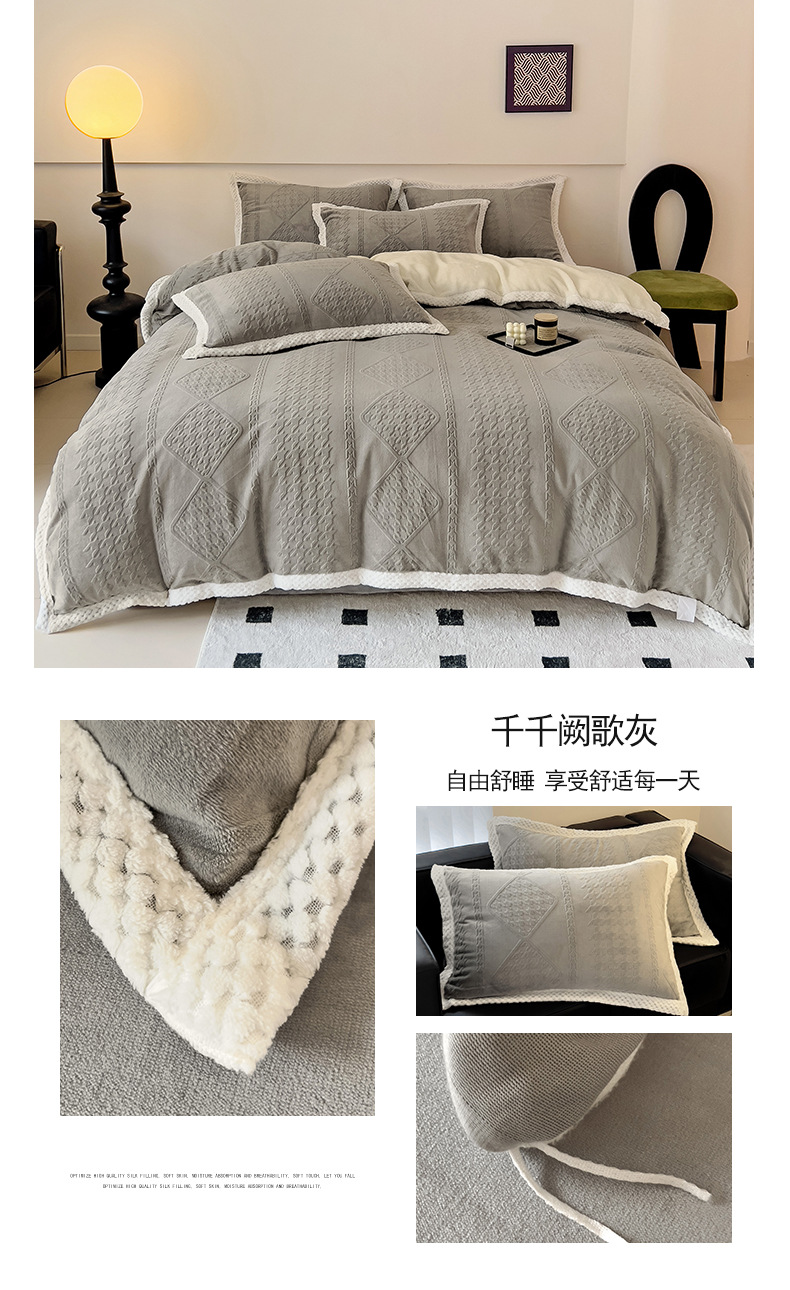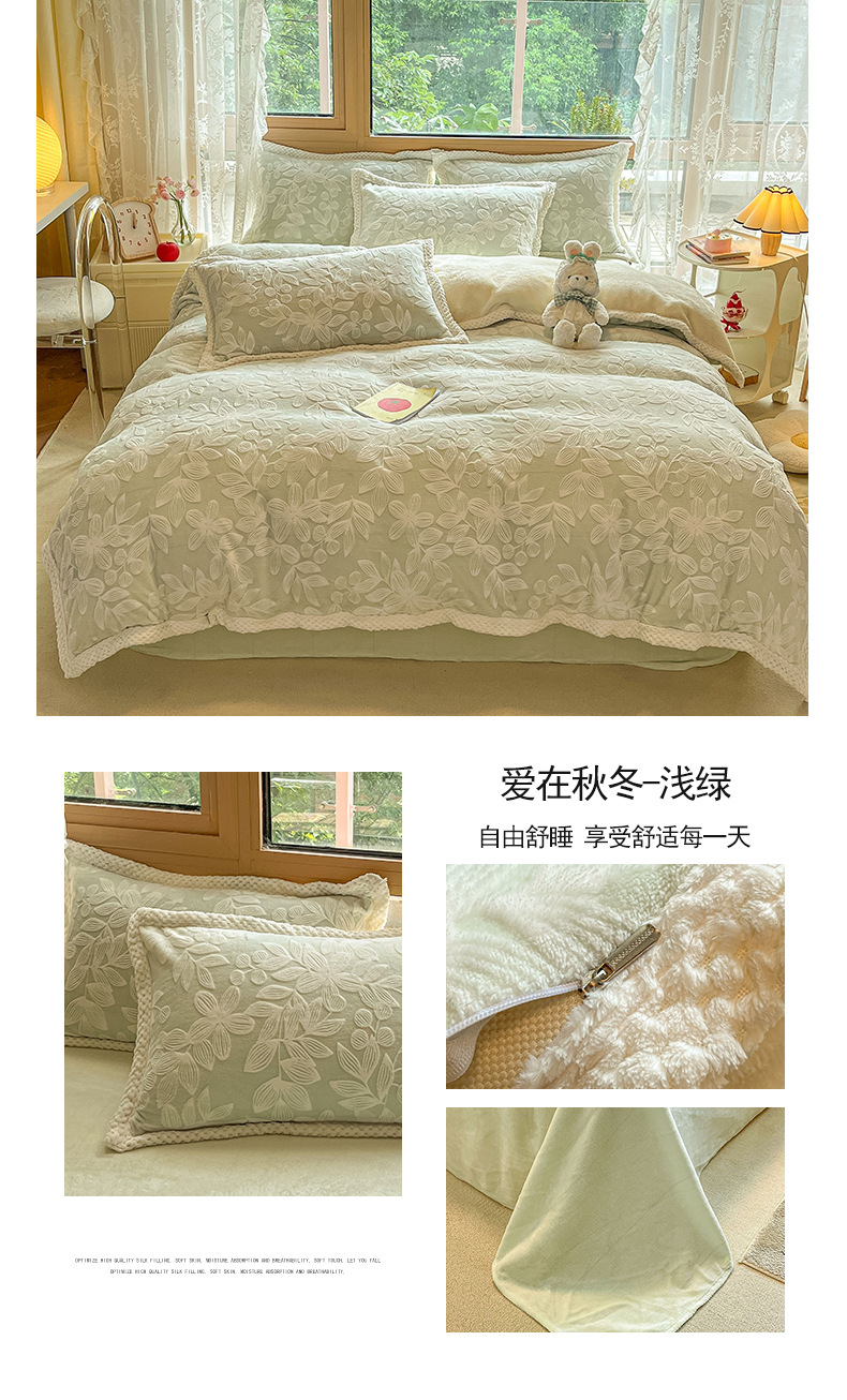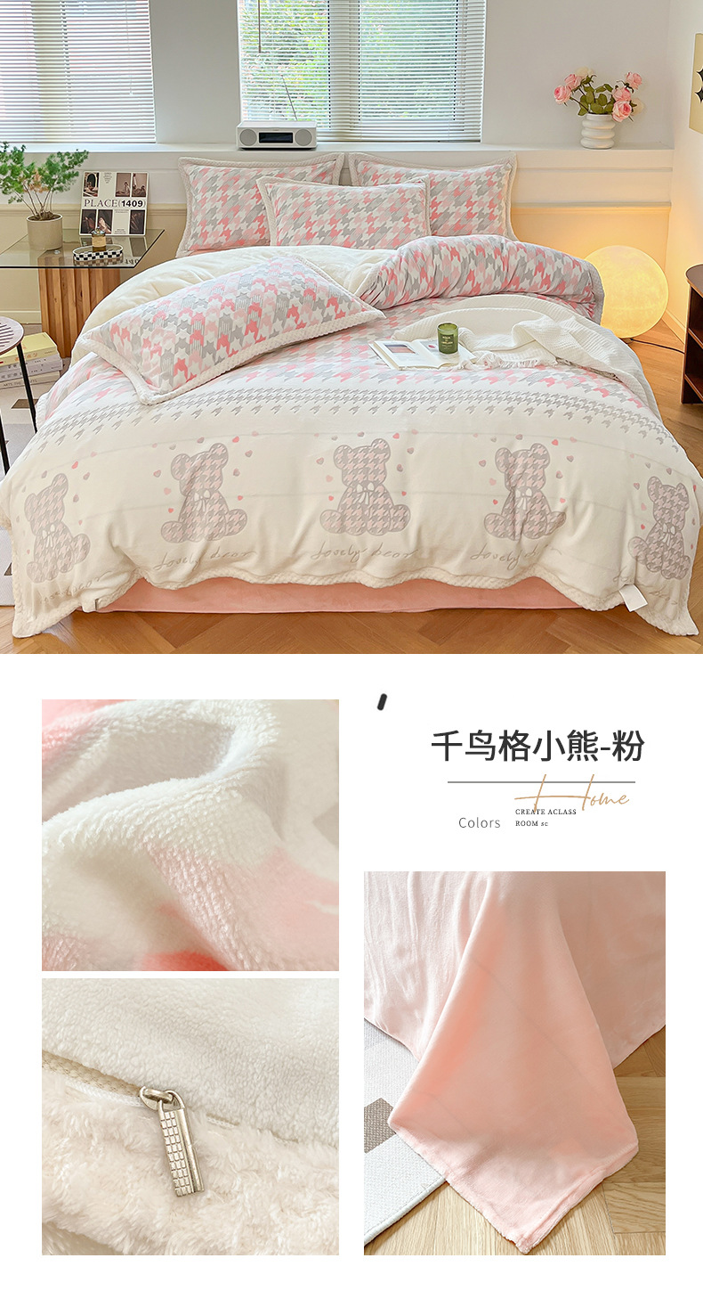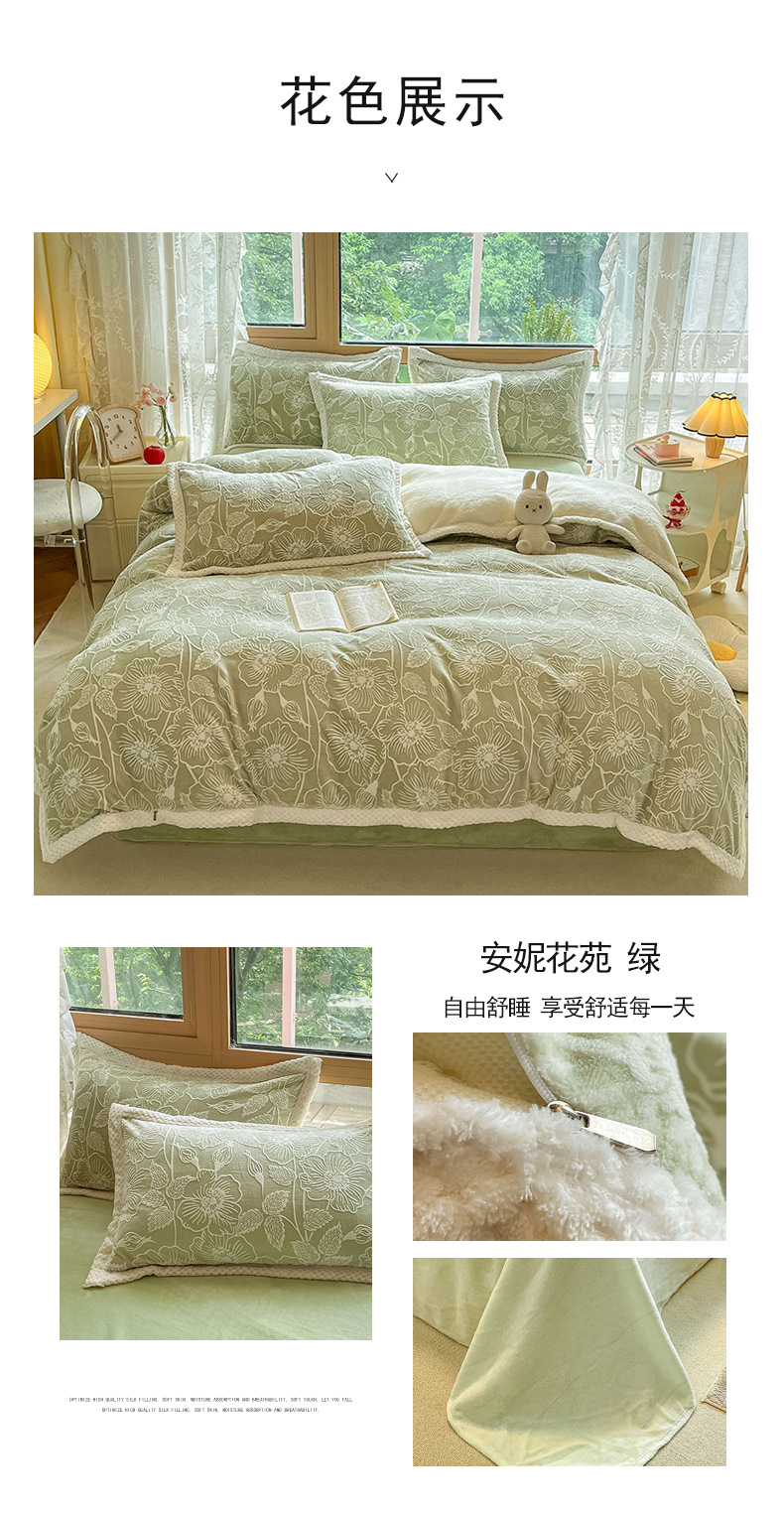 2024 새로운 간단한 테두리 풀 멸종 조각 우유 벨벳 토끼 벨벳 4 피스 세트스토어 가기